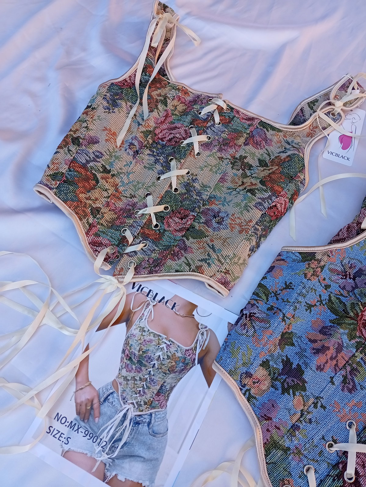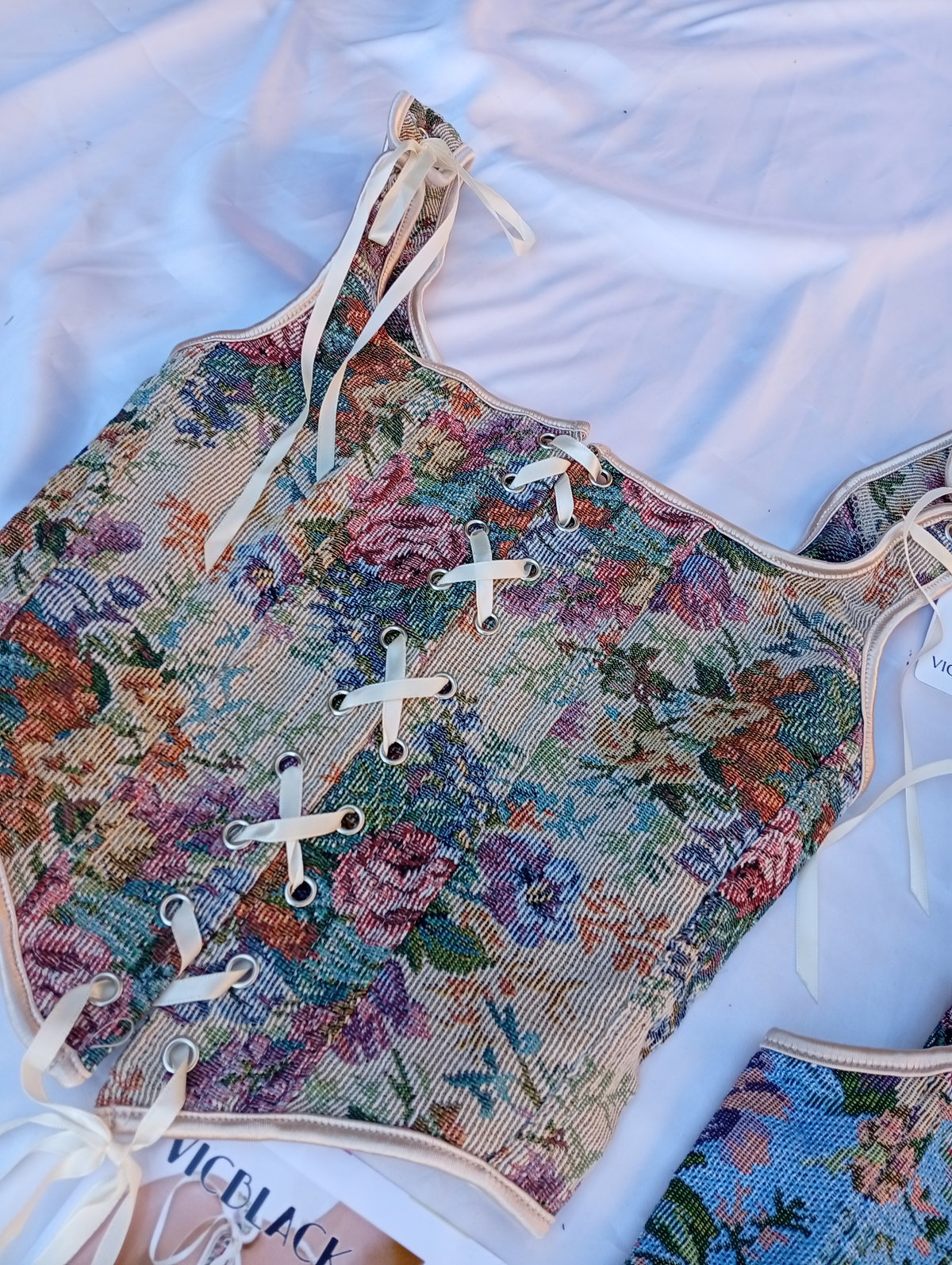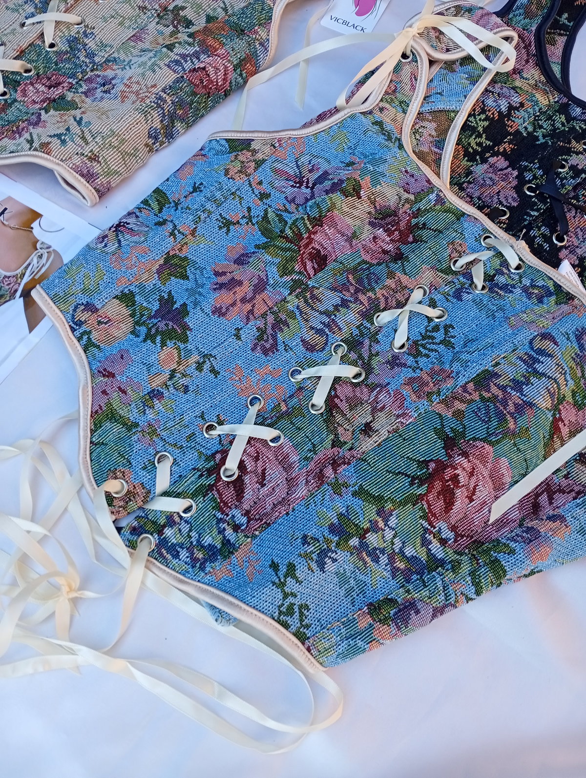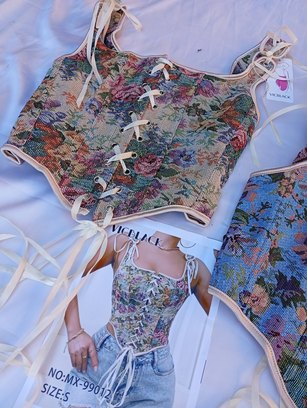 Es un corset Victoriano estilo Vintage súper hermoso. Tiene varillas en todo alrededor, ideal para modelar la cintura.