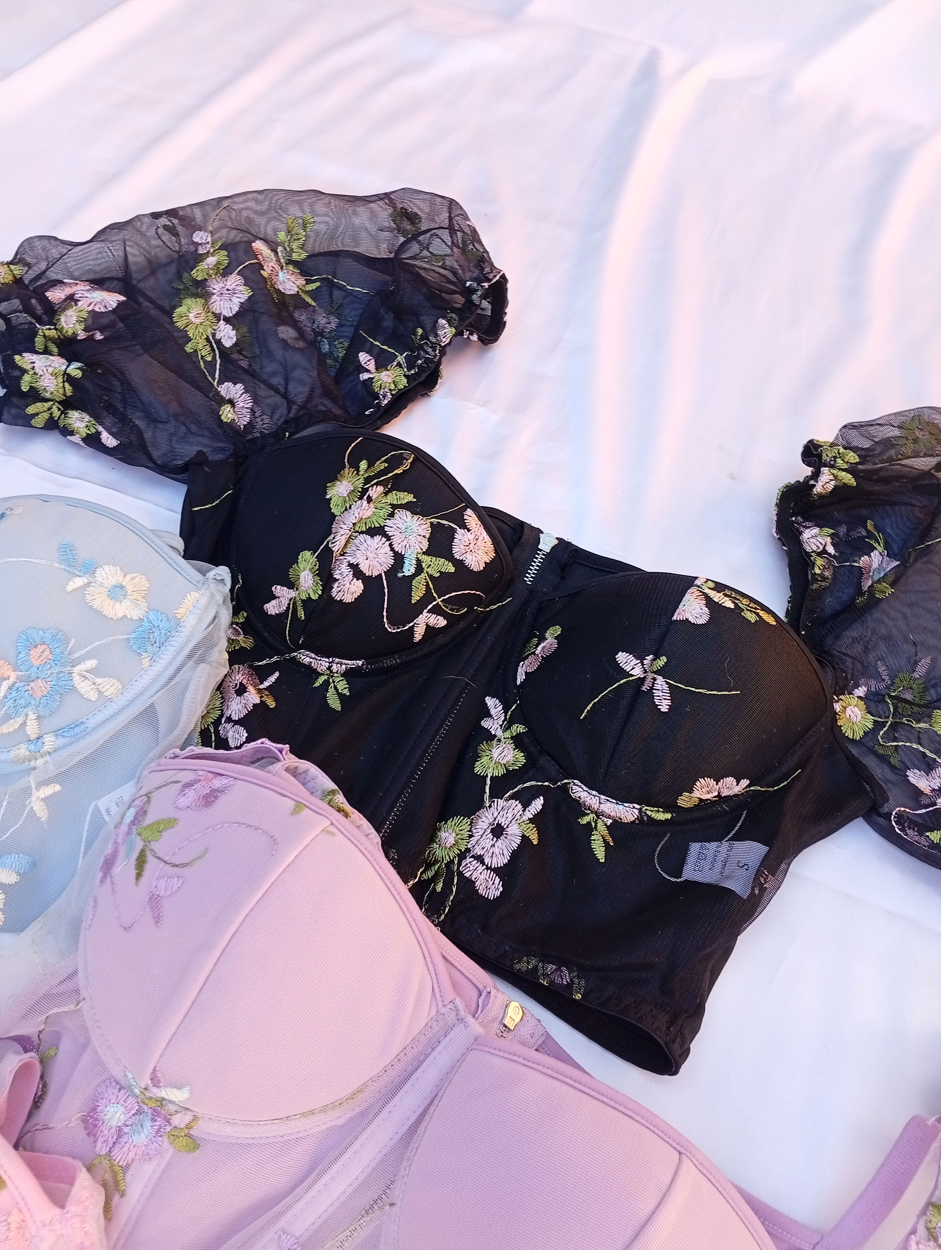Hermoso corset princesa, tiene flores bordadas. En la espalda para mayor facilidad tiene cierre.