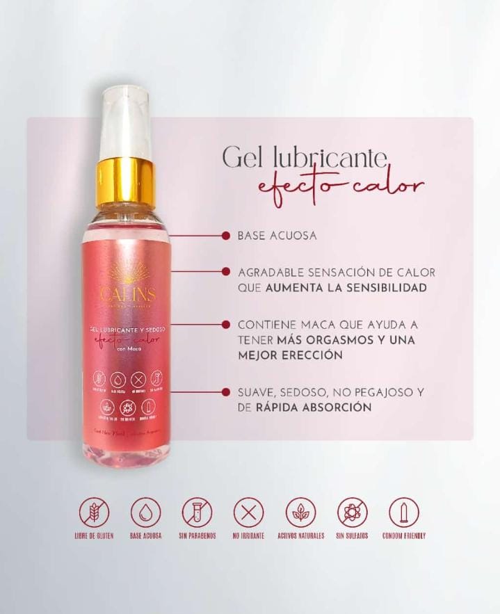 Ámate lo suficiente para que no te queden dudas, de que mereces lo mejor. Agregá calor a tu cuerpo sin depender de alguien. Agregá calor a tu relación con caricias a la francesa. Agregá Calins Lubricante efecto calor con Maca ¿Maca? Sí, amamos este ginseng peruano que huele similar al caramelo y se ha cultivado al menos desde hace 3000 años. Una hierba súper vintage a la que se le adjudican bondades energéticas, antioxidantes, y estimulantes del deseo sexual por su alto contenido en potasio, calcio, sodio, hierro, vitaminas del grupo B y C. Y además como te queremos (porque vos nos querés) necesitamos recordarte: No te olvides de chequear todos los ingredientes que tocan tu cuerpo. Los nuestros te cuidan mucho por que son : gluten free, sin parabenos, sin sulfatos y condom friendly, entre otras hierbas lindas y que te cuidan como la maca.