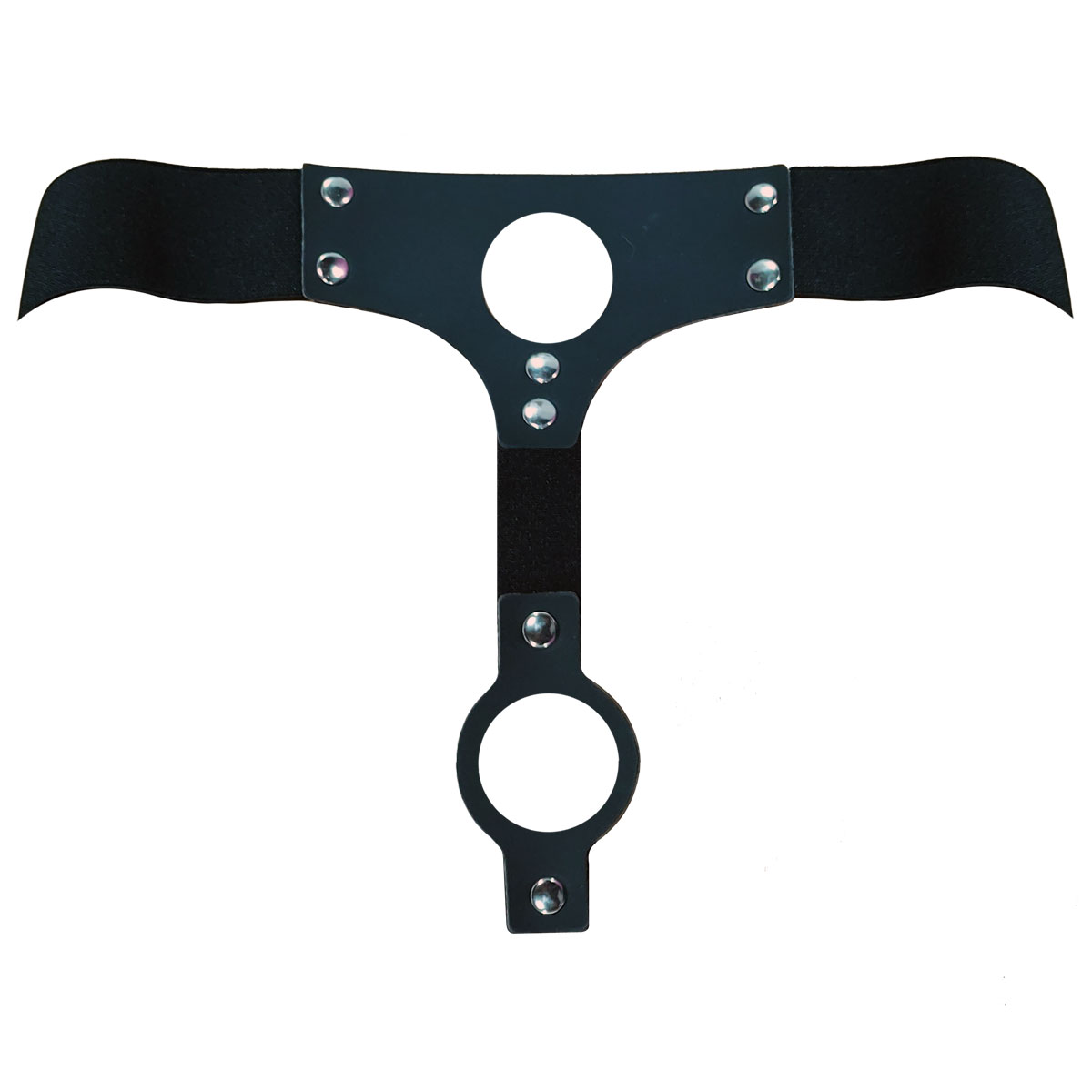 Diseñado para quienes disfrutan al máximo el juego en pareja. Este arnés de PU con tiras elásticas firmes y ajustables ofrece una sujeción cómoda y segura al cuerpo, permitiendo una experiencia de doble penetración simultánea.
