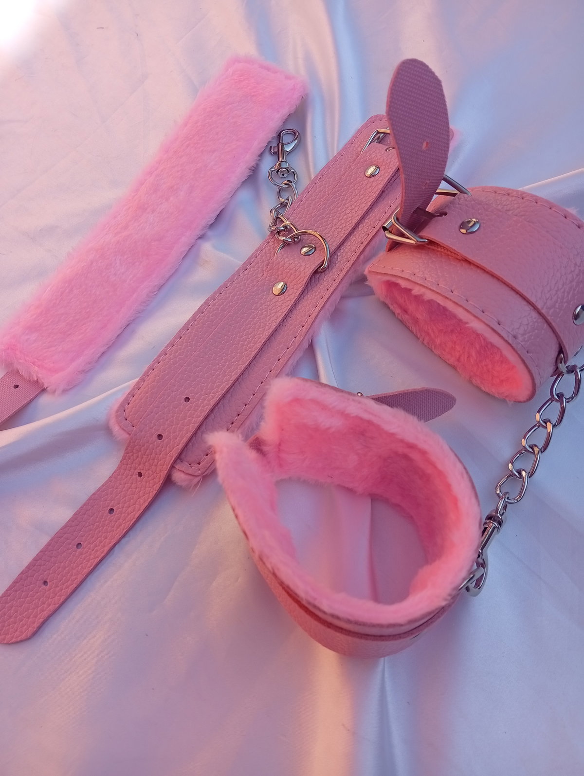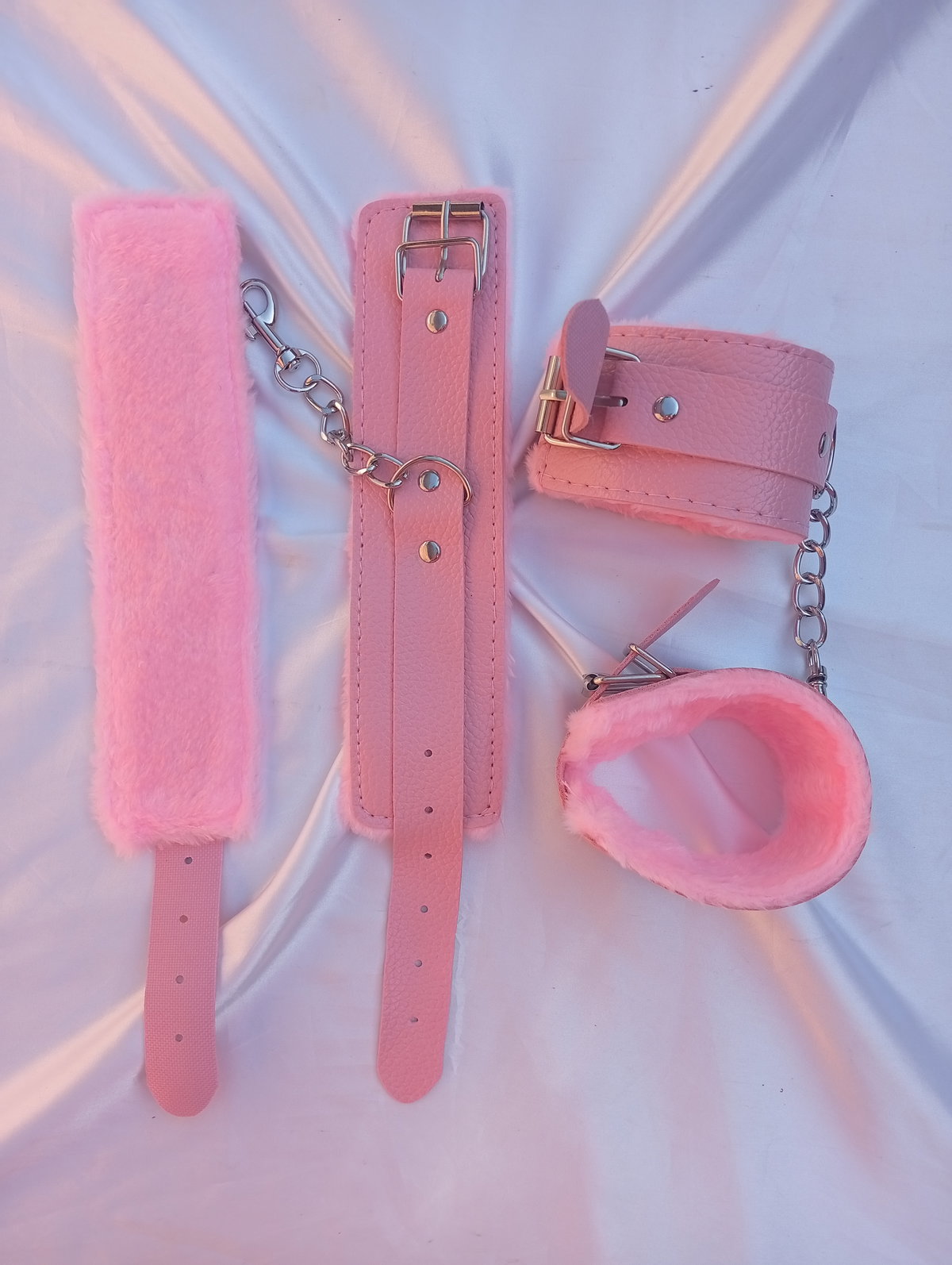 Delicadas esposas confeccionadas en cuero ecologico y forradas en su interior con peluche. Bellas, apasionadas, ideales para tus noches en pareja. Entregate al placer.