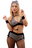 El disfraz incluye corpiño, shorcito tipo culot, gorrito y par de esposas que se atan.