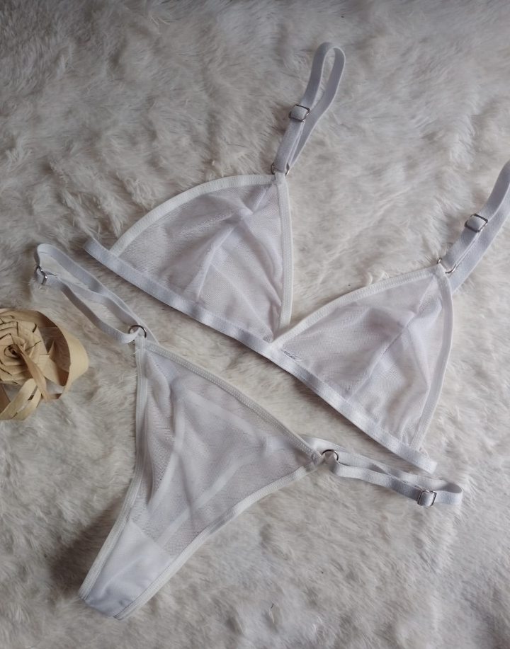 Es un conjunto todo en MICROTUL, es transparente, suave y delicado. Ideal para quienes buscan ese toque de sensualidad con suavidad.