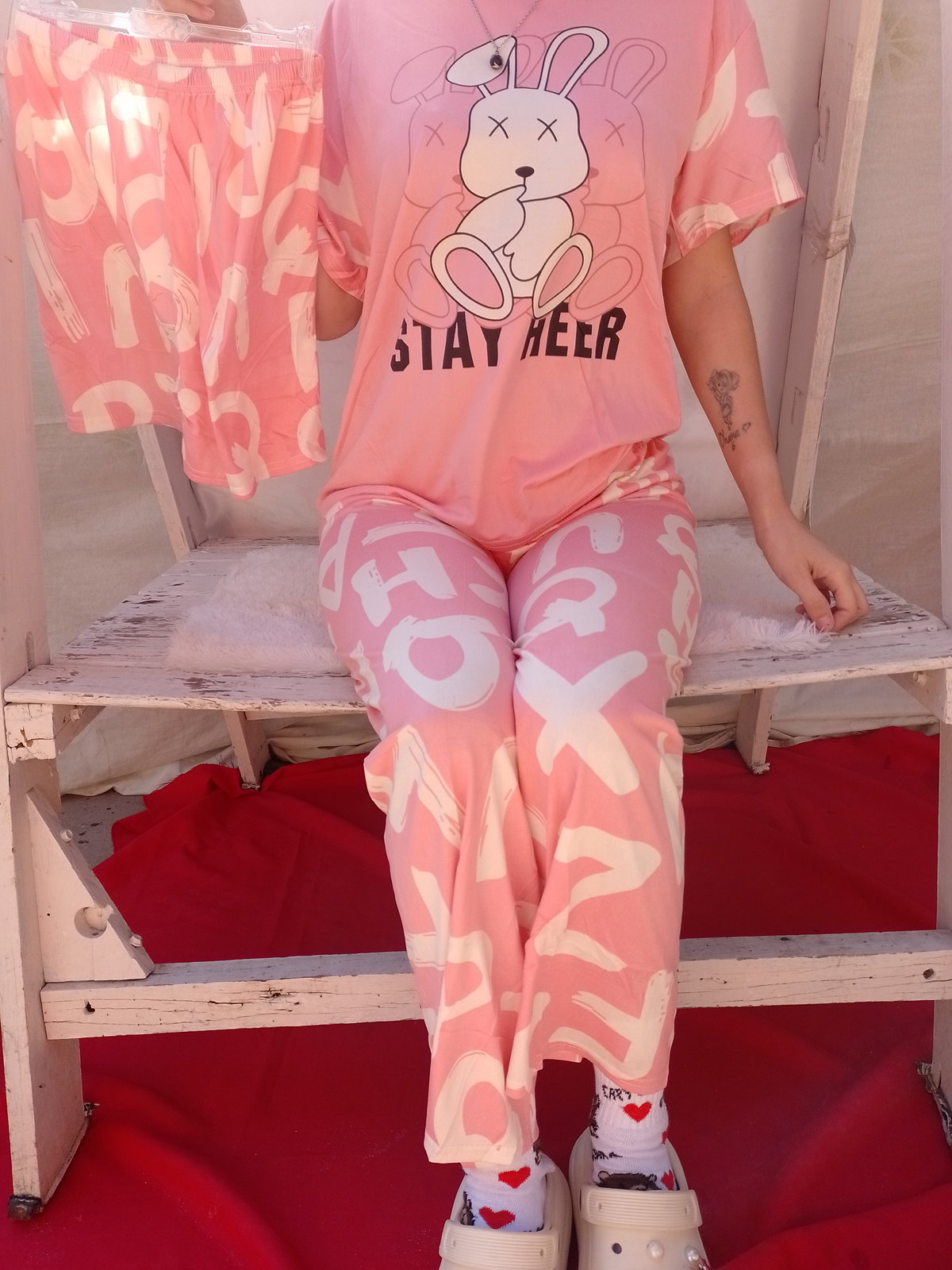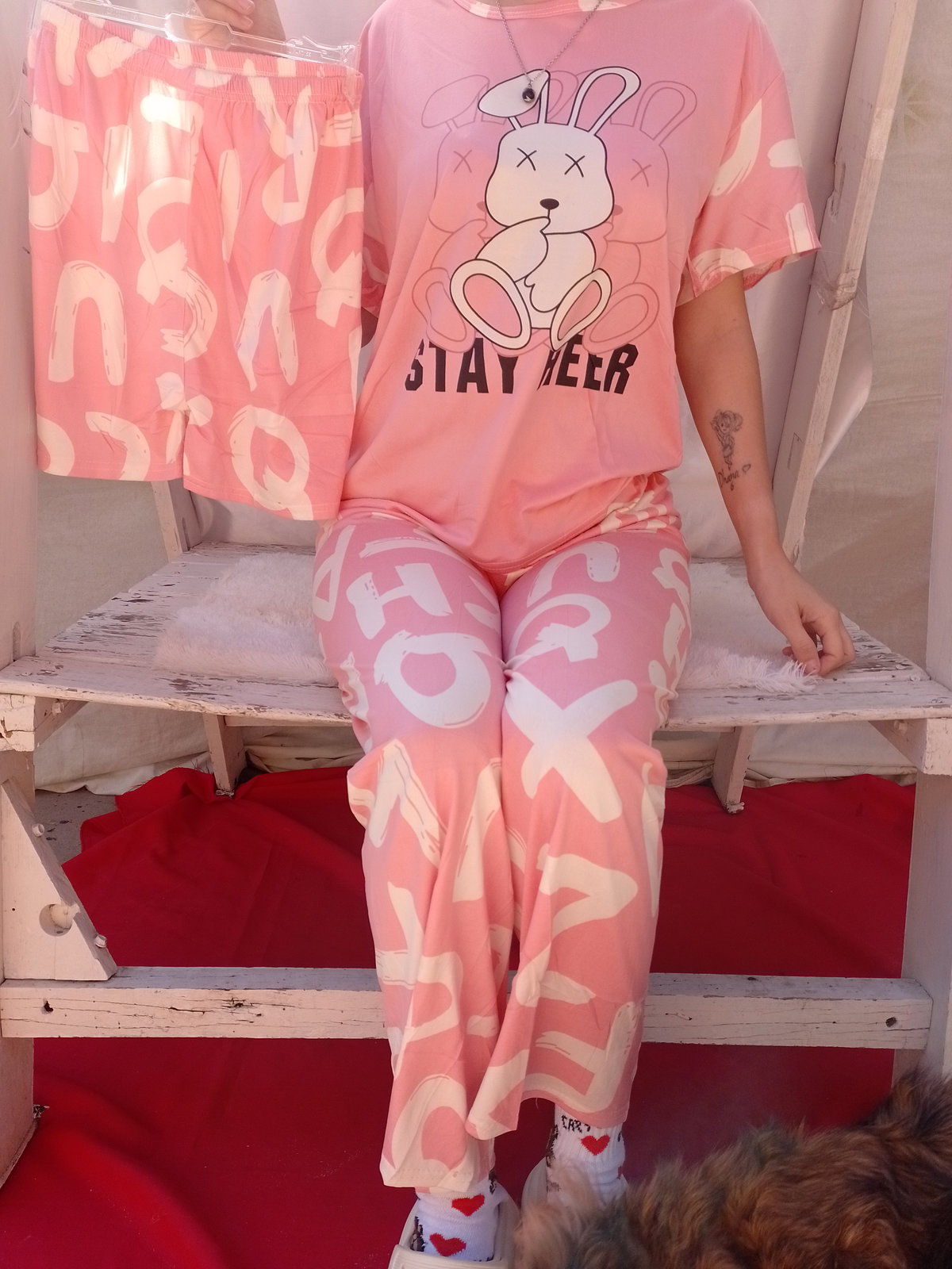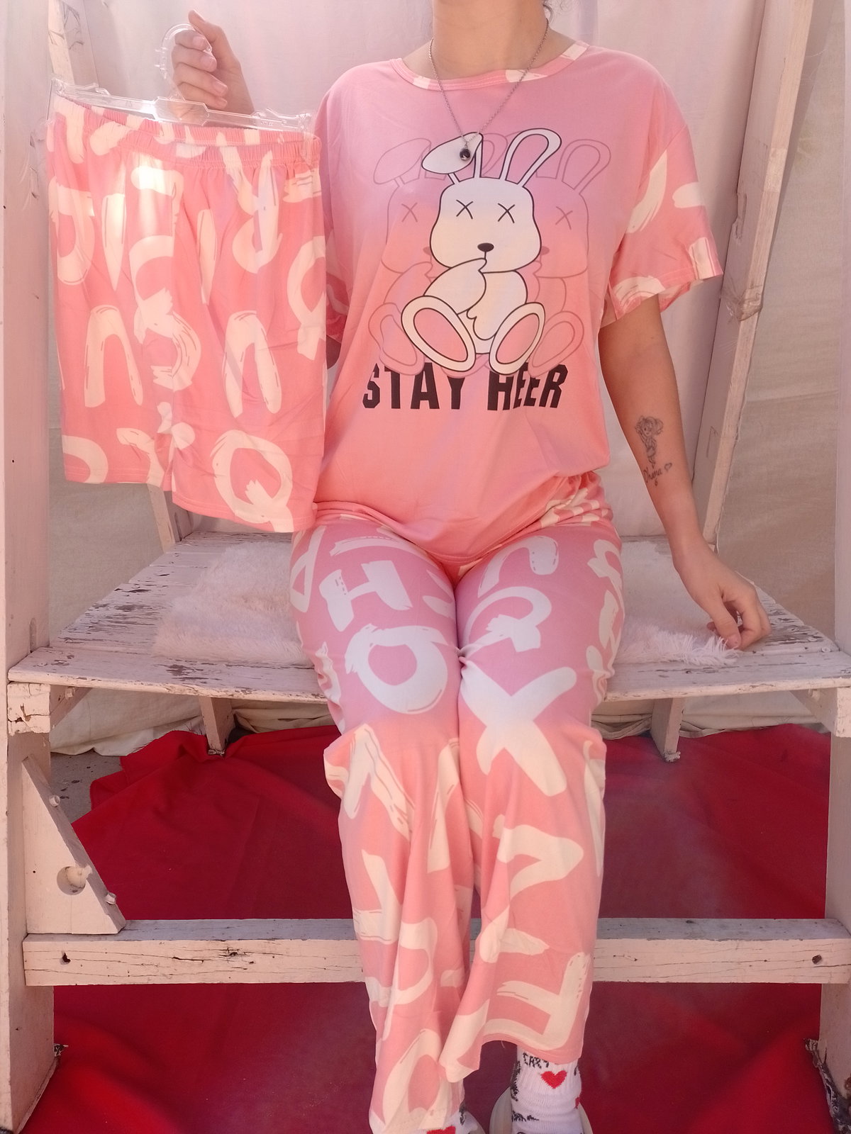 Es pijama de tres piezas incluye remera short y pantalón la tela es poliéster fresquito ideal para media estación. La marca es Needfeel importada de excelente calidad.