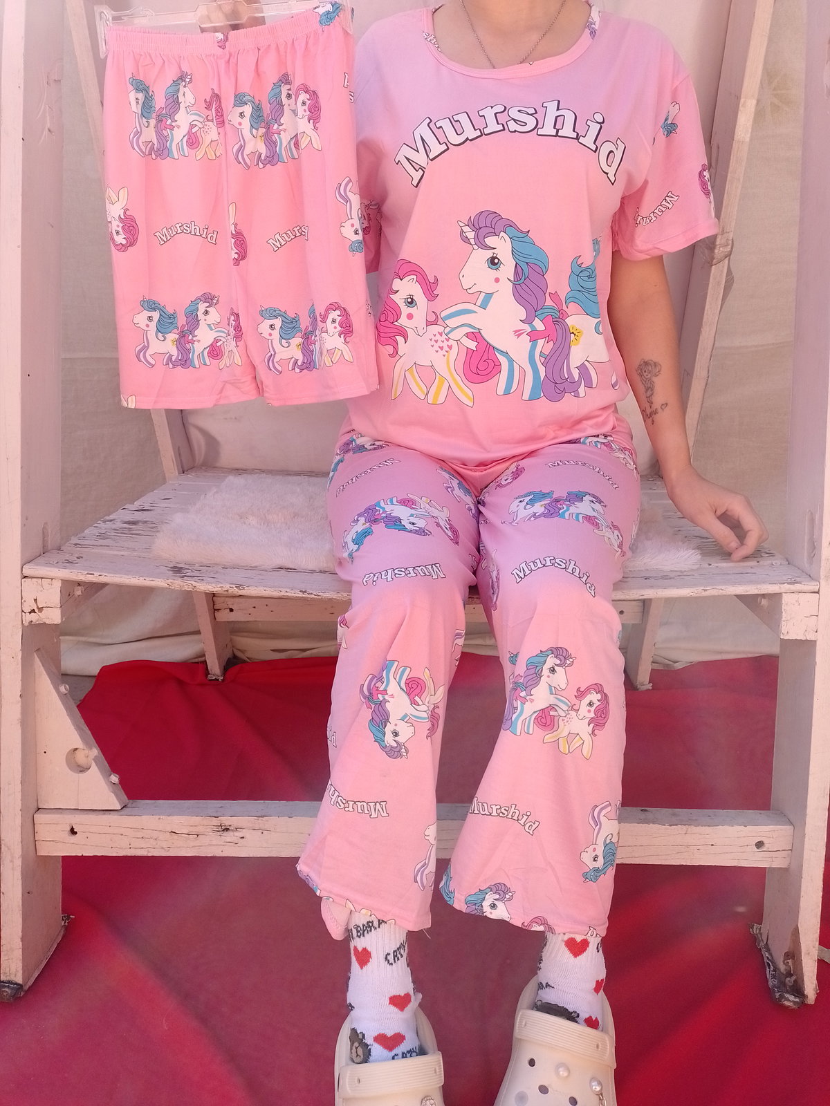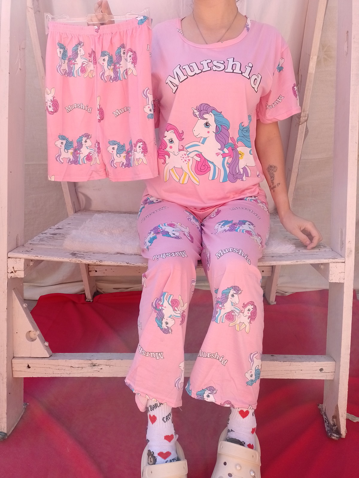 Es pijama de tres piezas incluye remera short y pantalón la tela es poliéster fresquito ideal para media estación. La marca es Needfeel importada de excelente calidad.