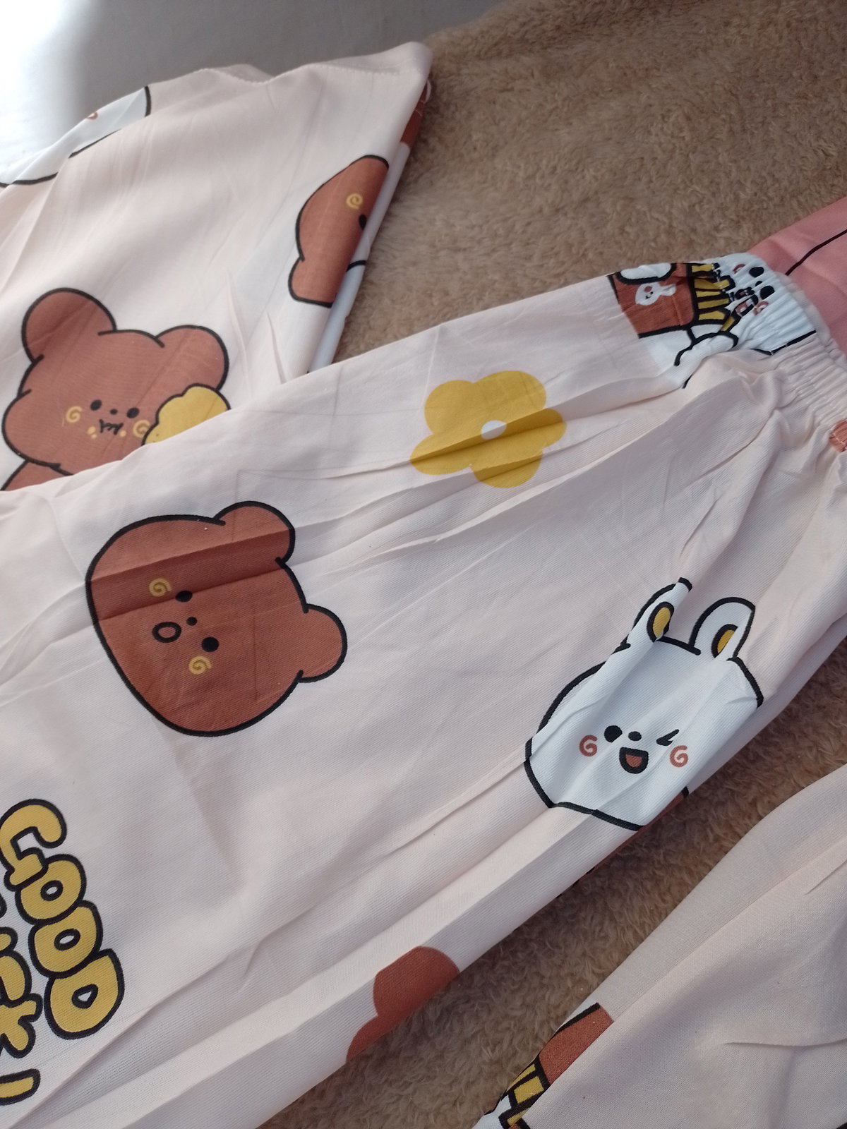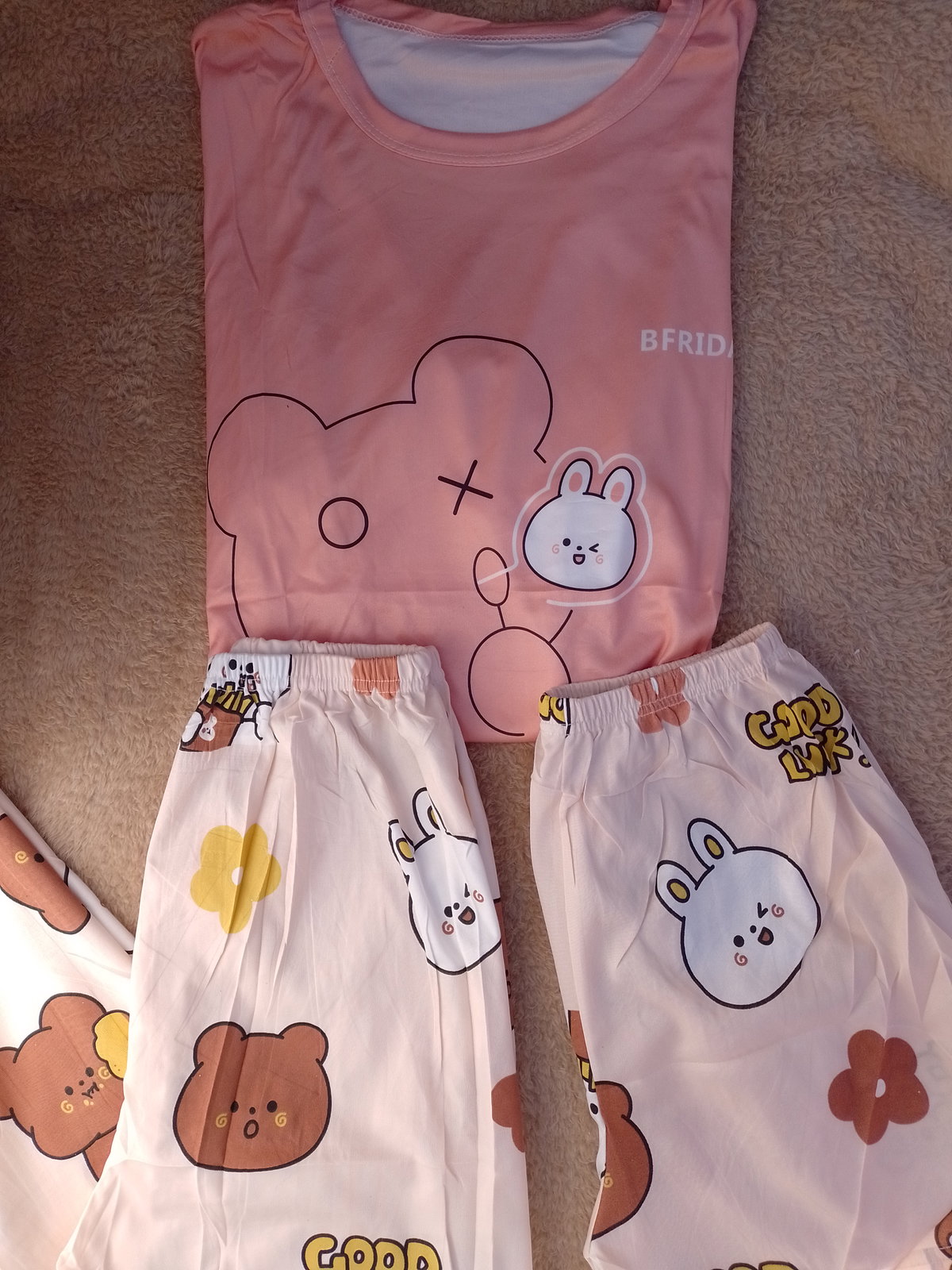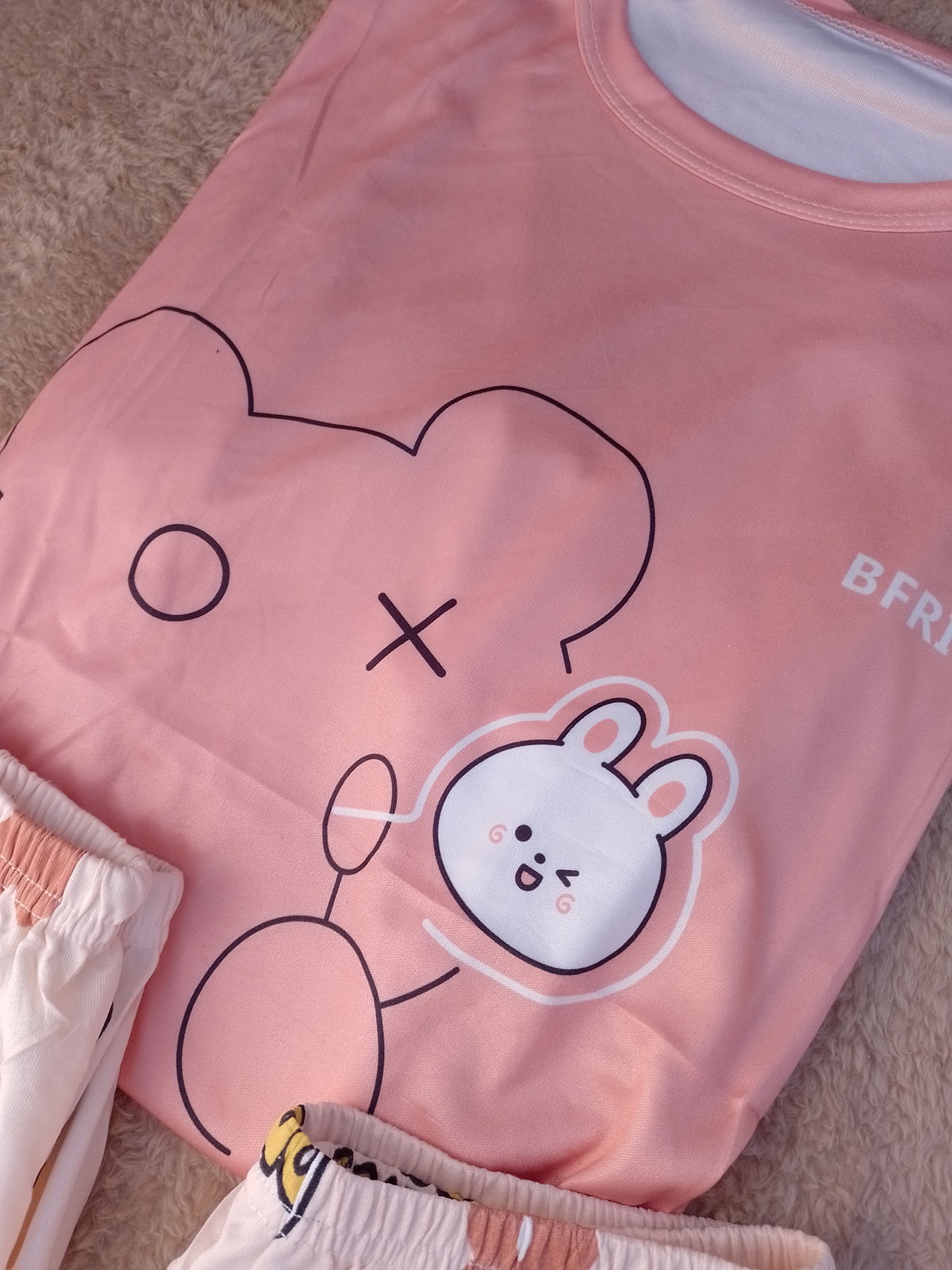 Pijama 3 piezas importado B. (Salmón, conejito blanco)