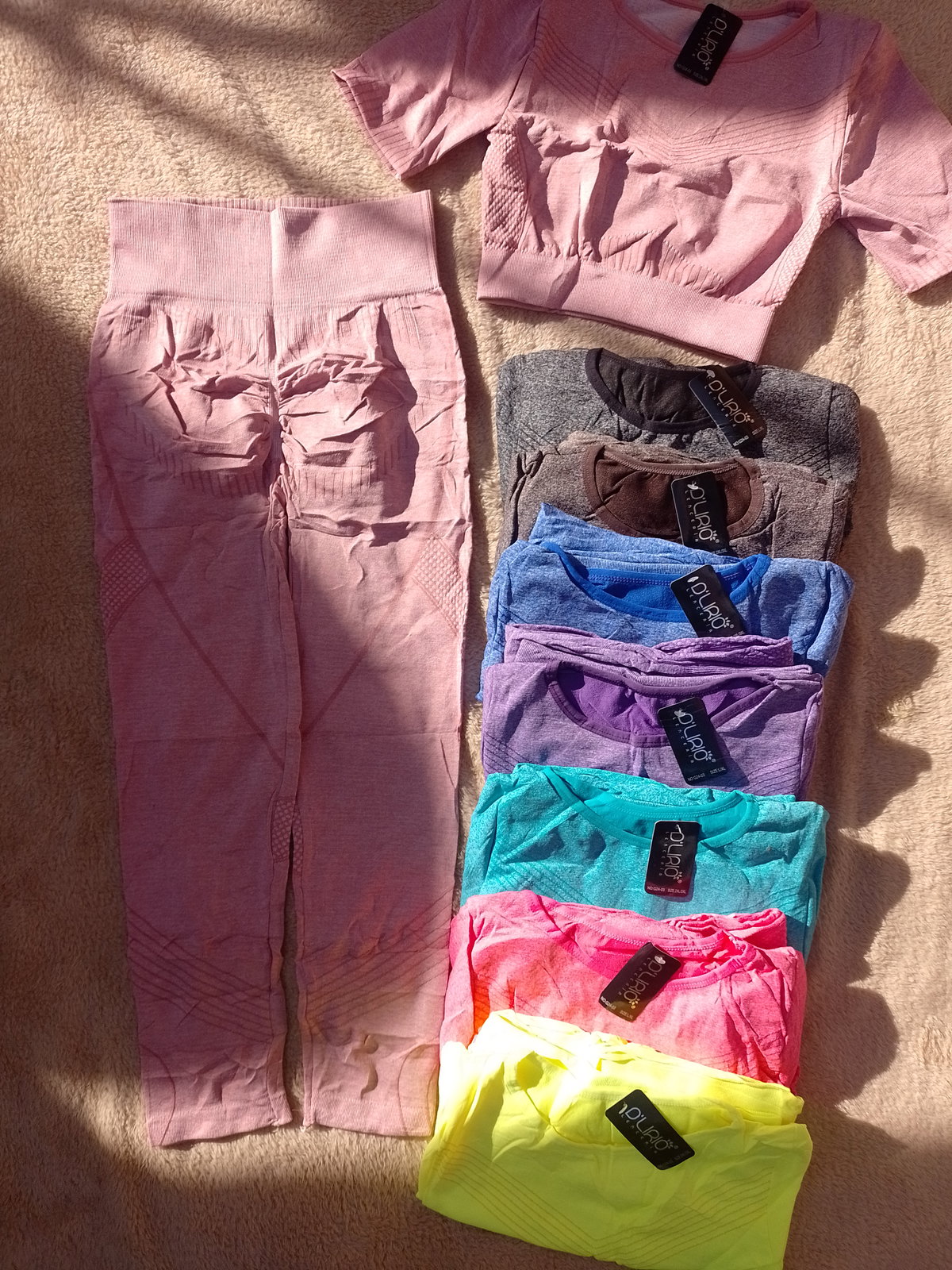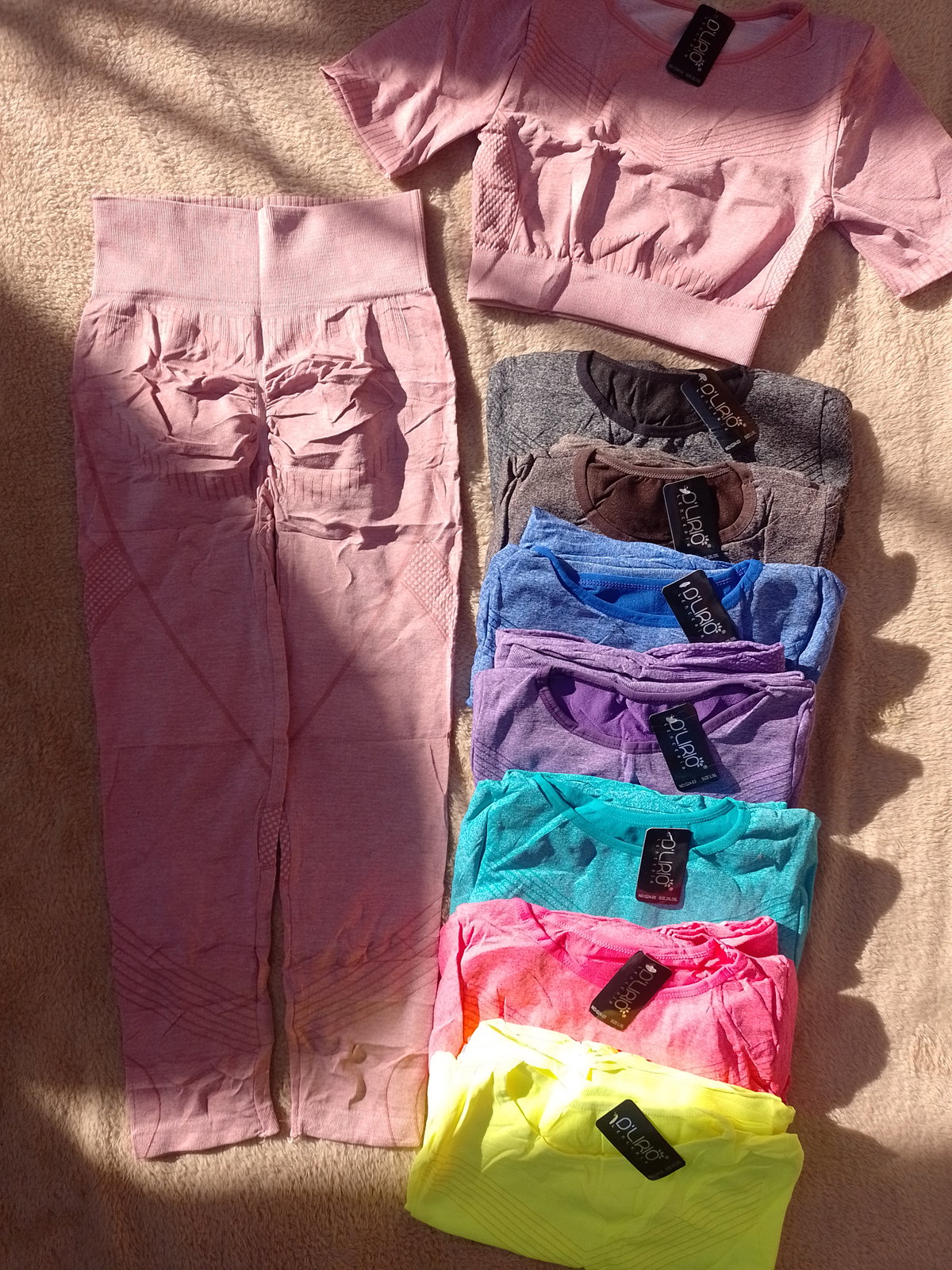 Conjunto deportivo top mangas cortas, con calza larga. Marca D'lirio. Importado. Excelente calidad