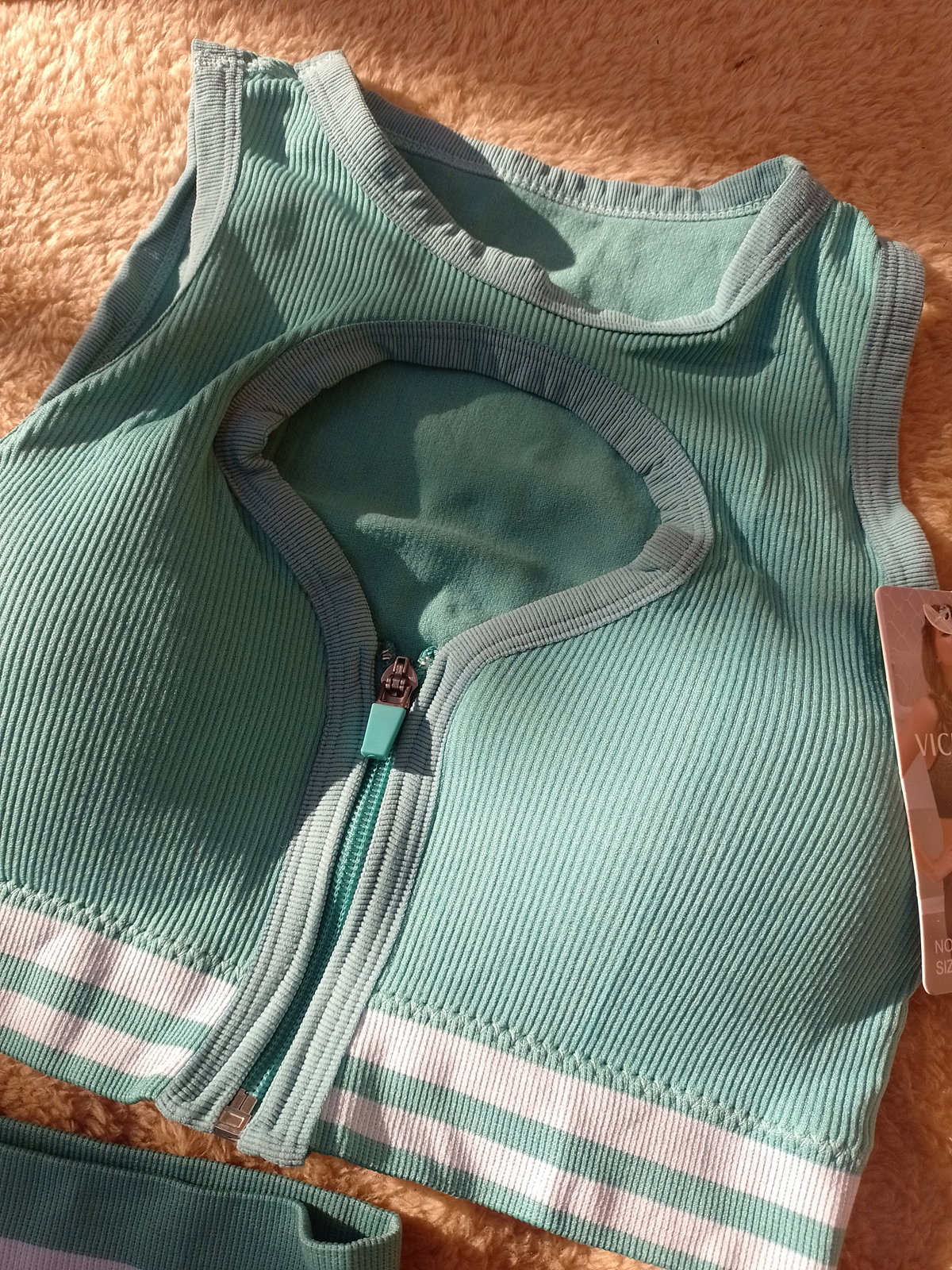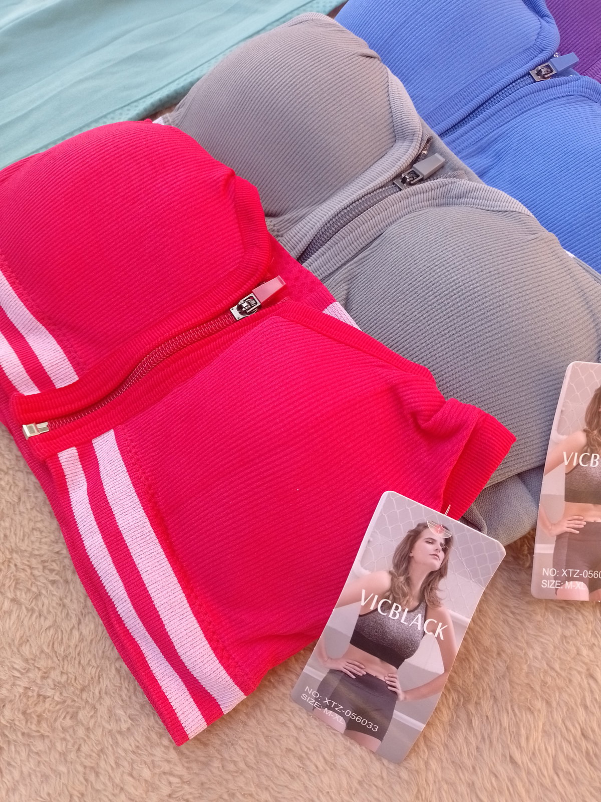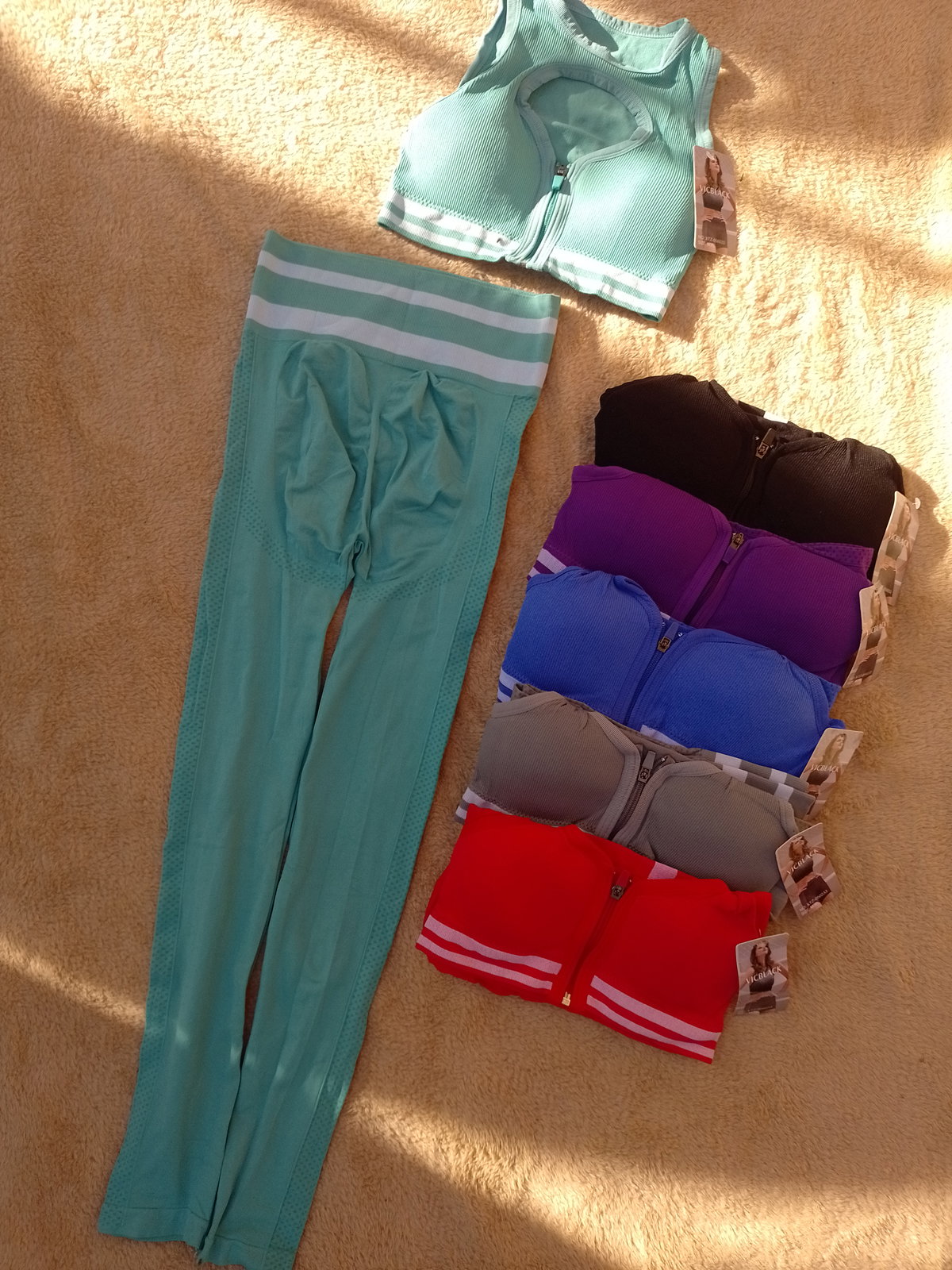 Conjunto deportivo top con cierre + calza larga levanta cola. Vicblack Importado. Linda calidad y hermosos colores.