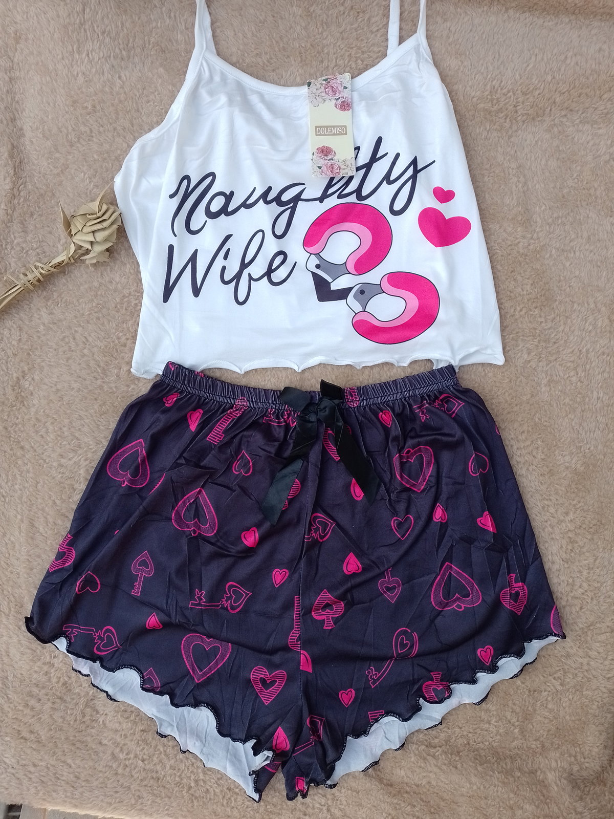 Pijama tipo top con short. Excelente calidad, CORAZON LLAVE Dolemiso Importado