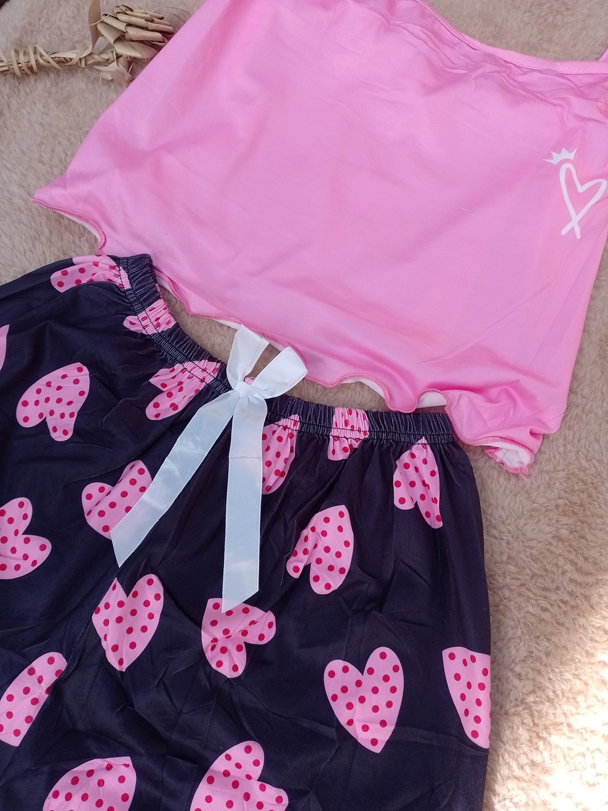 Pijama tipo top con short. Excelente calidad, CORAZON FRUTILLA Dolemiso Importado