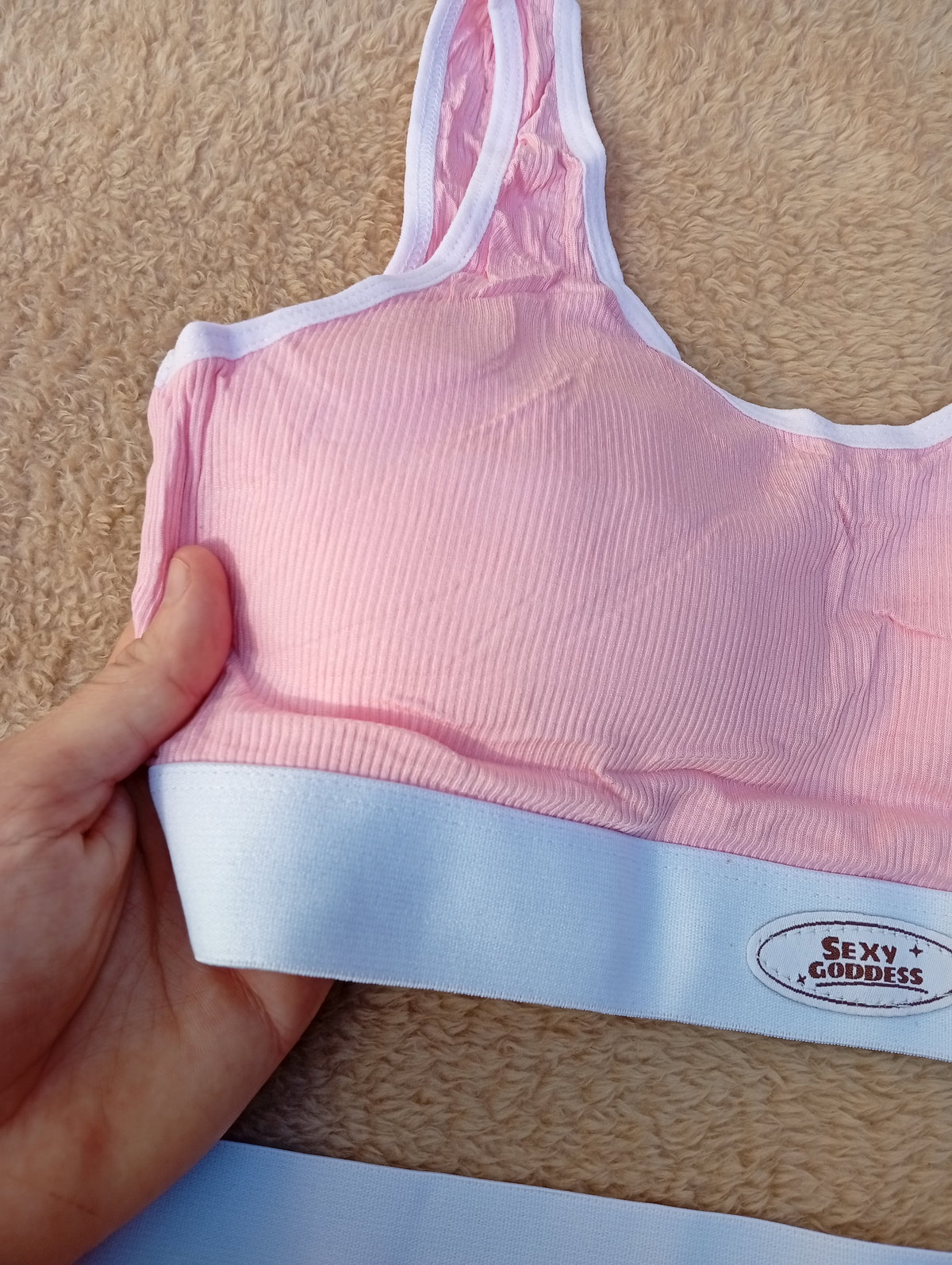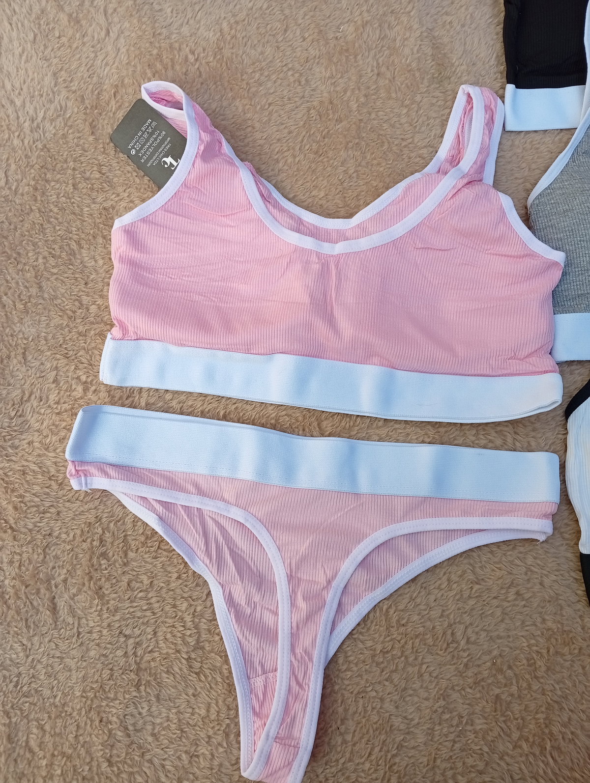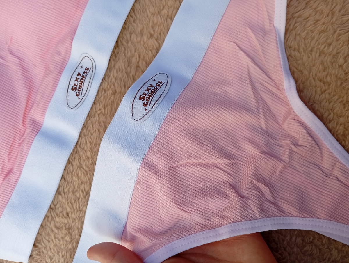 Es un conjunto de 2 piezas, corpiño con taza removible, con less entera.