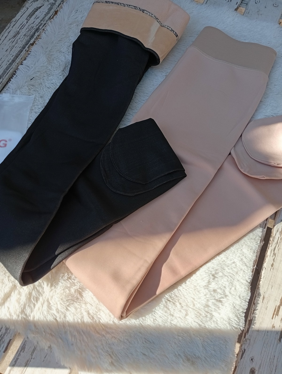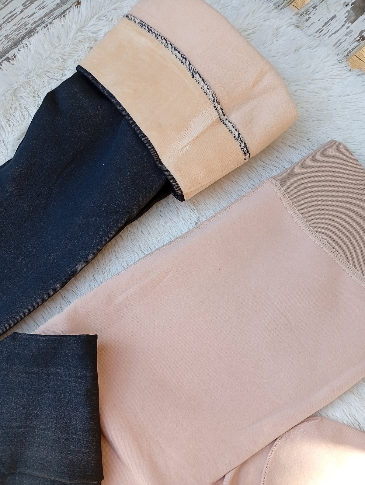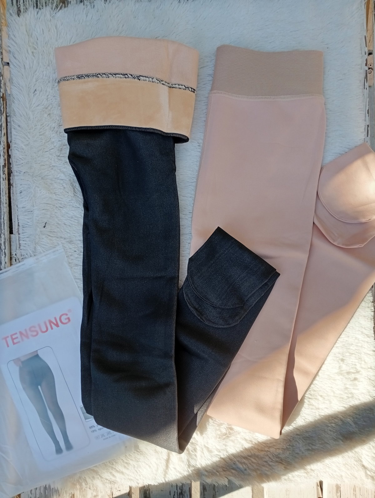 Son medias efecto piel, con peluche por dentro, el pie es cerrado.