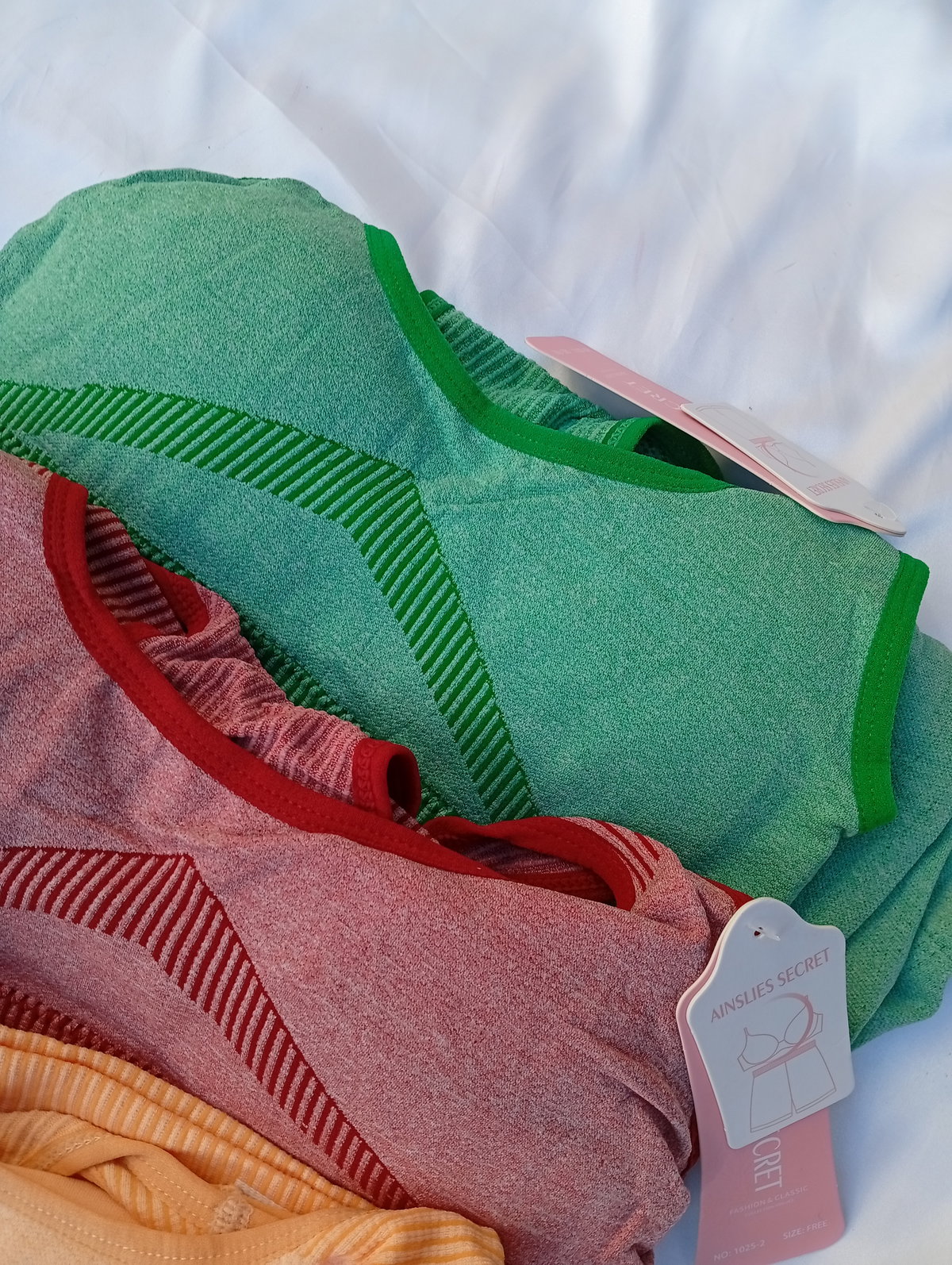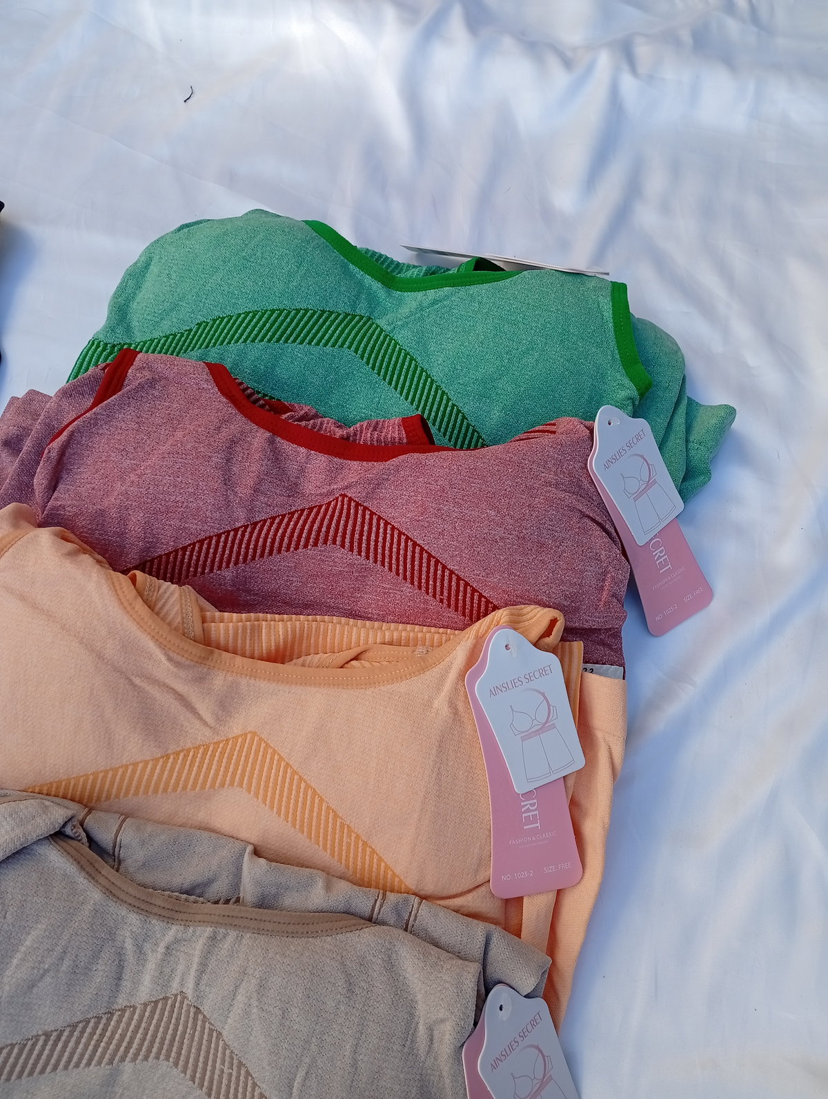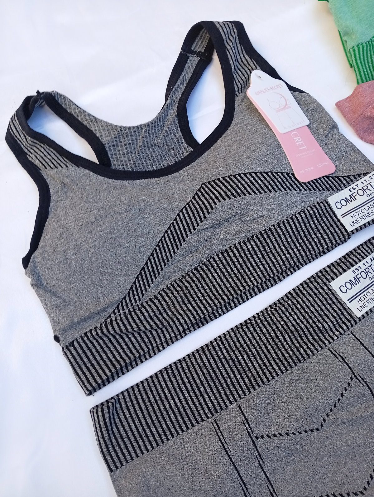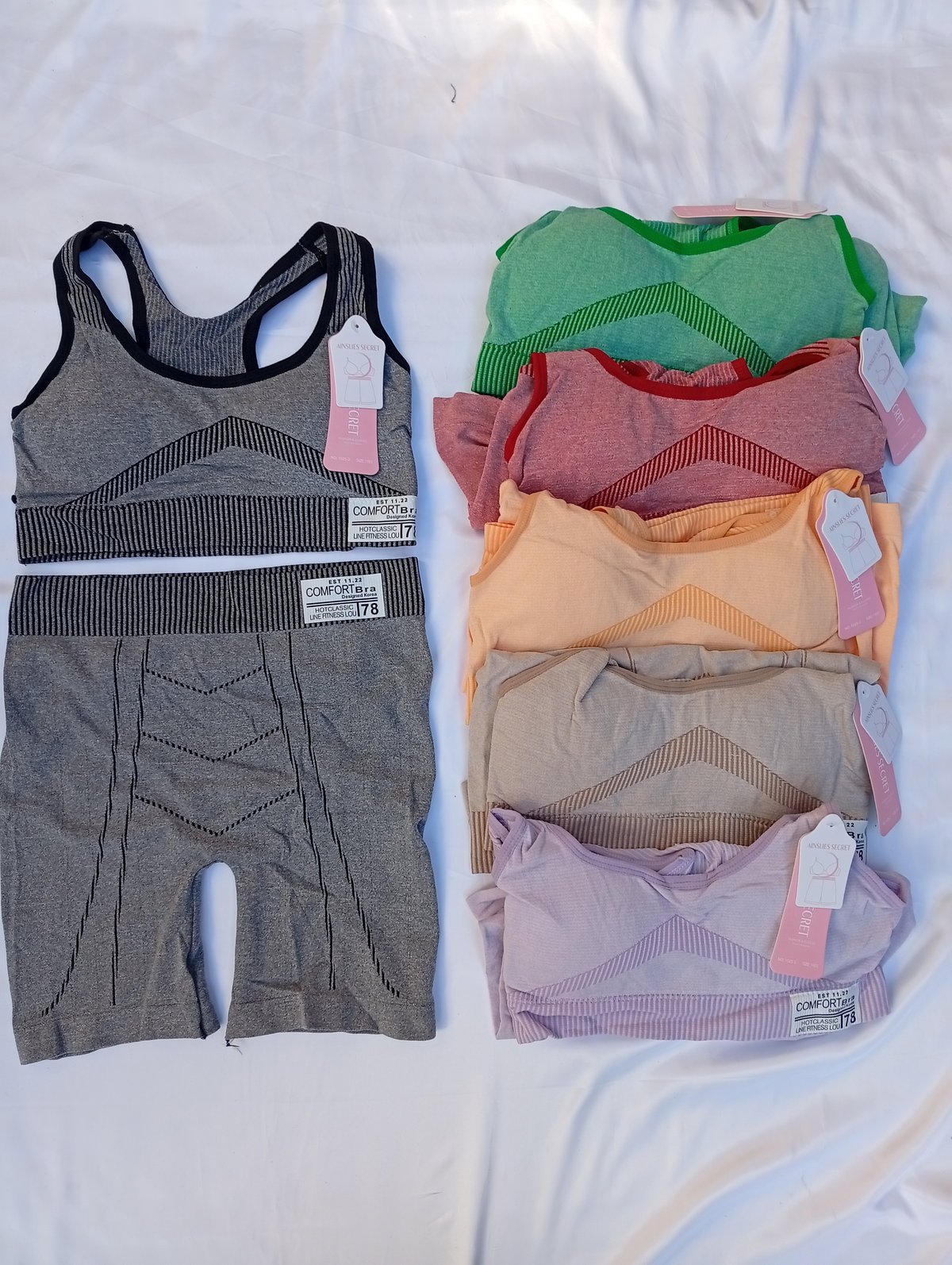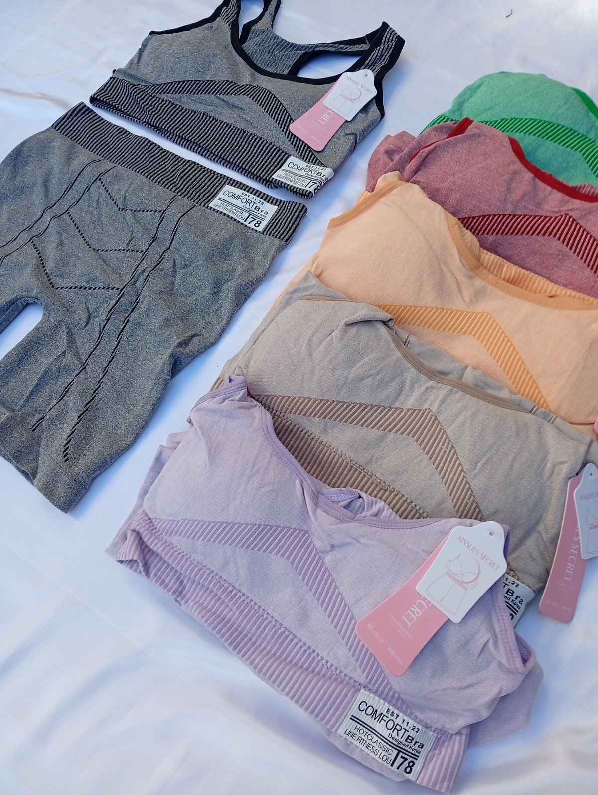 Son talles unicos. Son importados de una calidad baja (economica), el top es lindo, La calza no tiene el push up bien marcado, y varia mucho según el color, son telas delgadas, bien elasticas, un poco transparentes (sobre todo si usa un talle muy apretado).