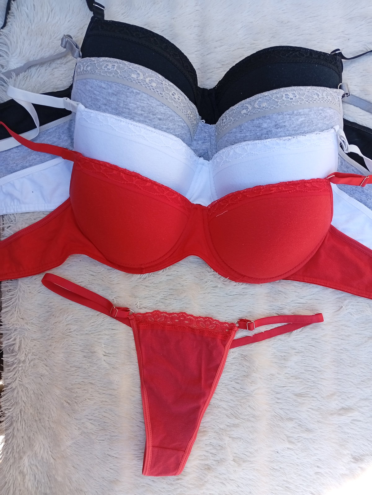 Conjunto de algodon con puntilla + less regulable Colores clasicos (1/2 docena )