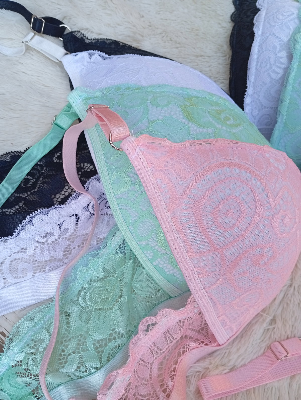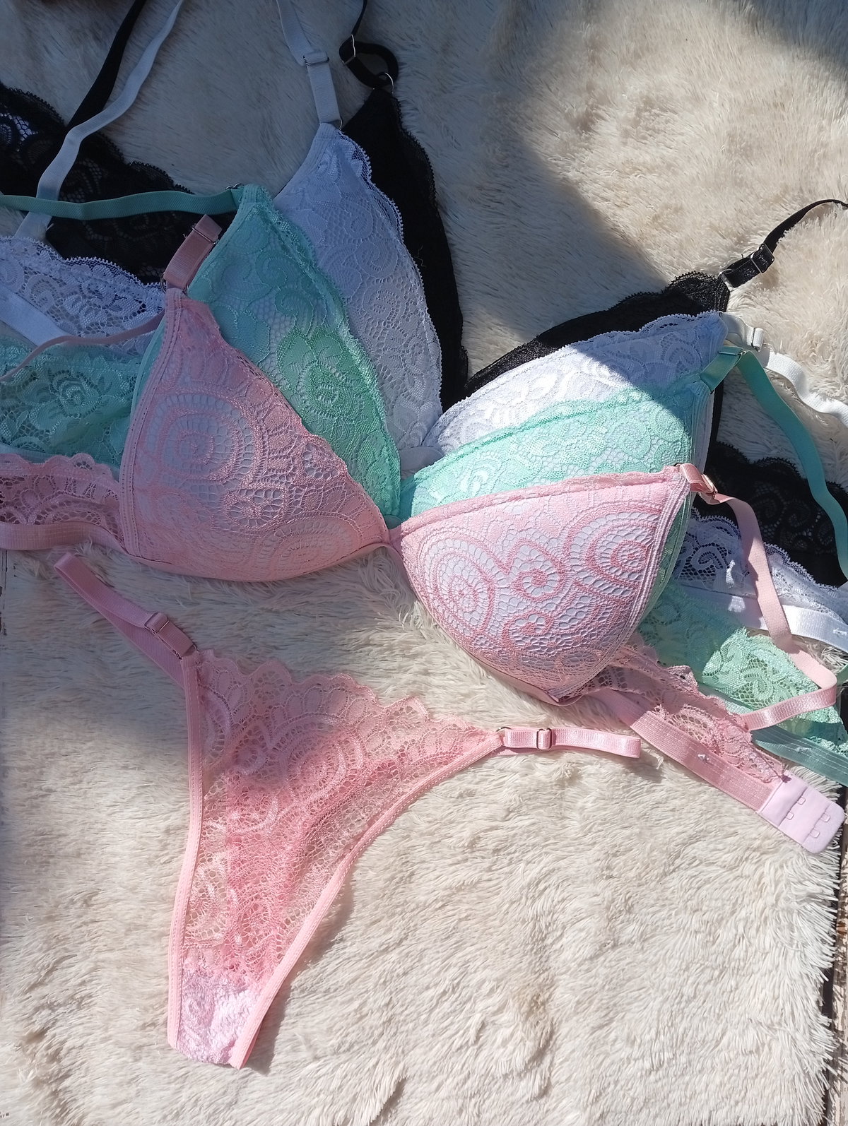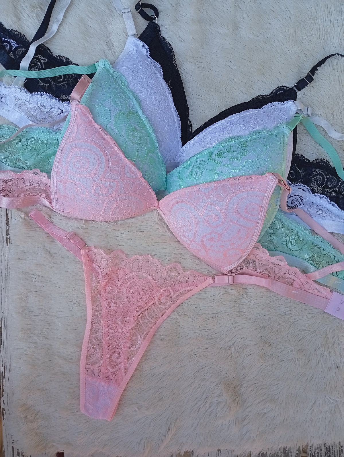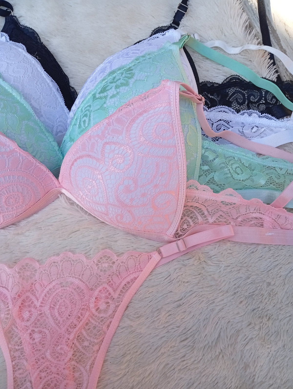 Triangulito full encaje, colores pastel. Nalyd