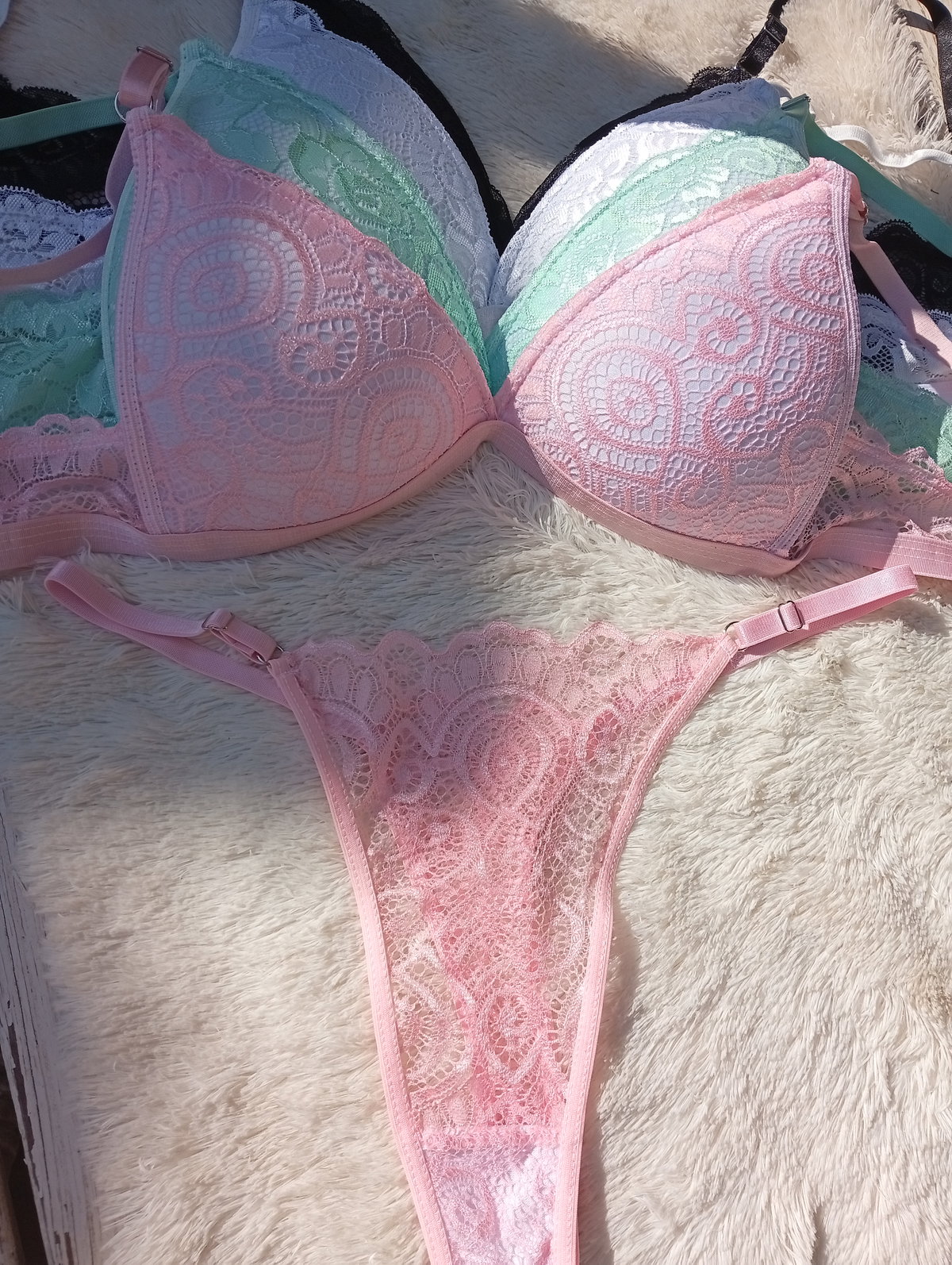 Conjunto triángulito de encaje, la bombis es regulable.