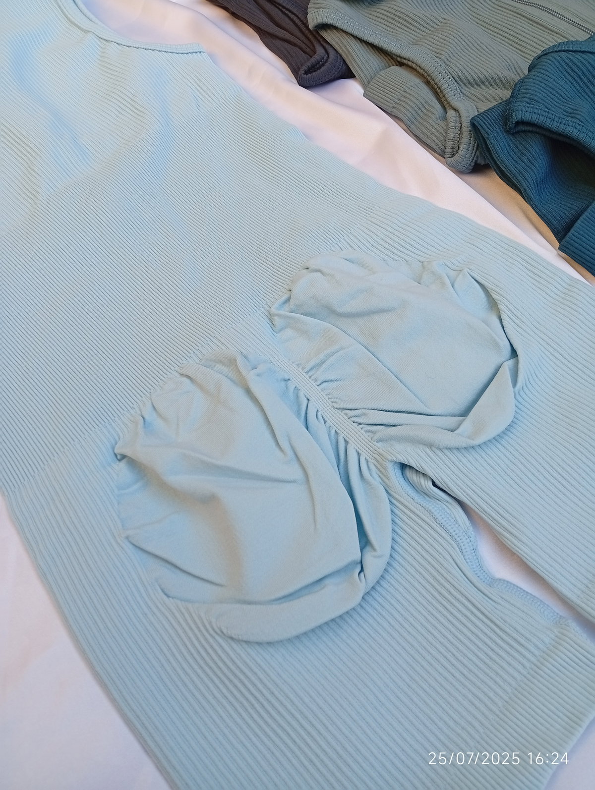Es espalda cerrada, tipo musculosa. En las pompas tiene frunce ayudando a levantar la cola.