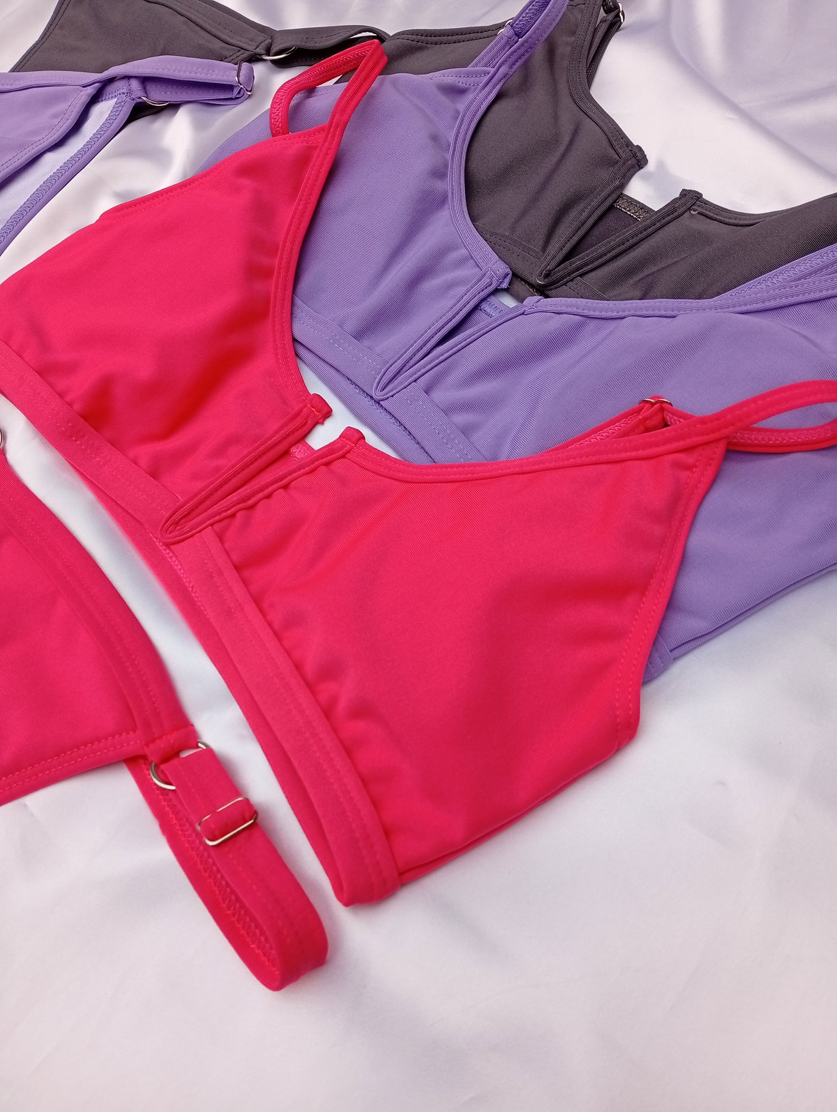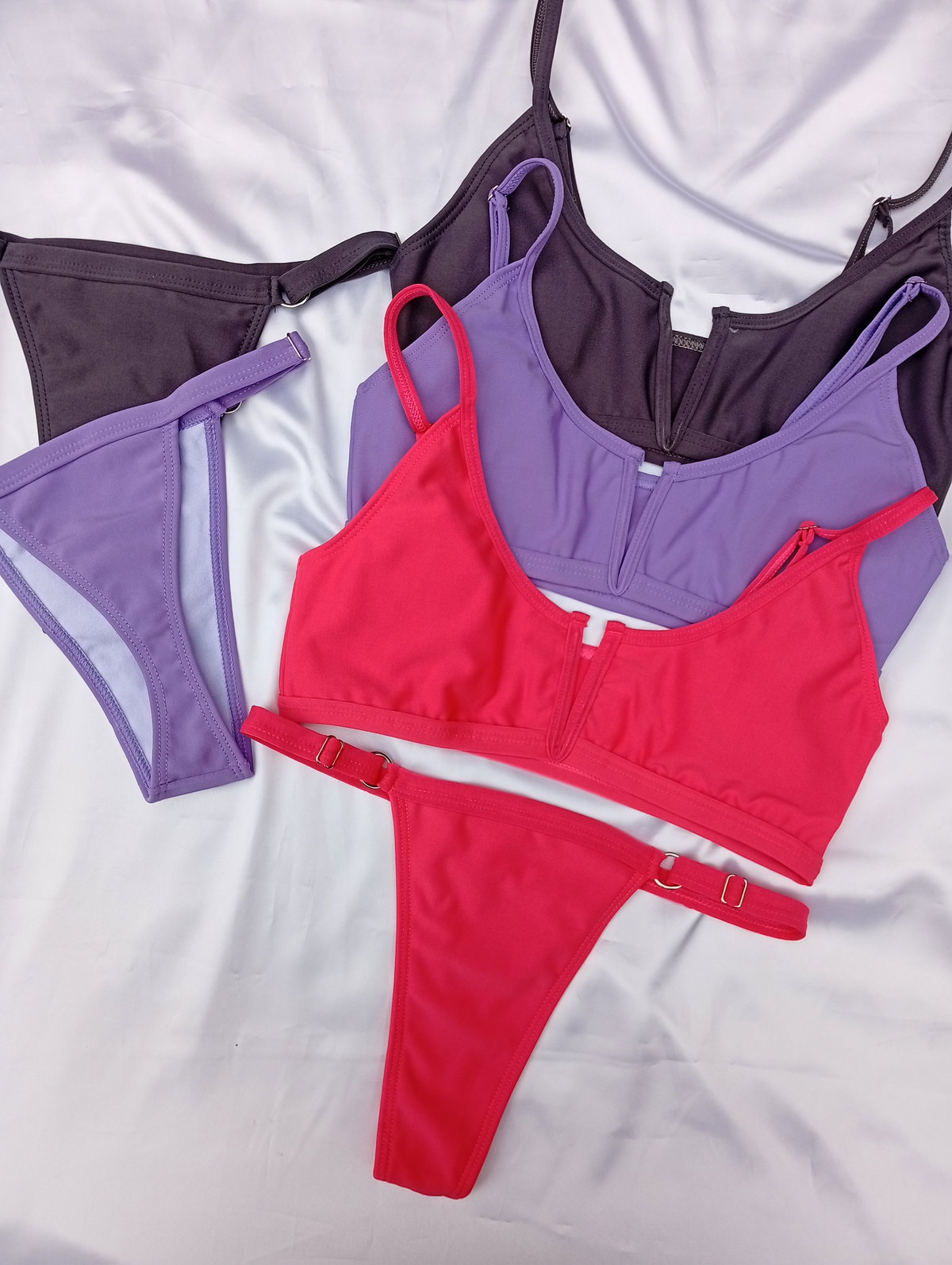 Son bikinis top, en el frente tienen un avio en V METALICO, tiene taza removible a gusto