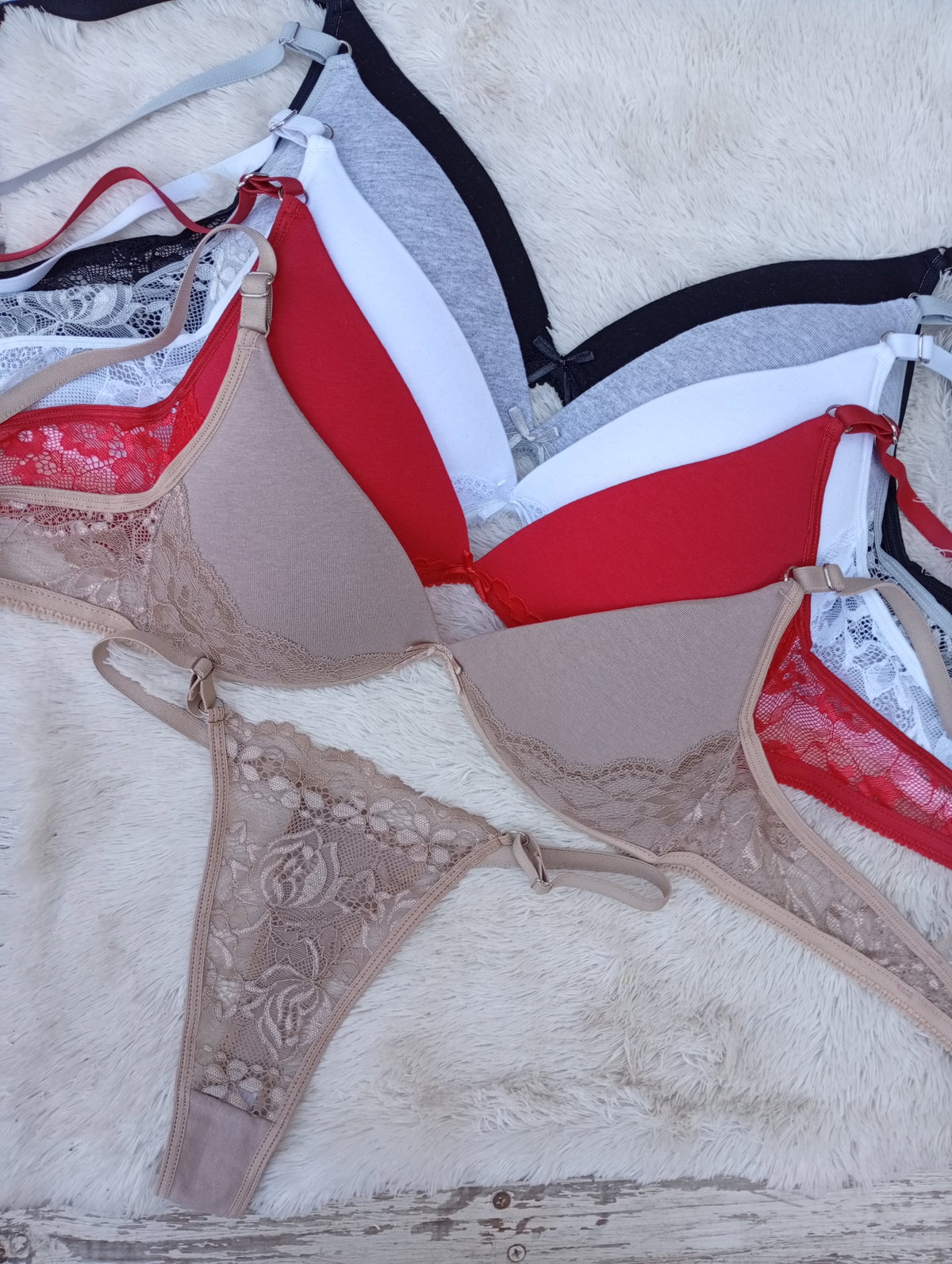 Triangulito de algodón con encaje en laterales. La bombis es encaje adelante y algodón detrás.