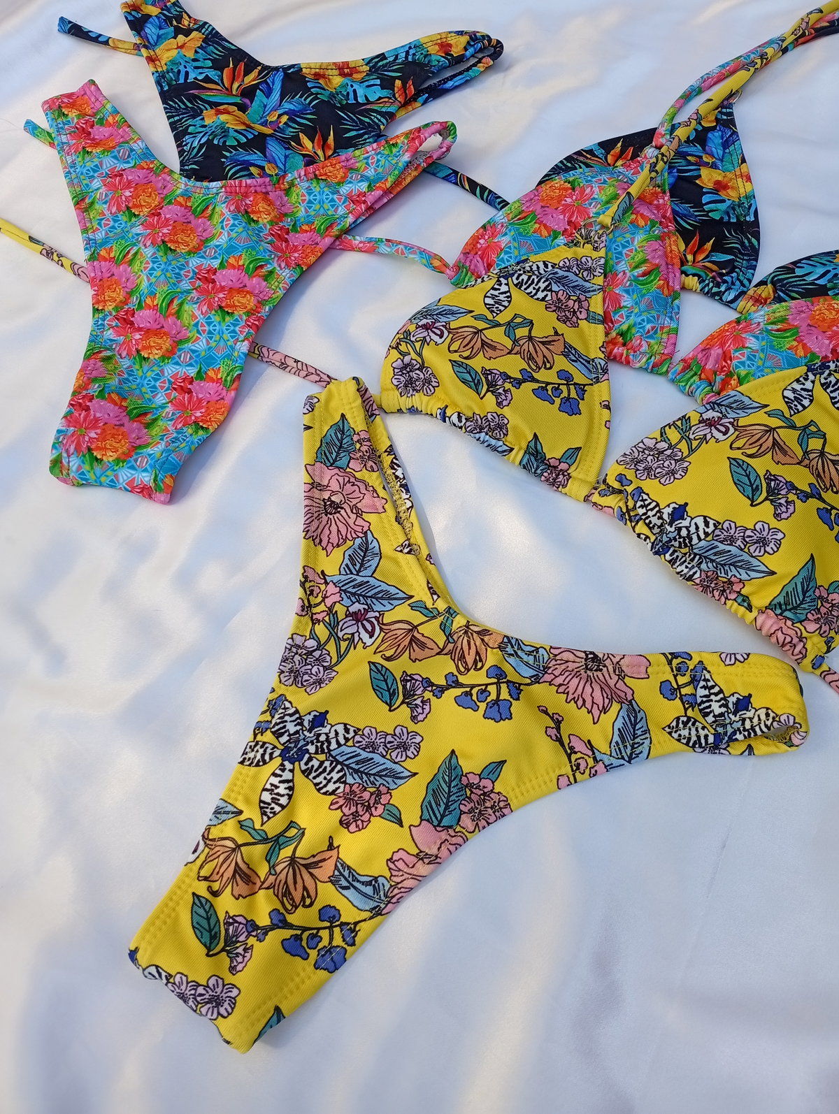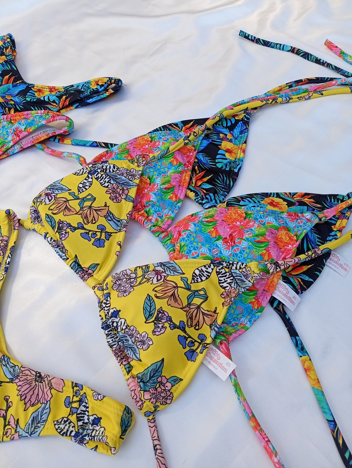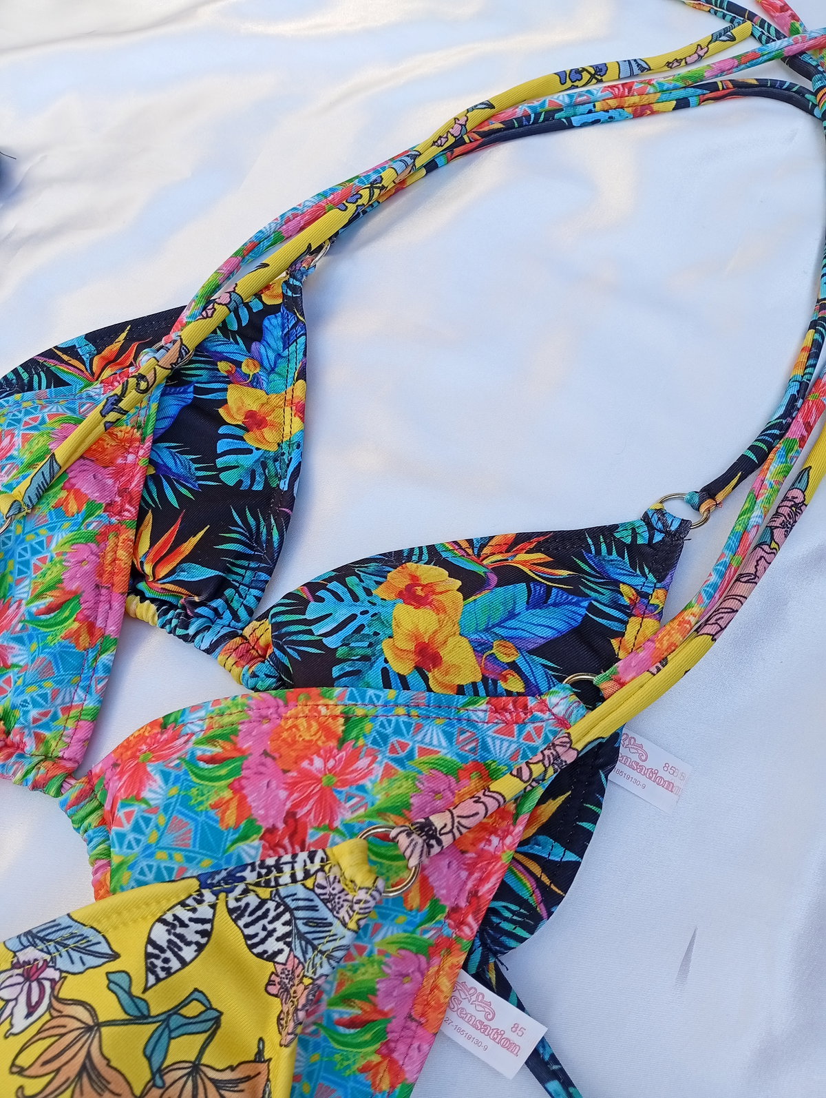 Bikini triangulito less en V estampada flores New Sensation