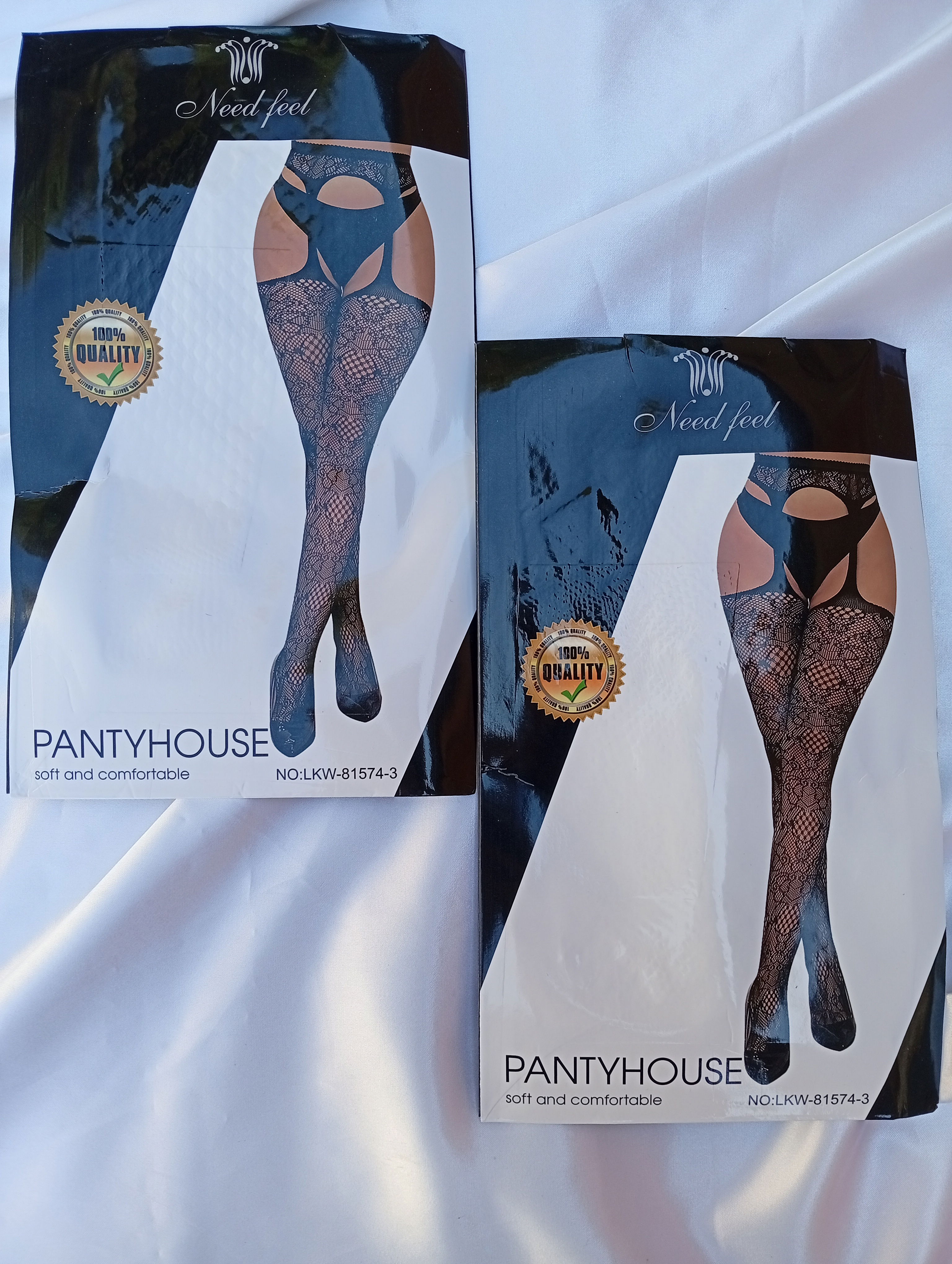 Son medias ligueras de red con diseños variados. Laarca es Needfeel, excelente calidad.