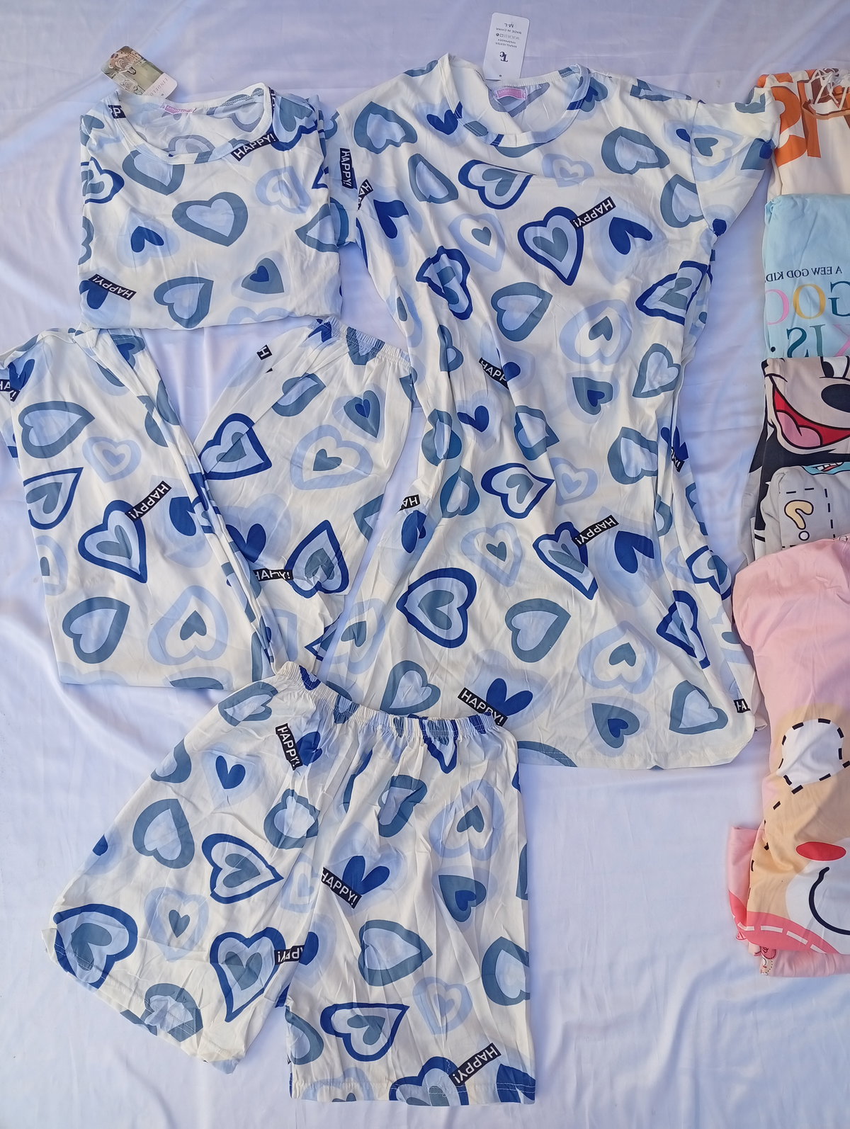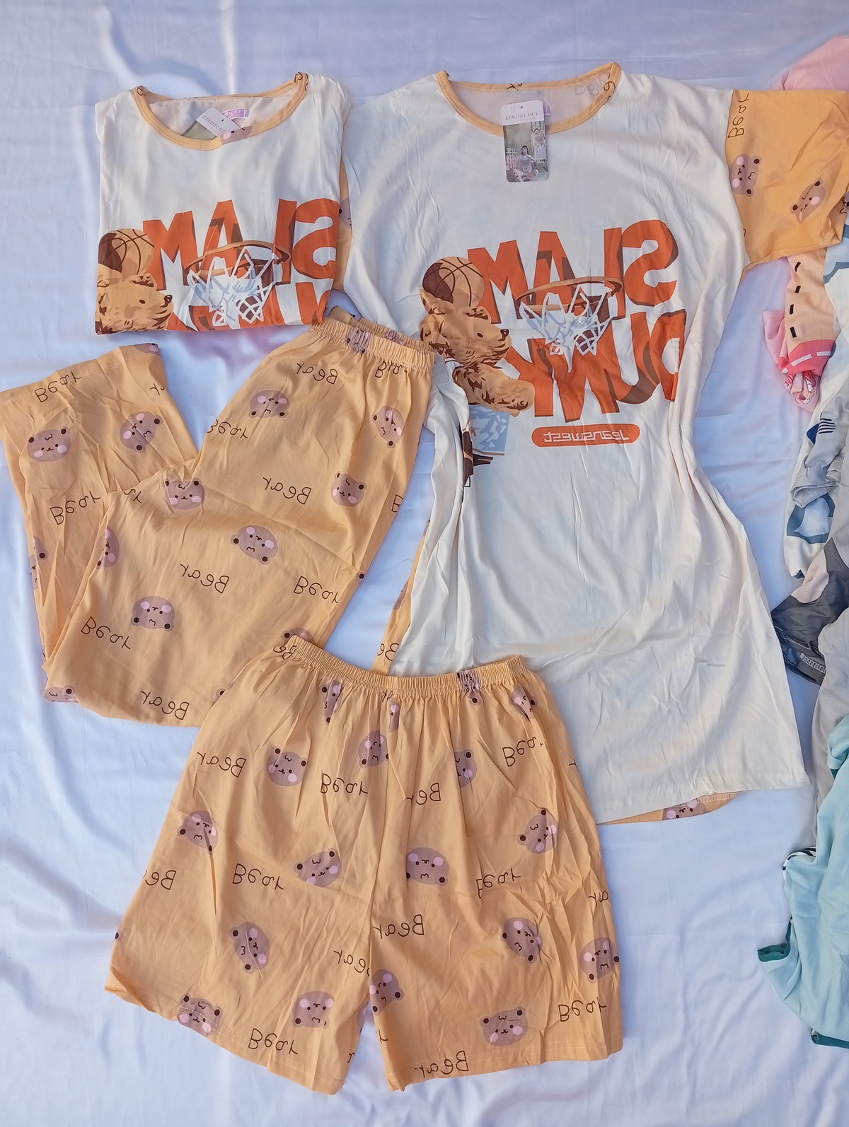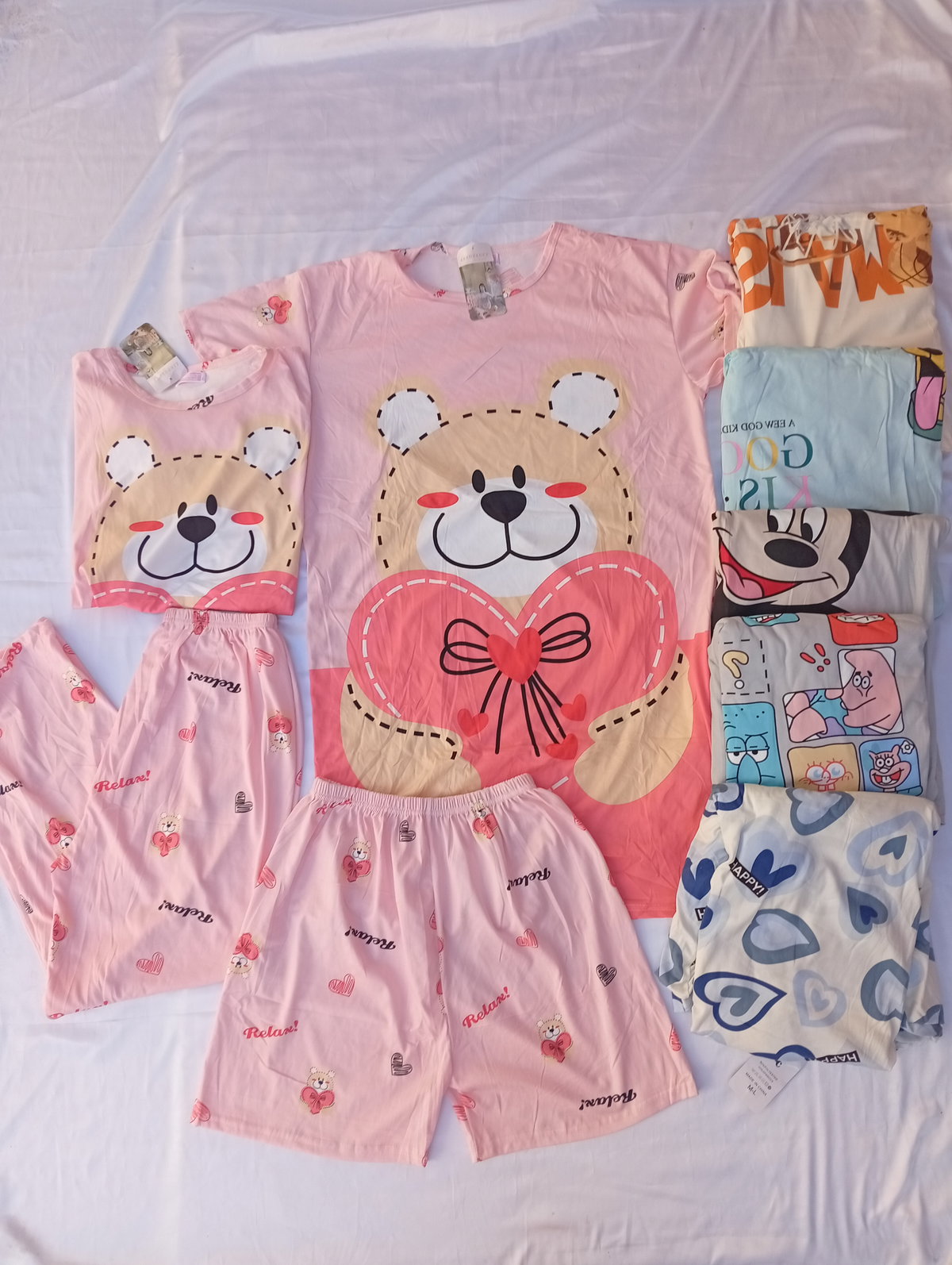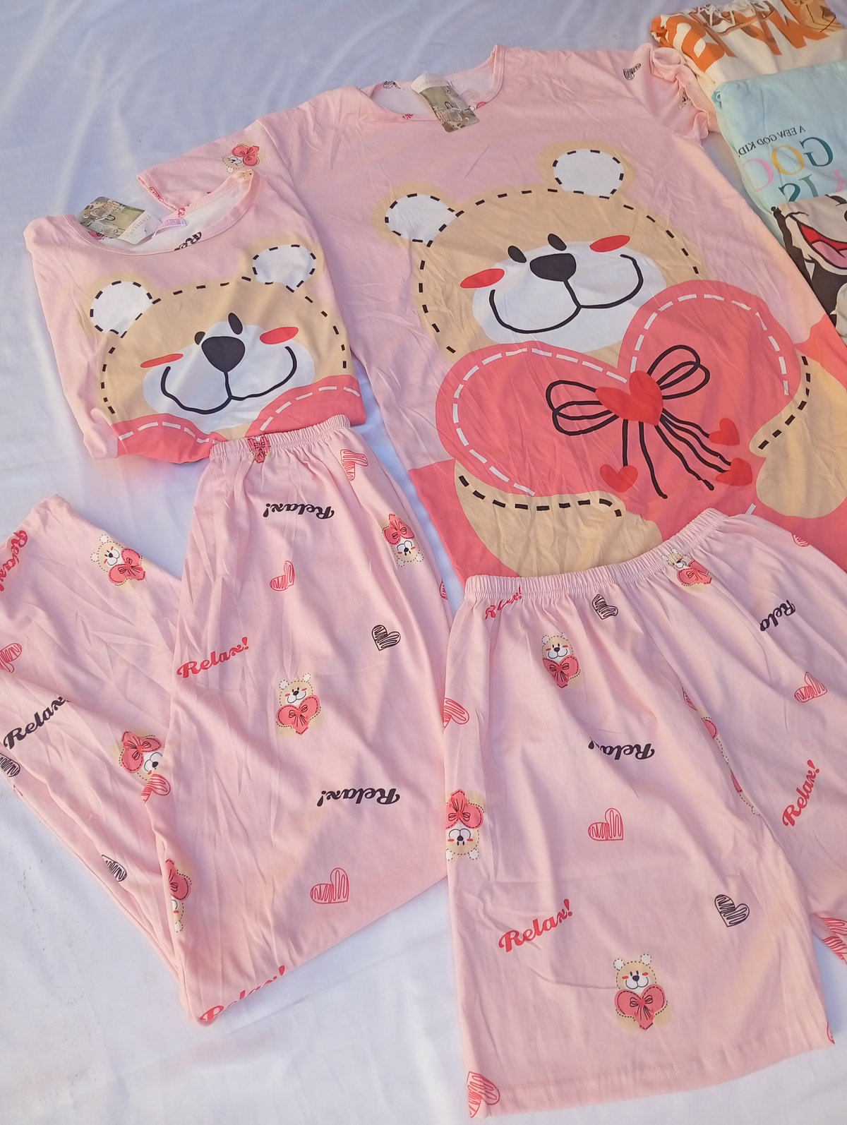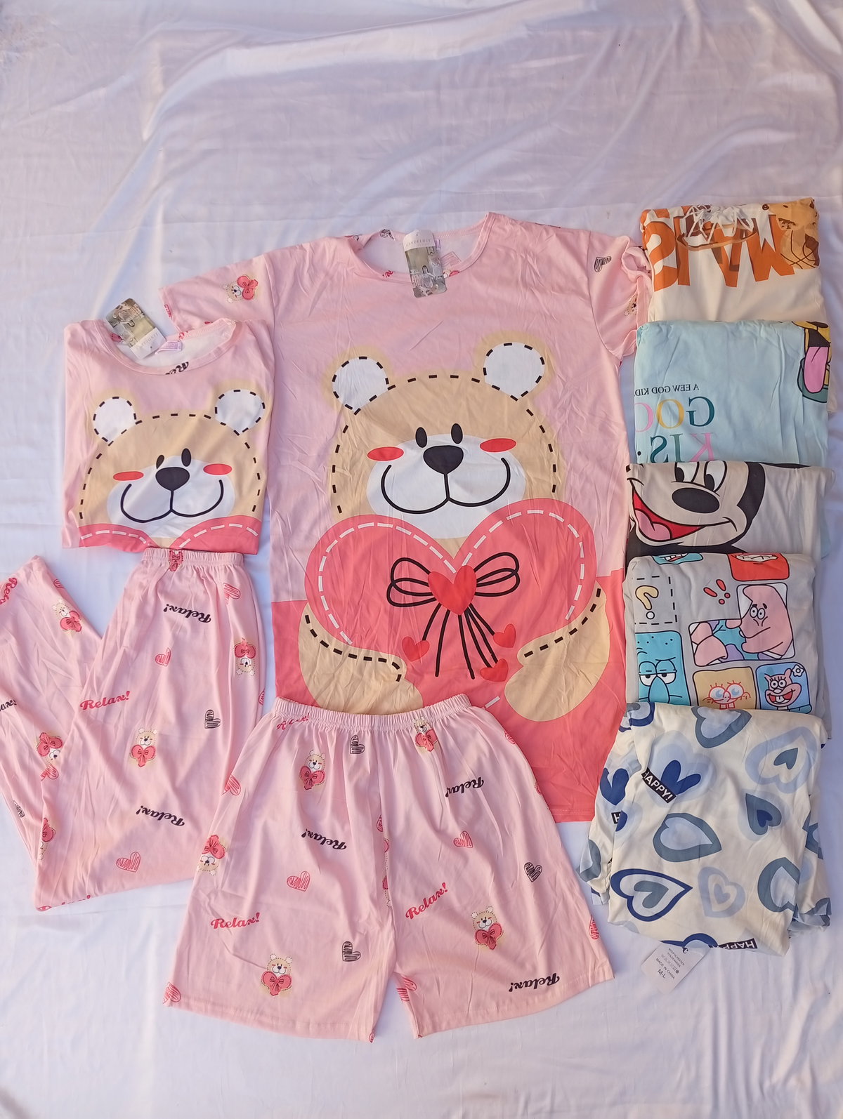 El set incluye: Remera + short + pantalón + vestido