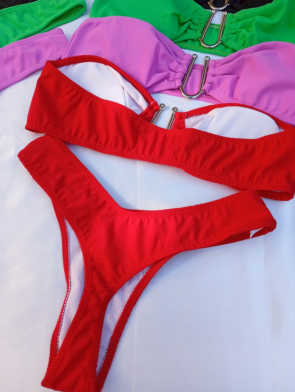 Es bikini confeccionada en Tricot, resistente al cloro de las piscinas.