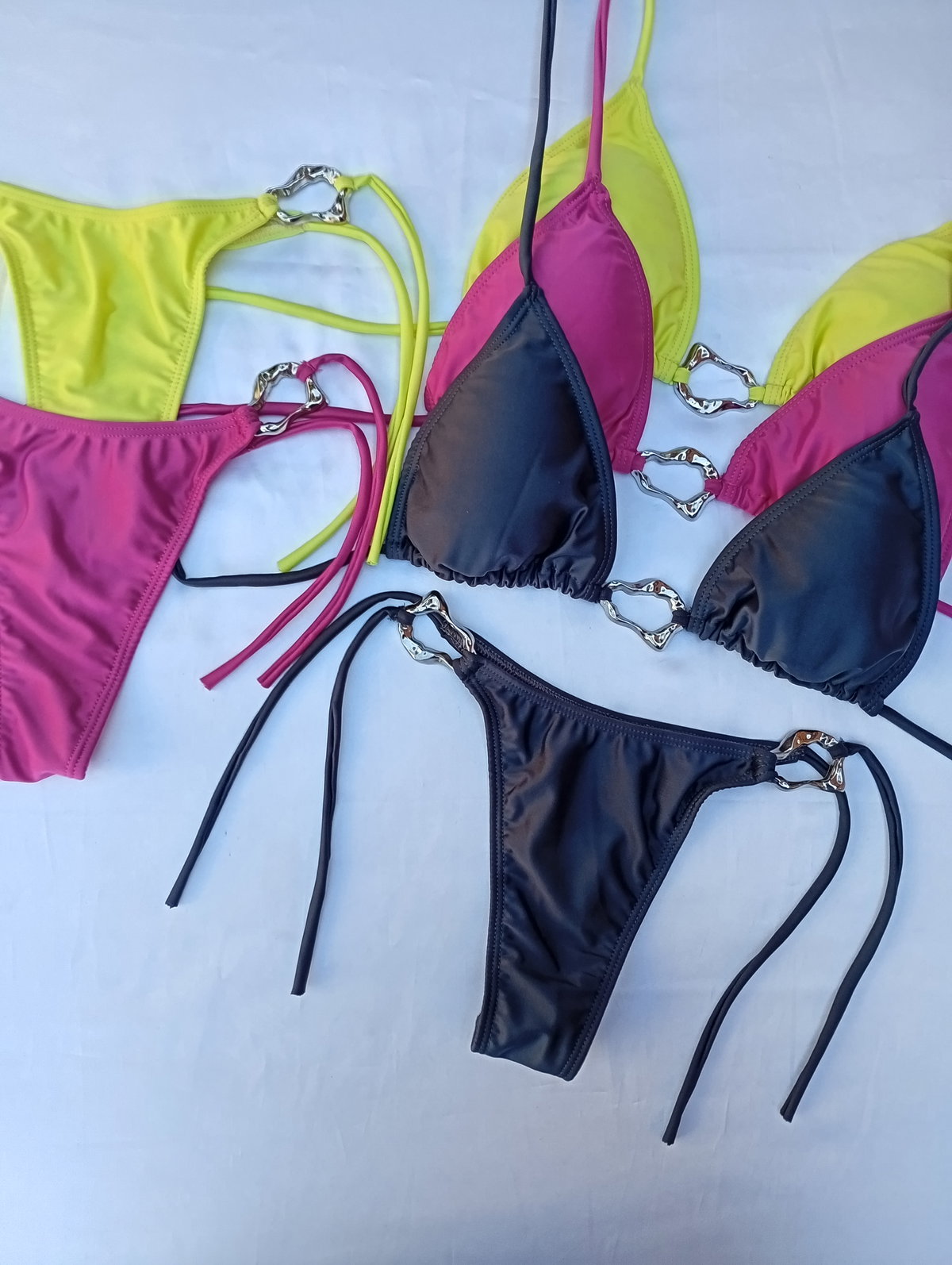 Bikini triangulito avio decorado plateado (1/2 Docena)