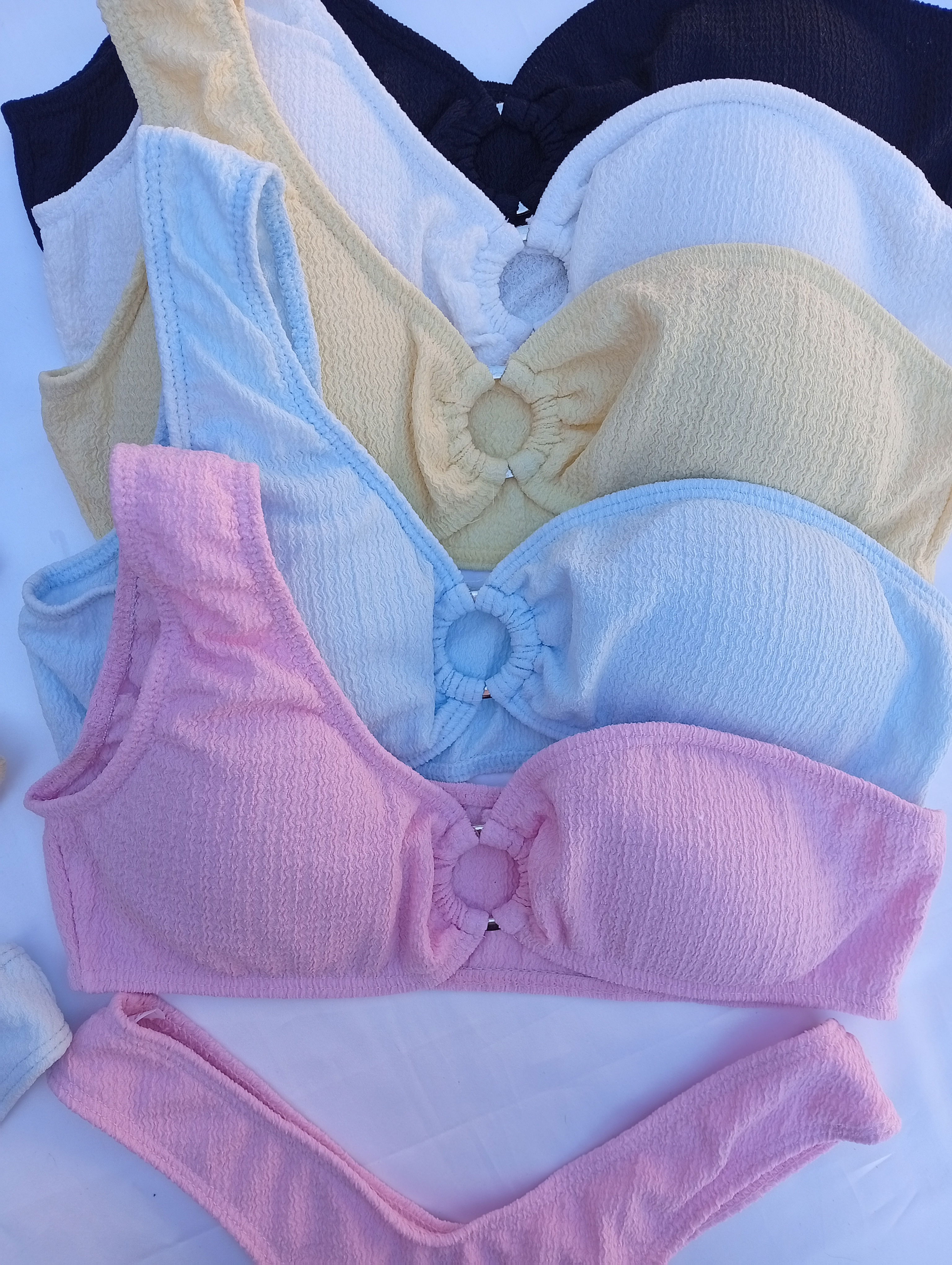 Bikini confeccionada en tela Bruselas, texturada suave.