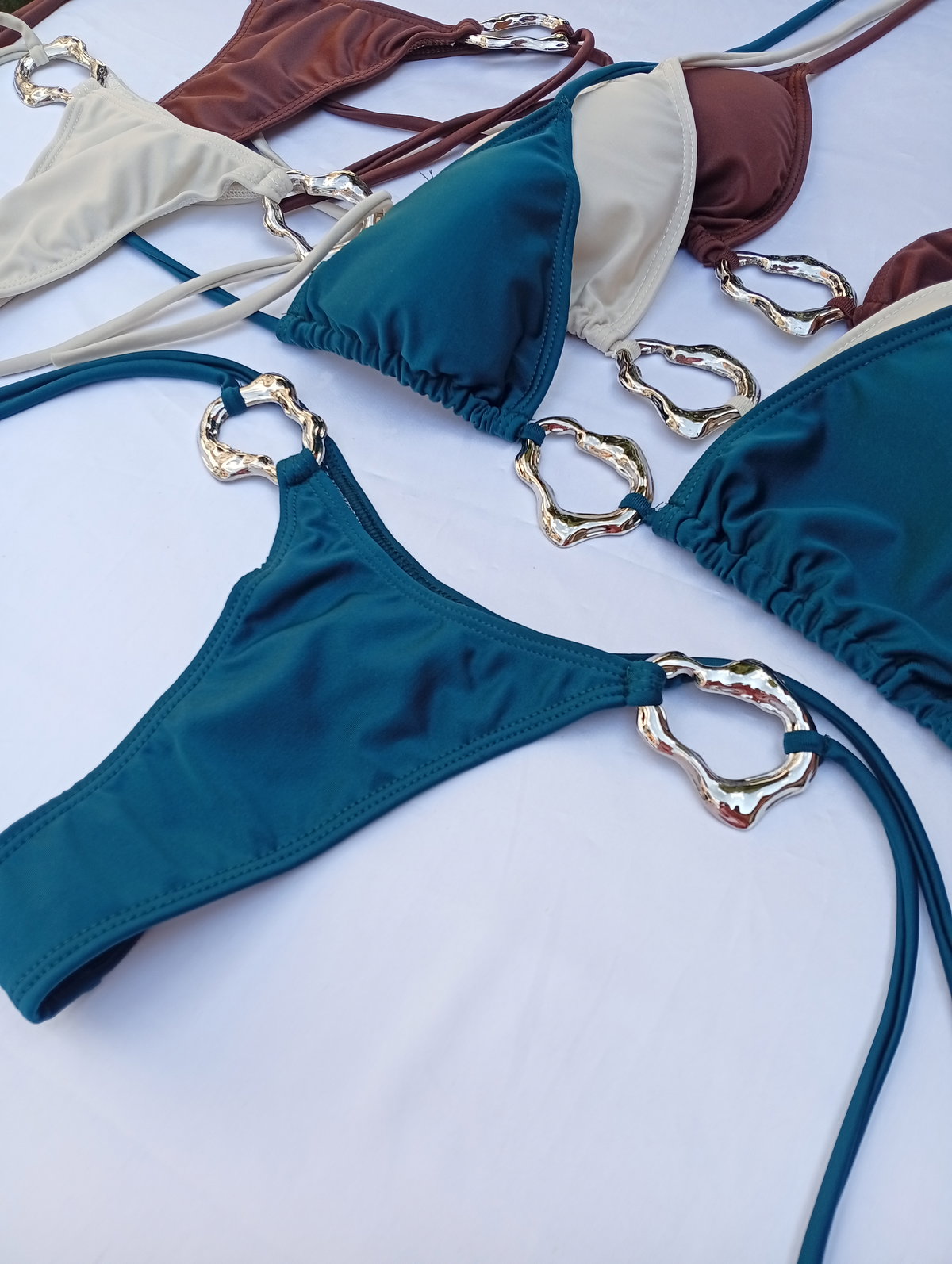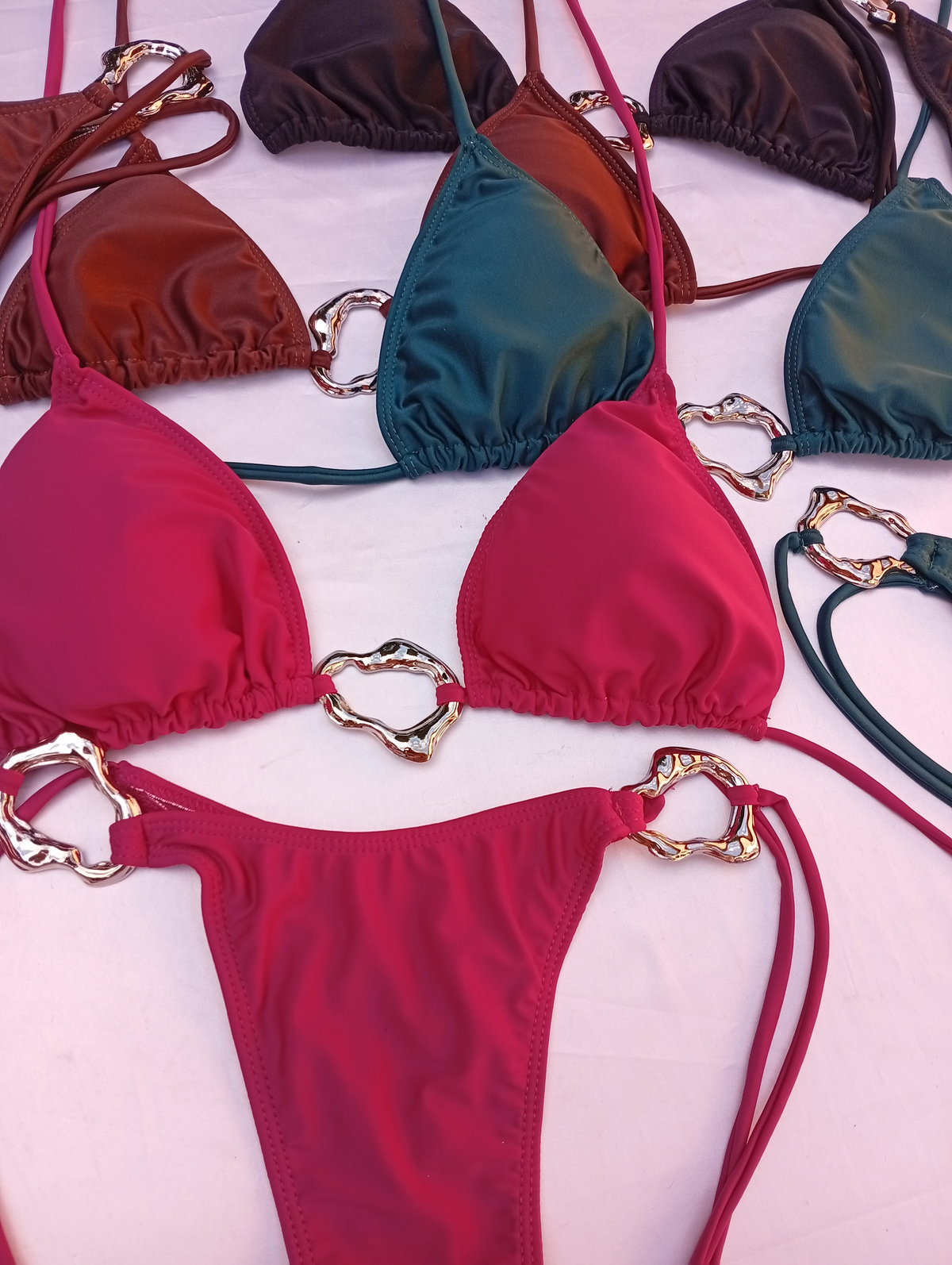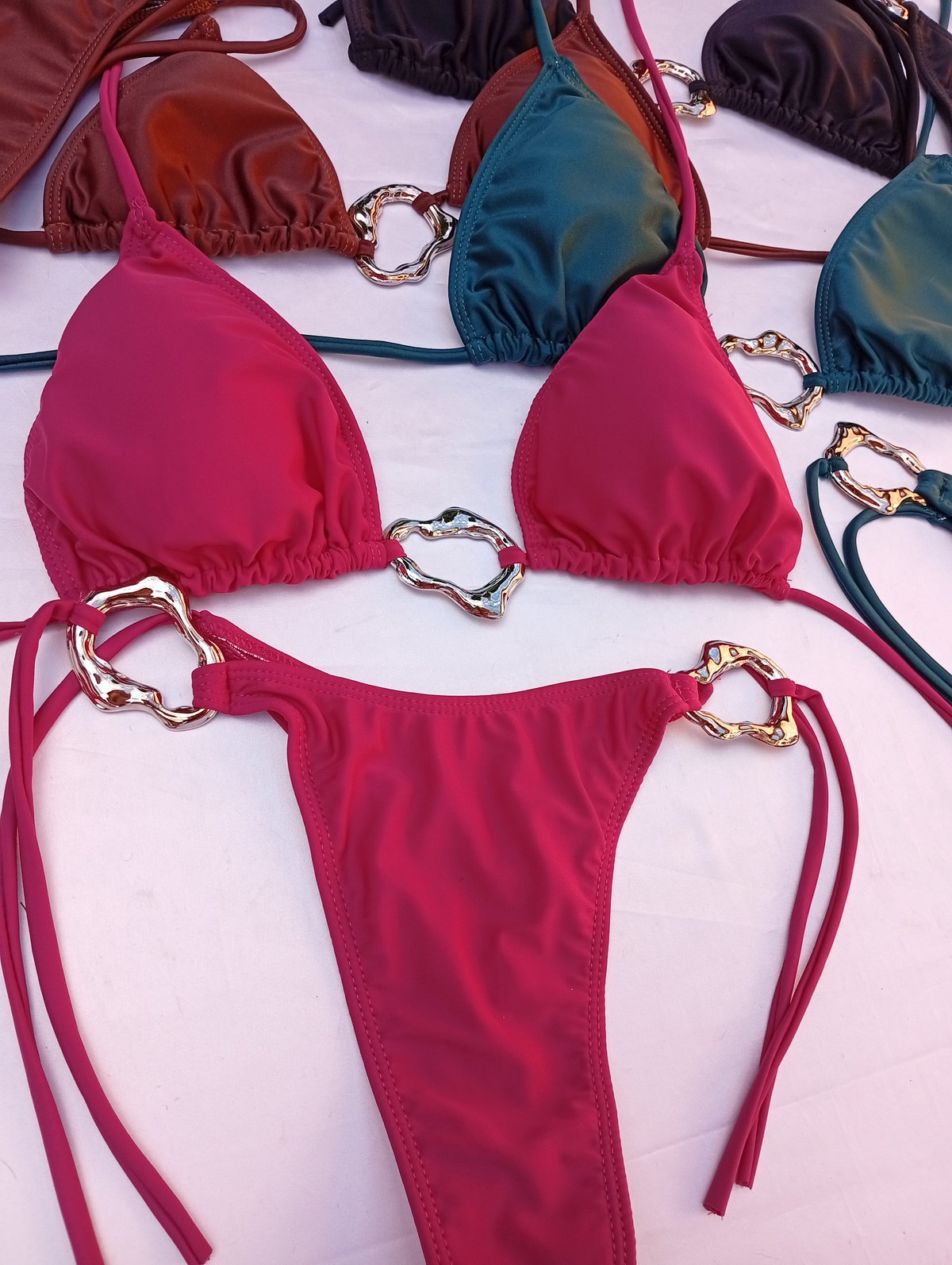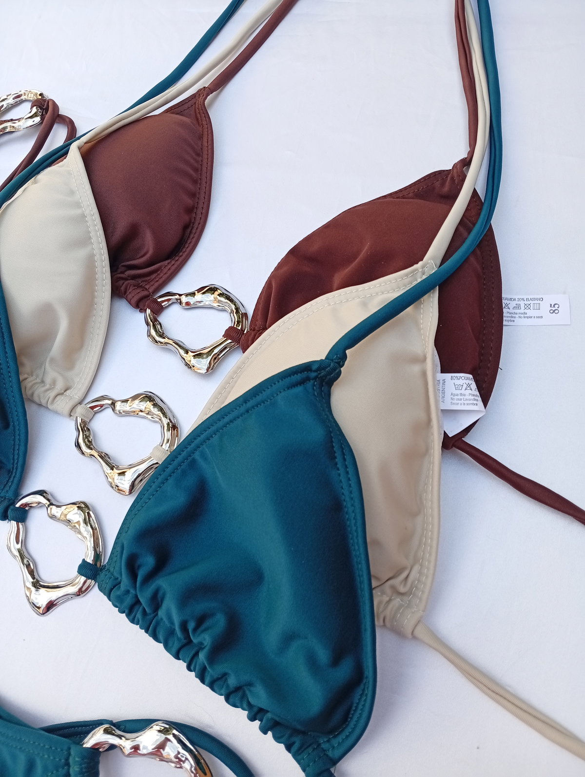 Bikini triangulito confeccionada en tela Tricot, resistente al cloro y al sol (no se decolora).