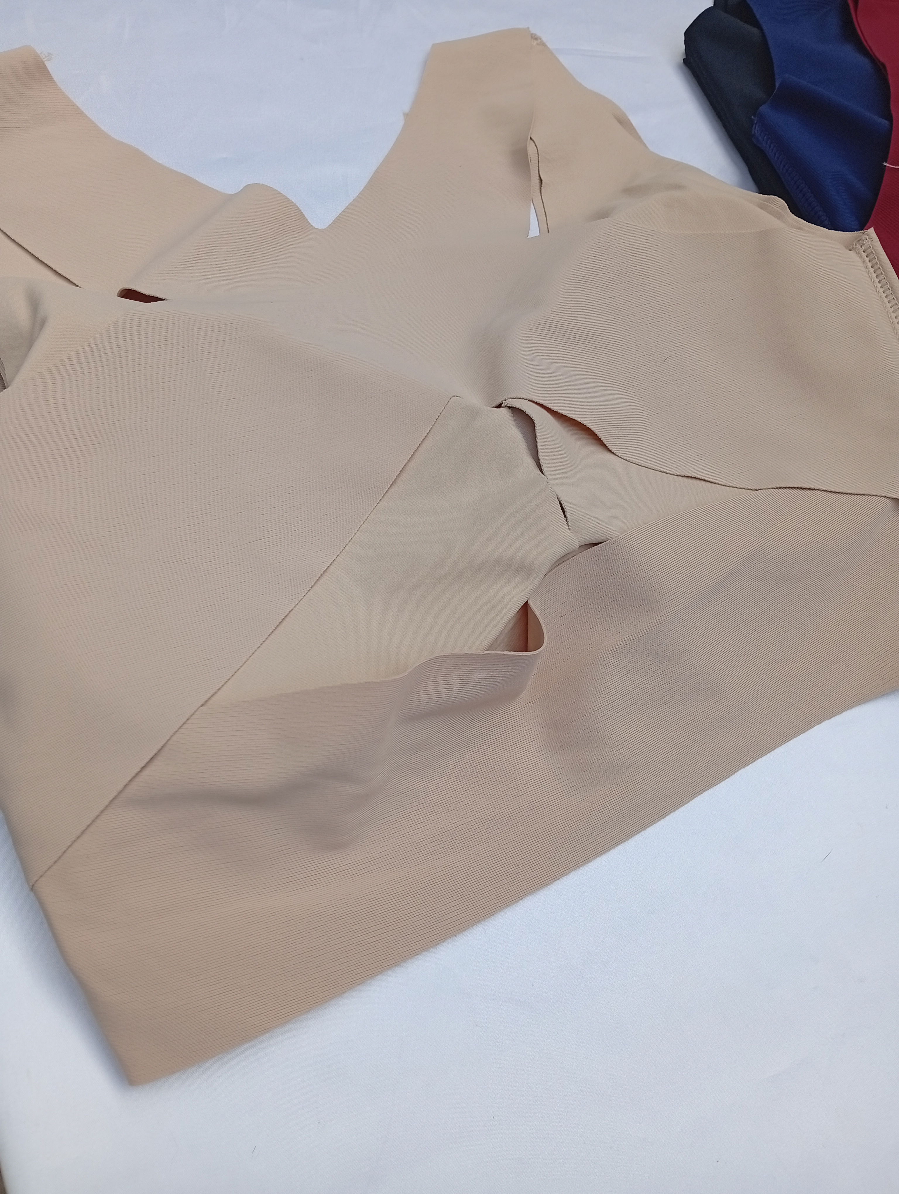 Es un corpiño en segunda piel, diseñado para ayudar a corregir la postura. Es una pieza completa, se ajusta solo adelante bajo busto, con 3 broches. La taza es removible.