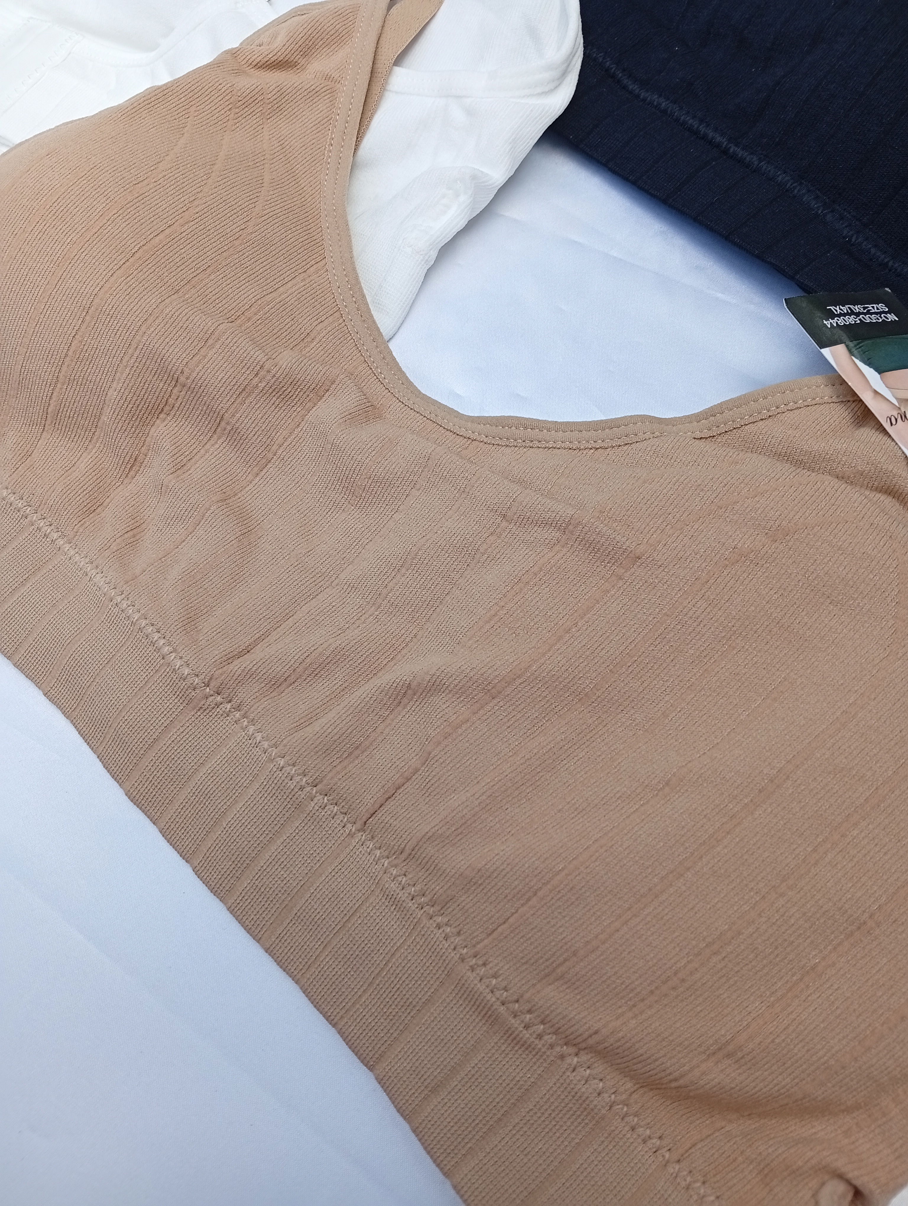 Tiene 3 broches en la espalda. La taza es removible. El bretel es removible y queda solo como top.