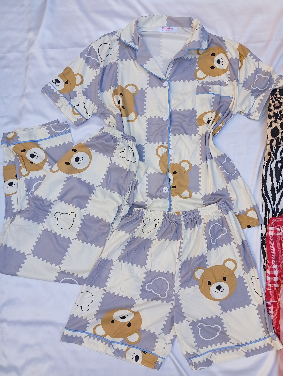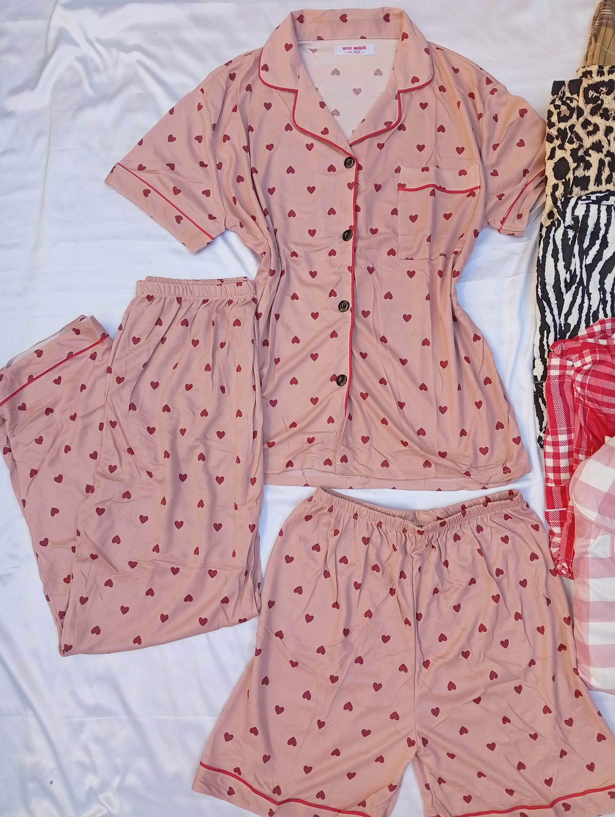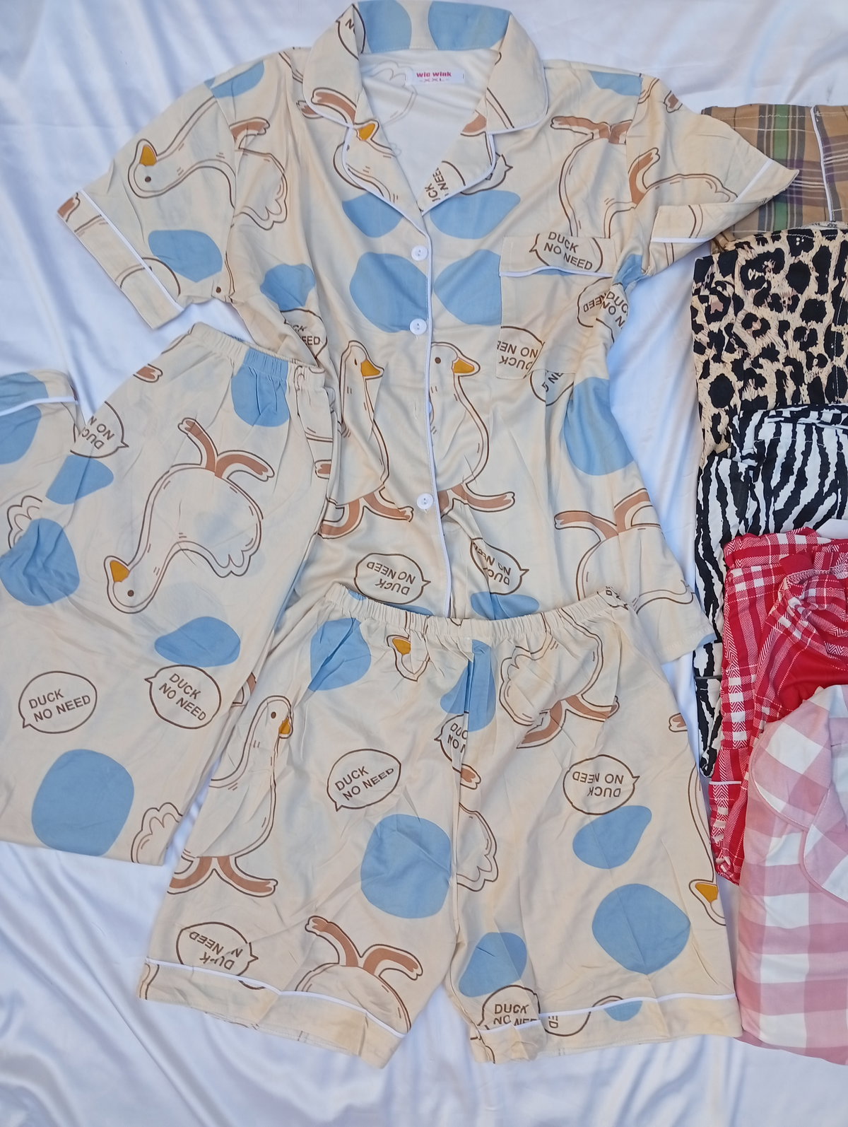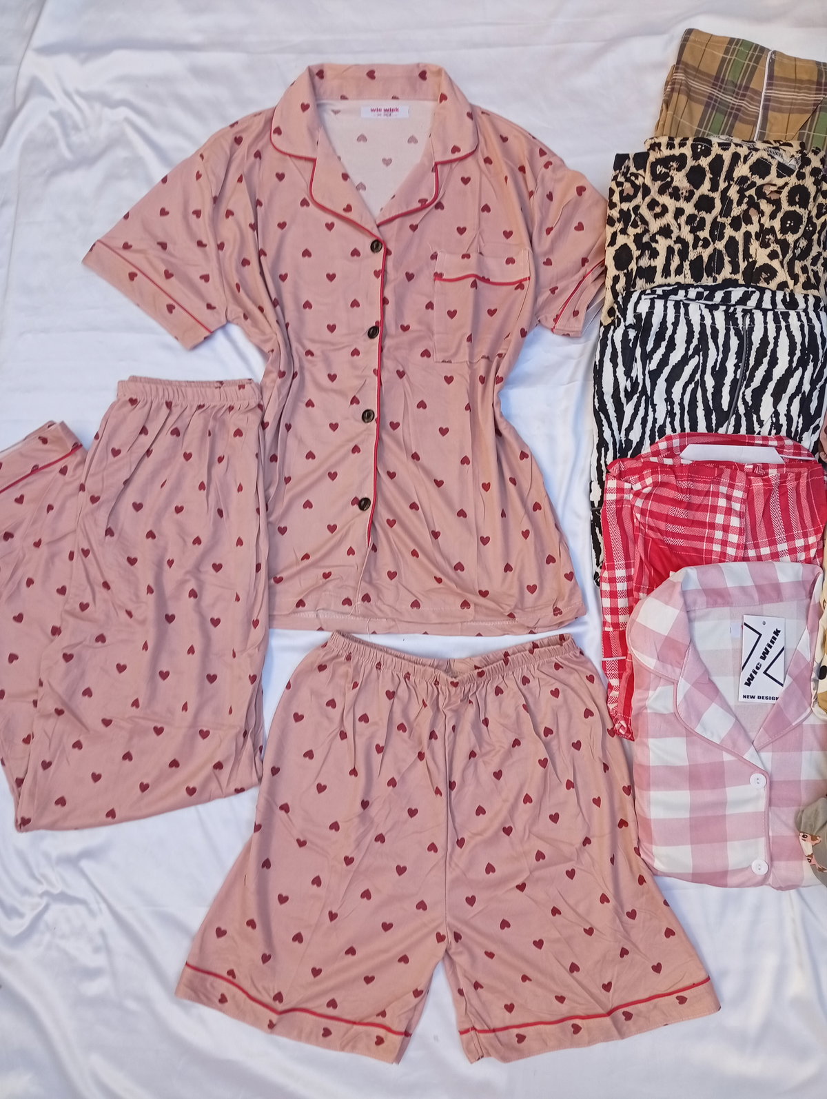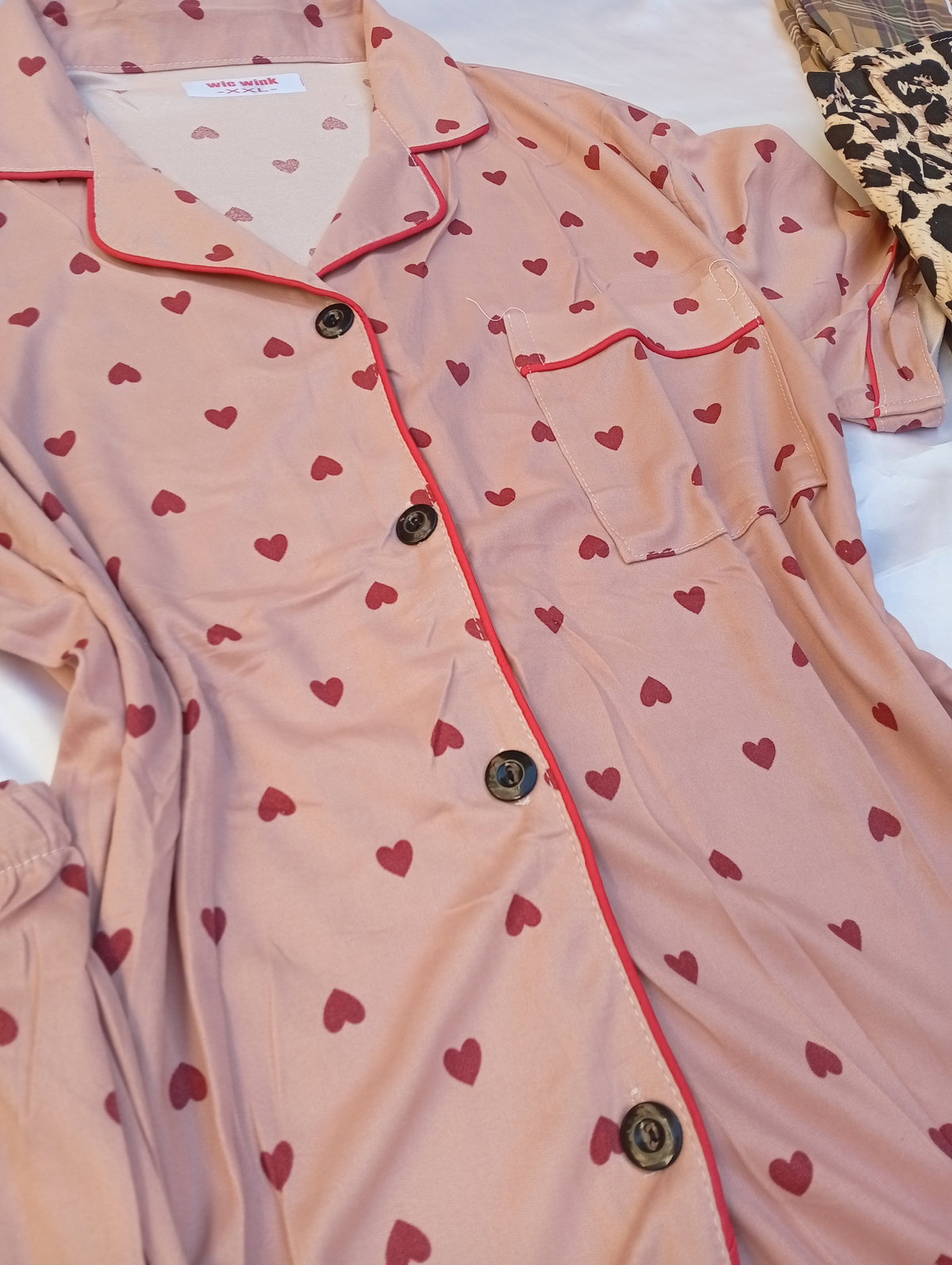 Son pijamas importadas de 3 piezas, tienen botones, se puede desabotonar todos. Tienen bolsillo en la camisa.