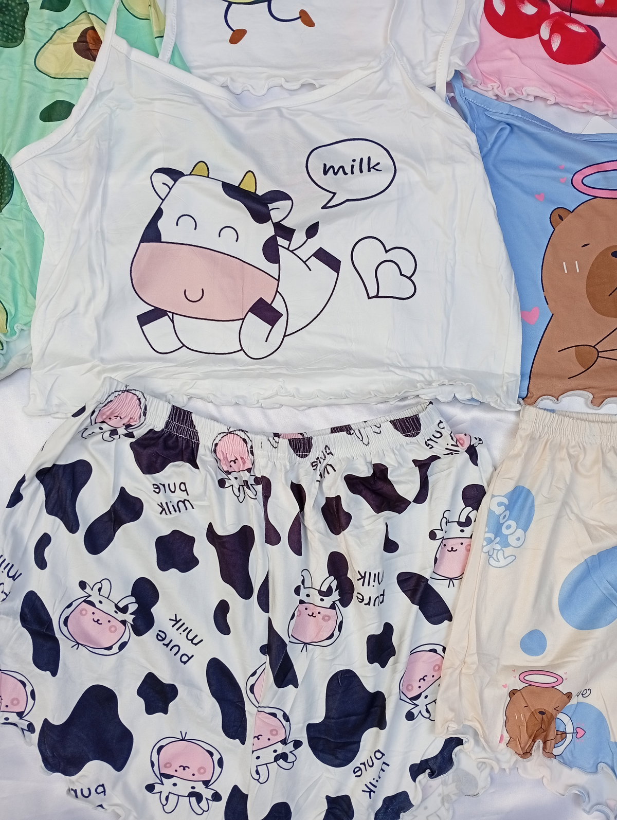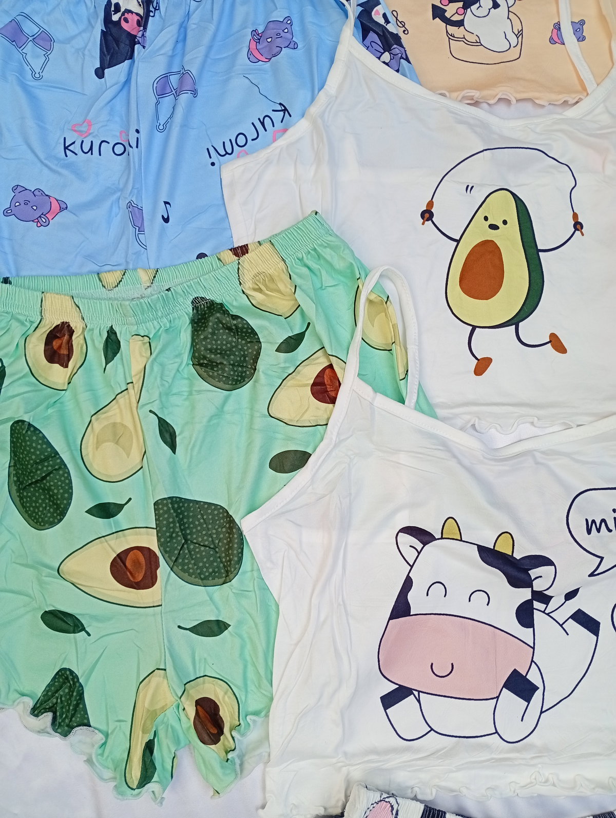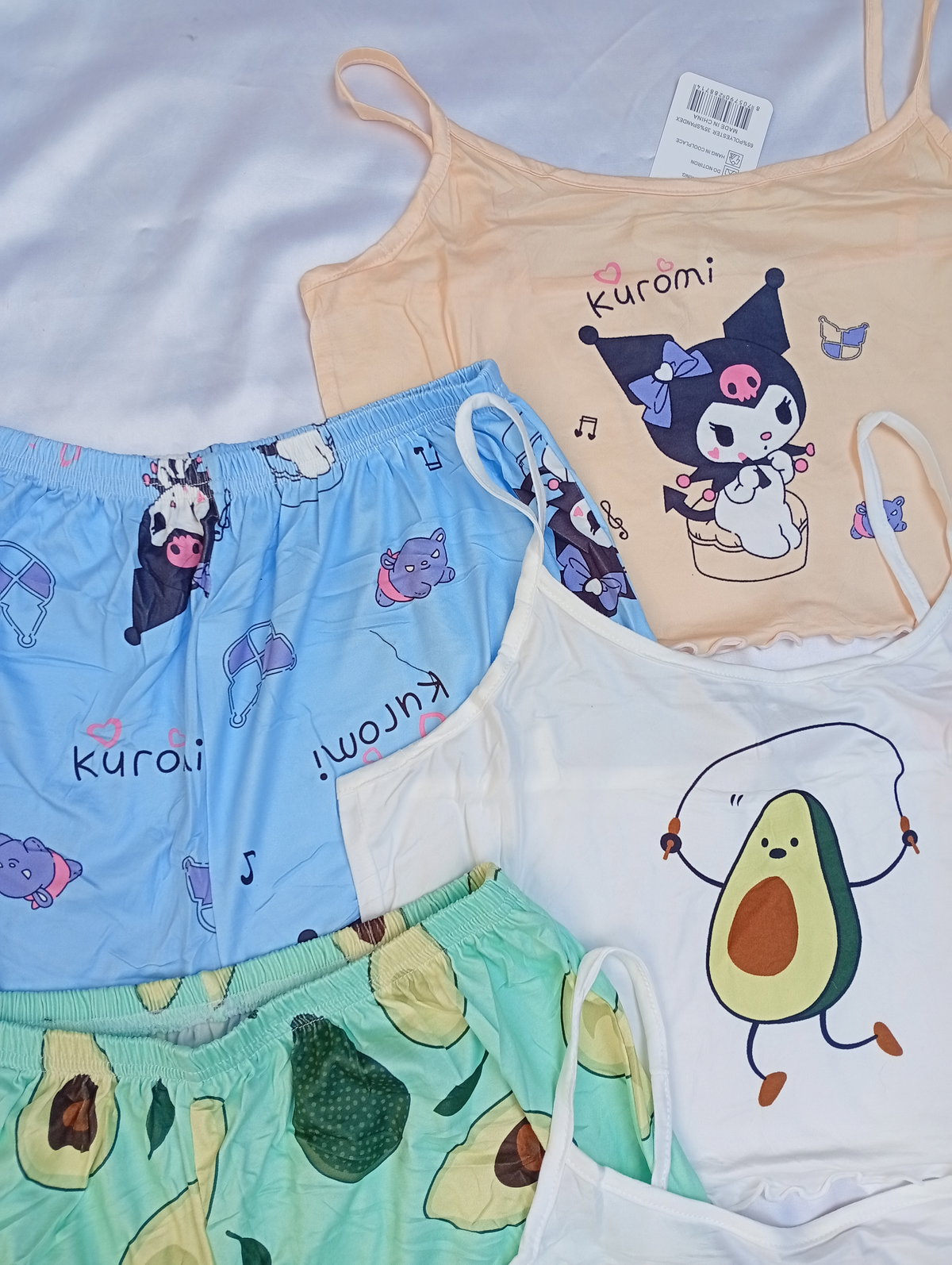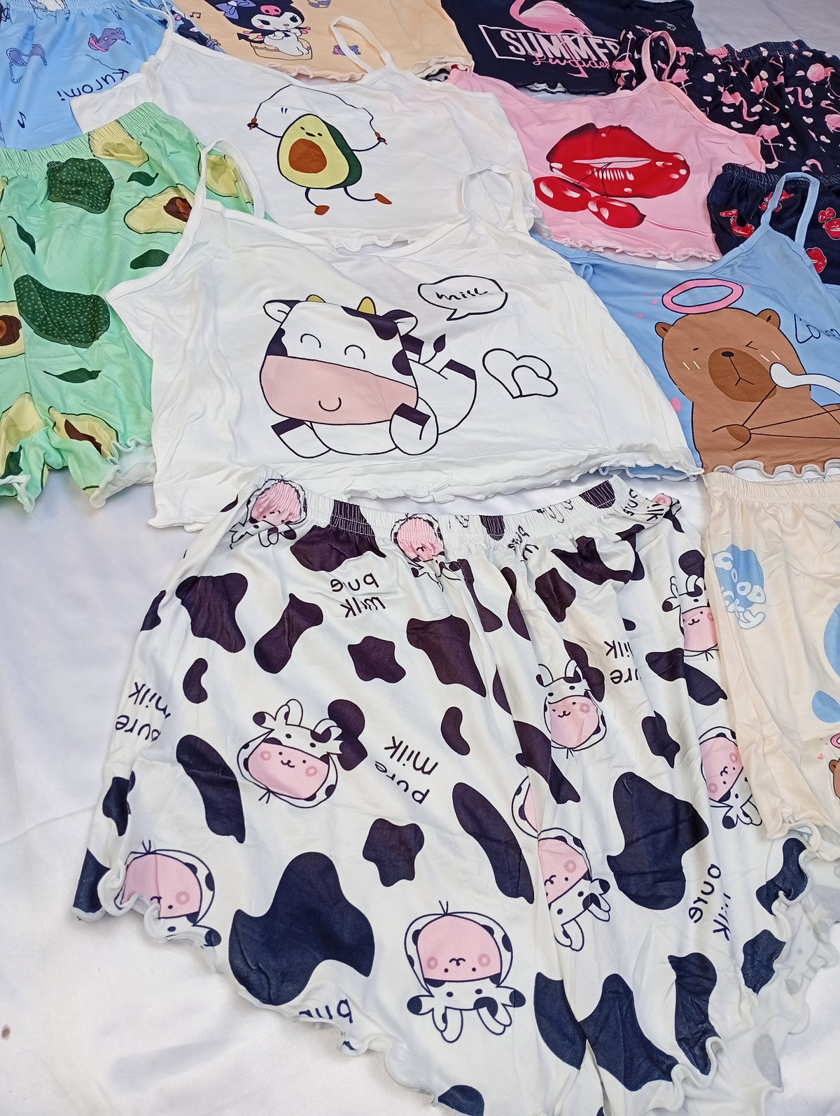 Son pijamas importadas de dos piezas, la remerita es tipo top, y el shor es tiro alto. Super suaves y fresquitos ideal para la temporada.
