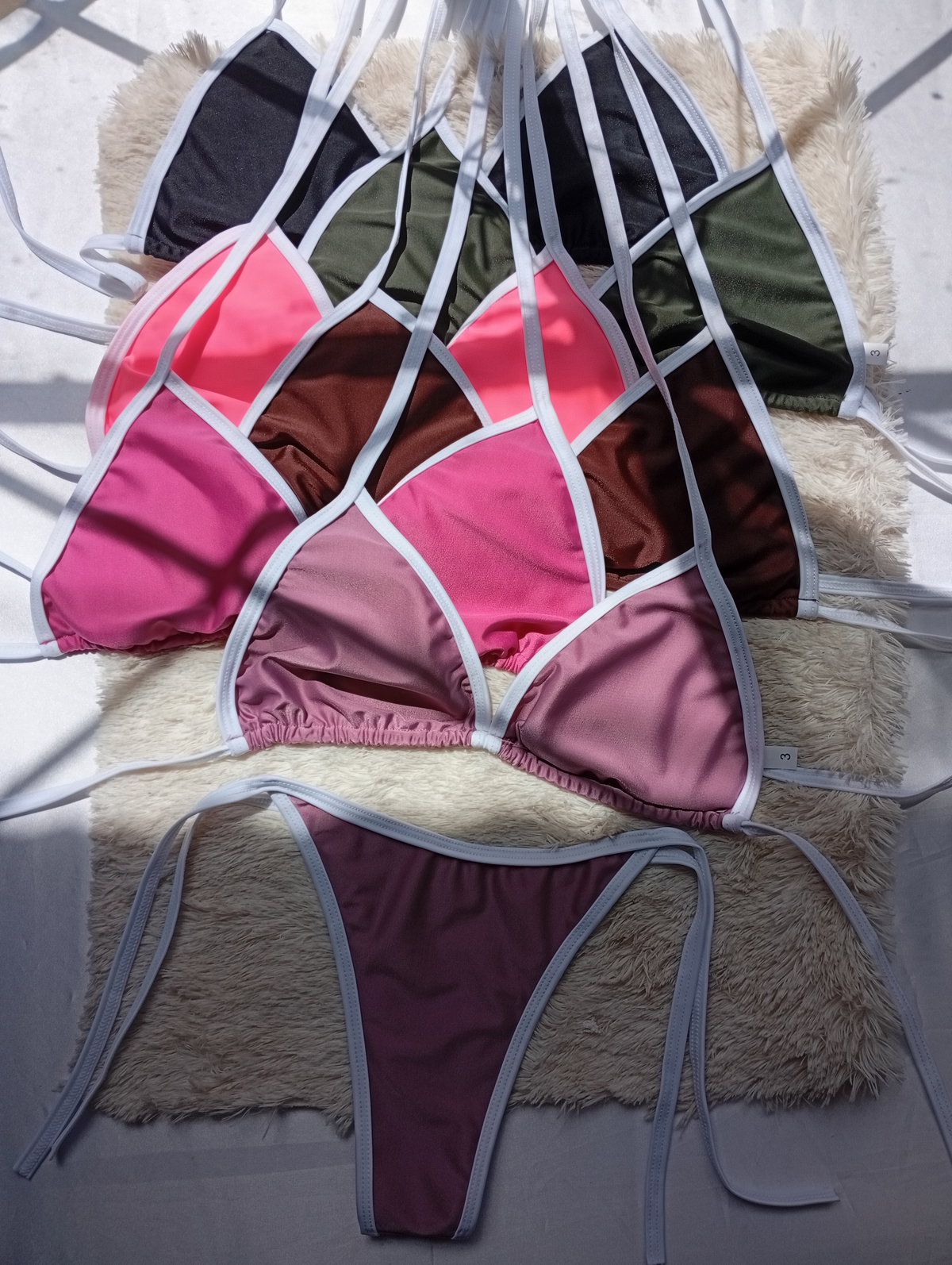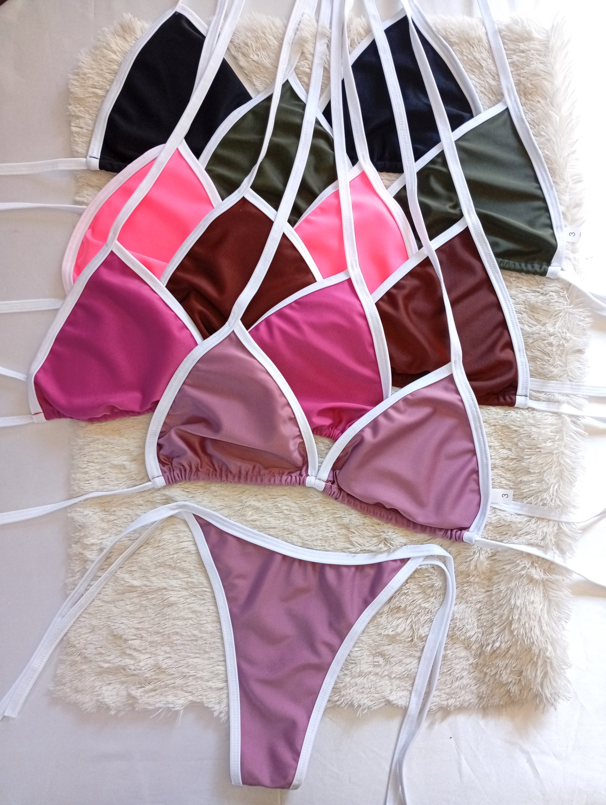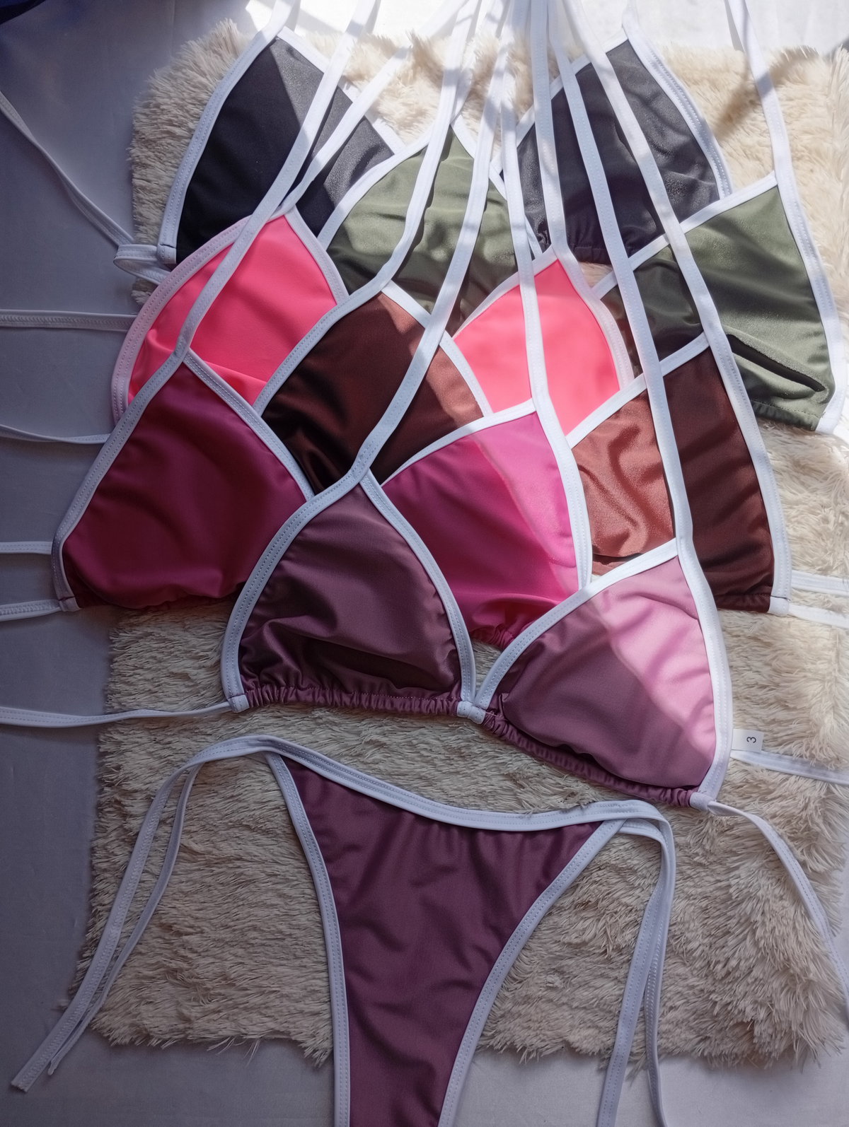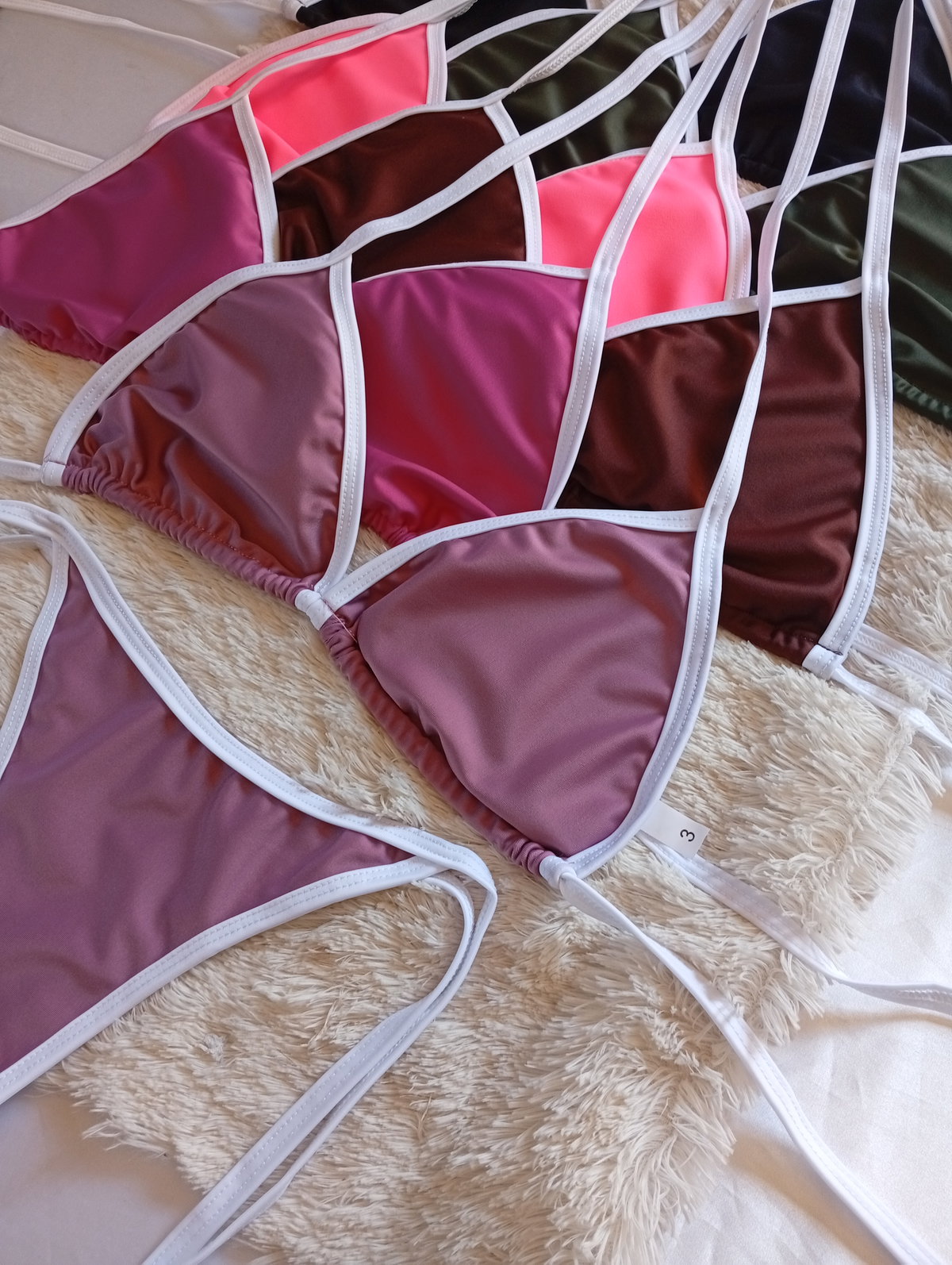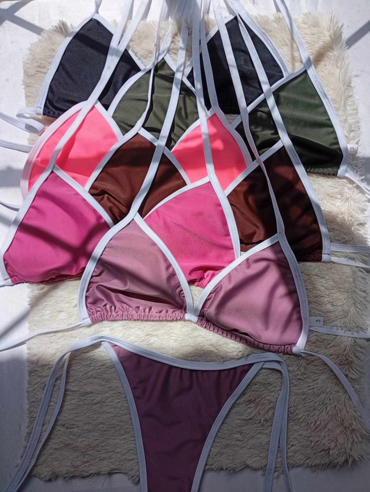 Es bikini confeccionada en Tricot, resistente al cloro de las piscinas.