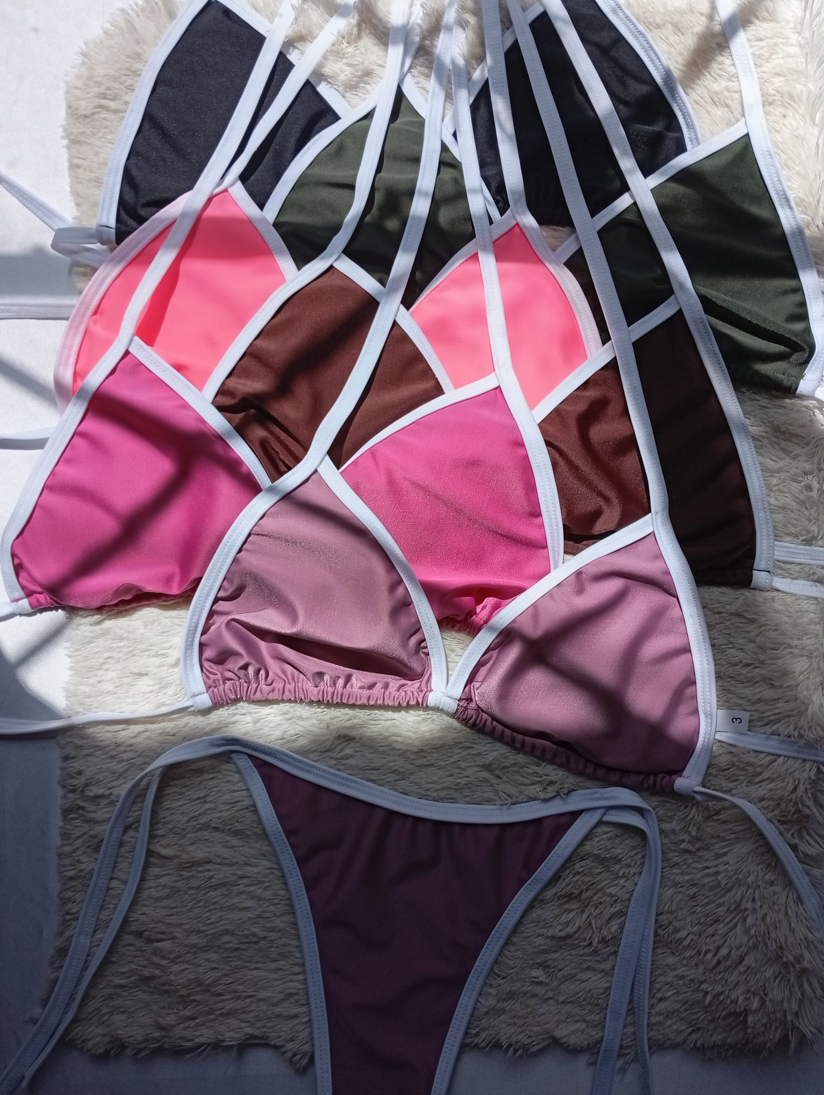 Bikini bicolor triangulito les para atar, NS 2048 ( 1/2 Docena)