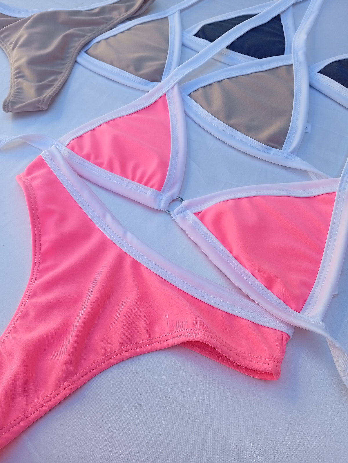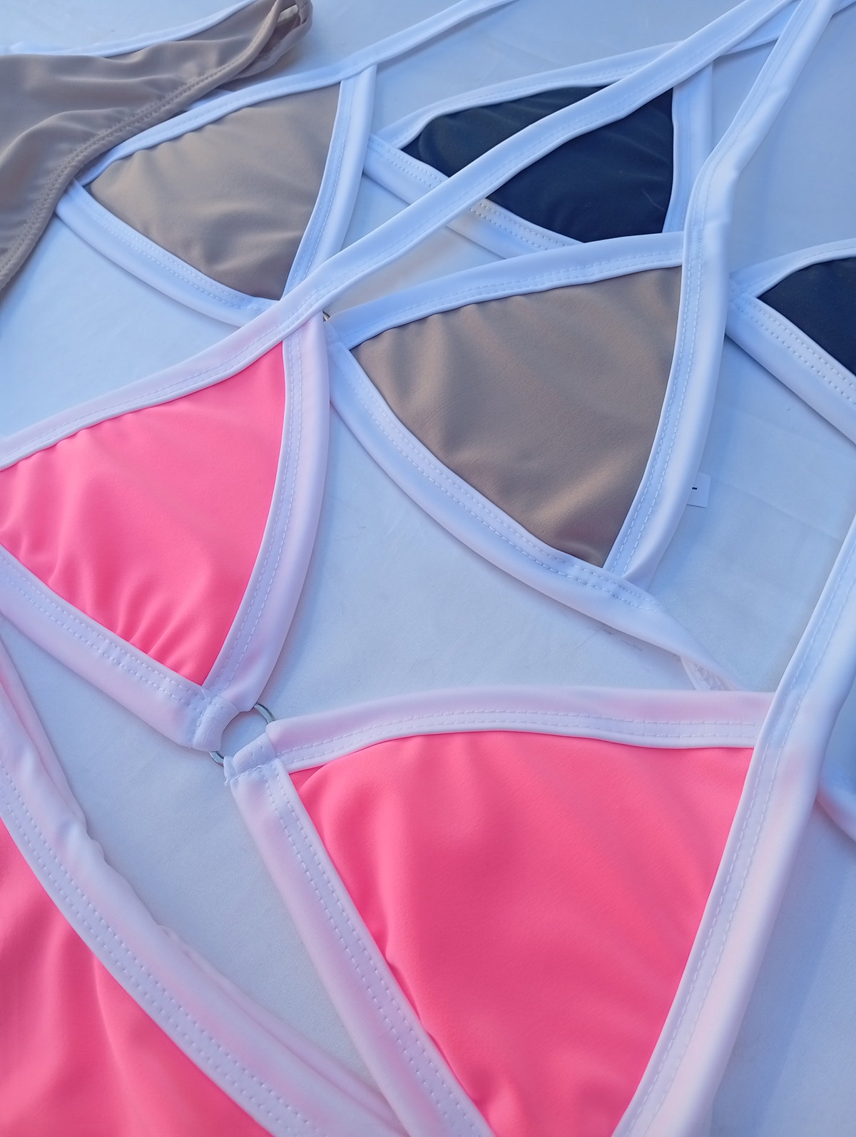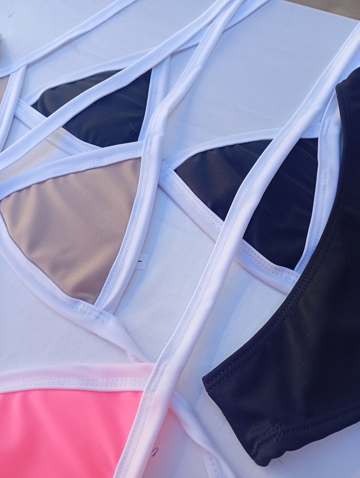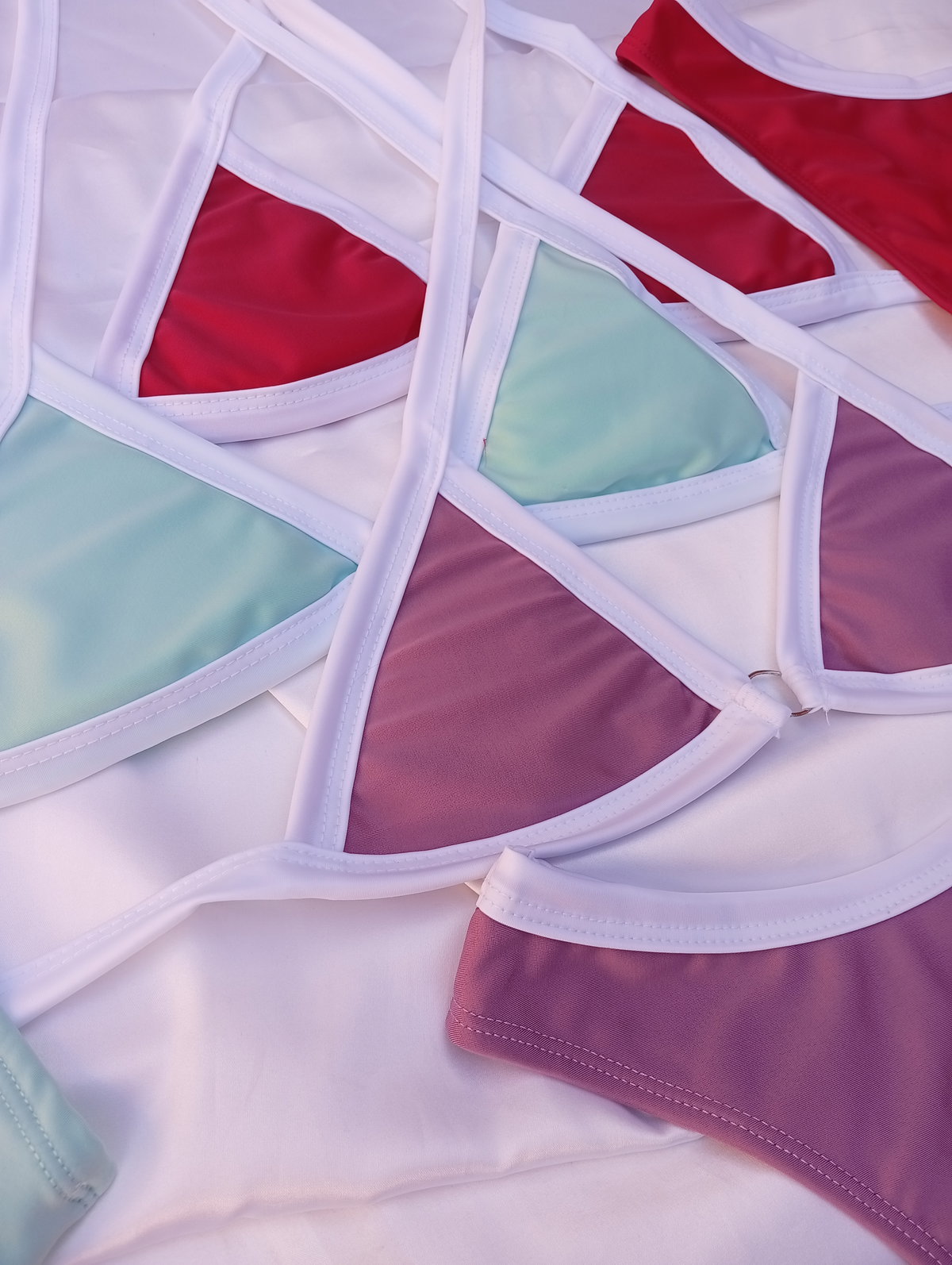 Es bikini confeccionada en Tricot, resistente al cloro de las piscinas.