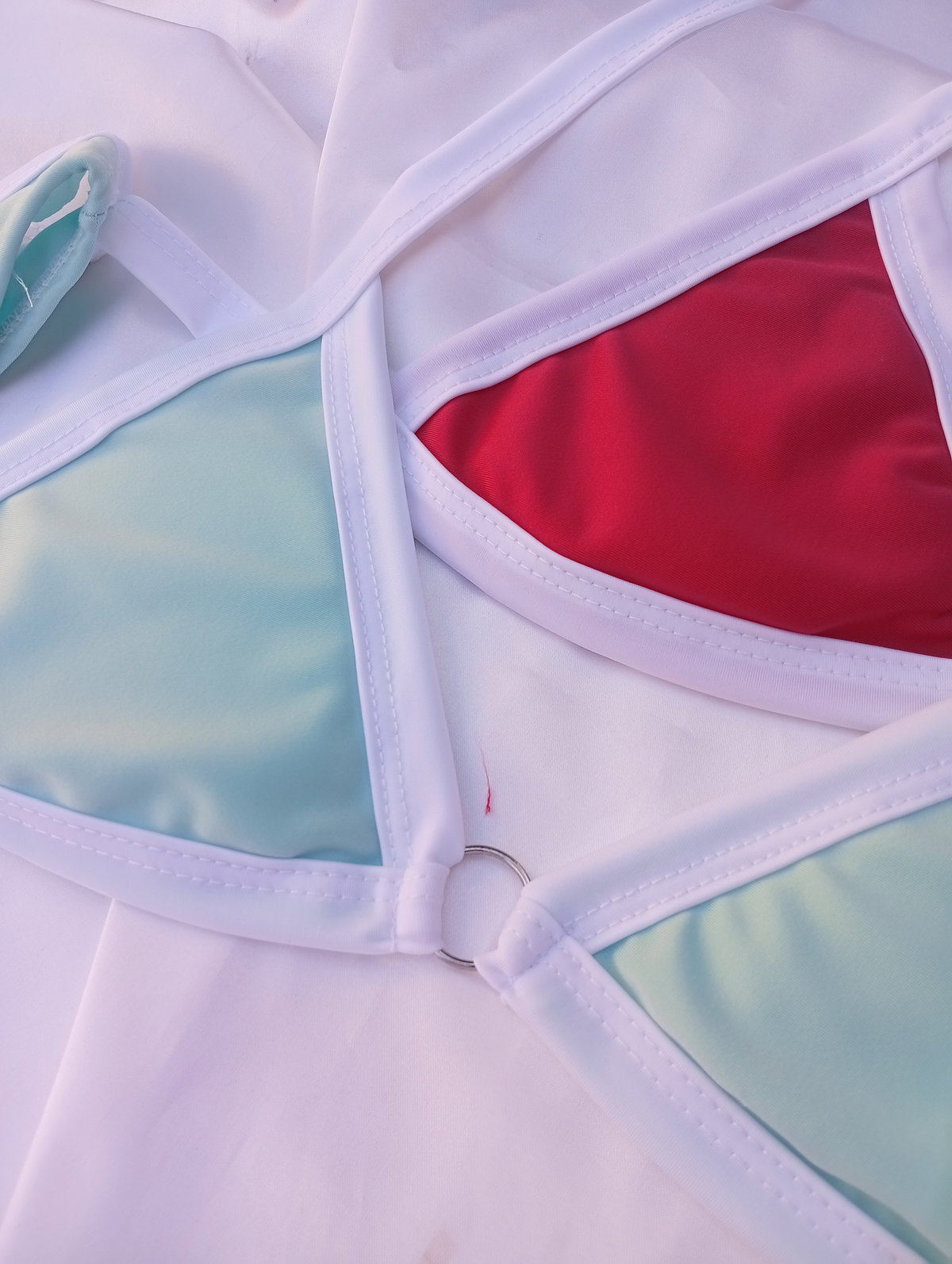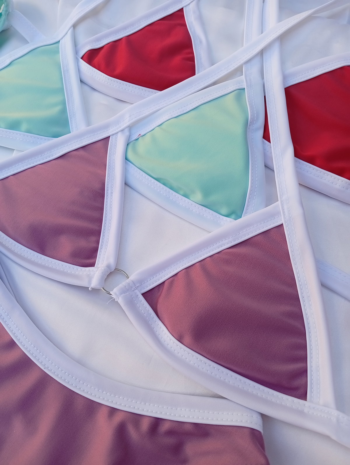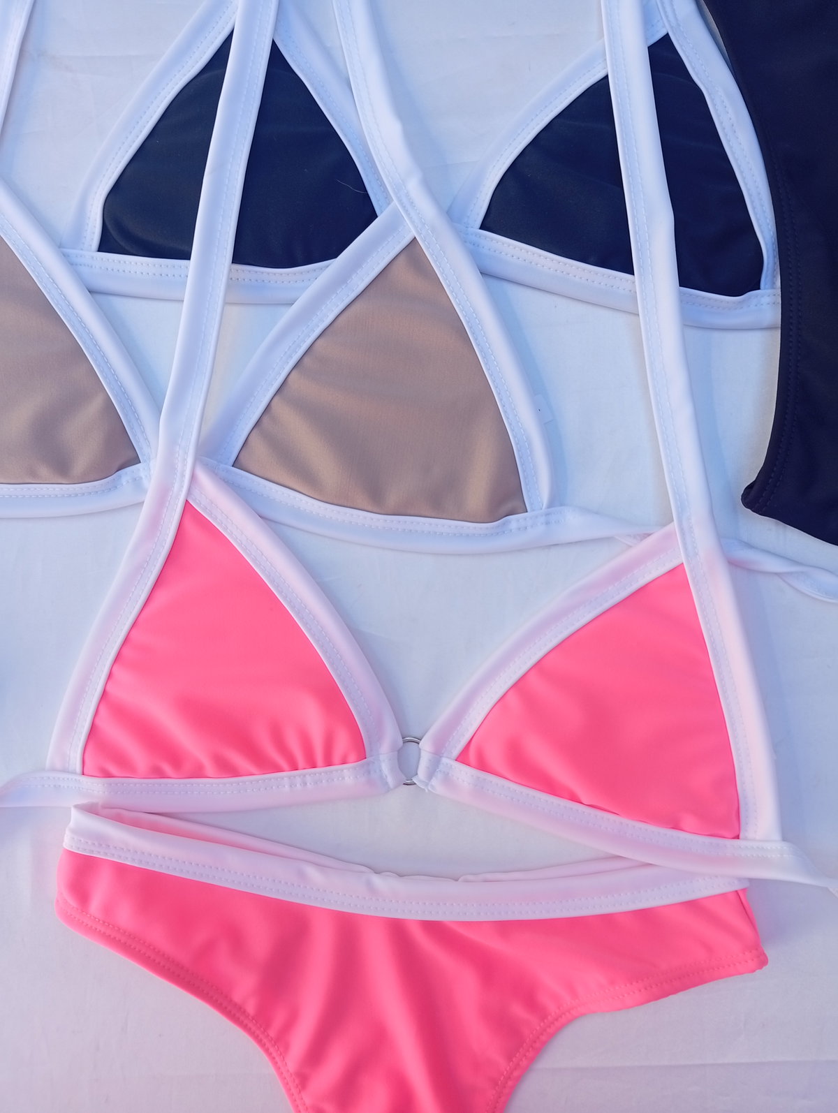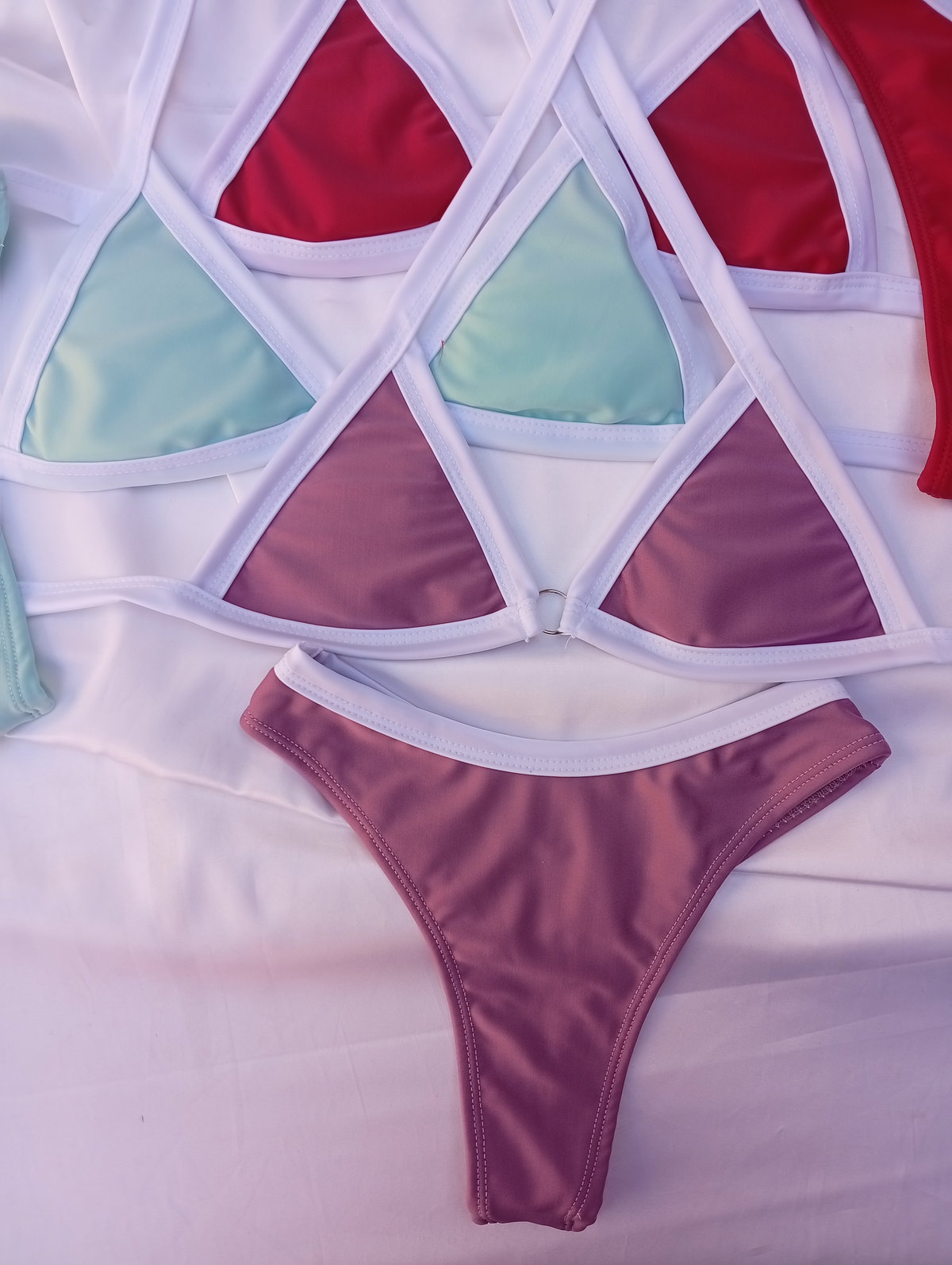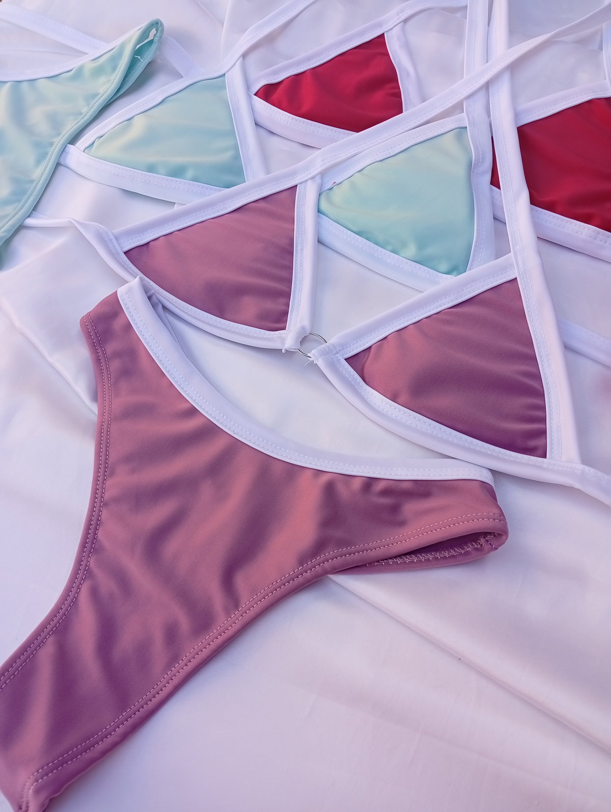 Es bikini confeccionada en Tricot, resistente al cloro de las piscinas.