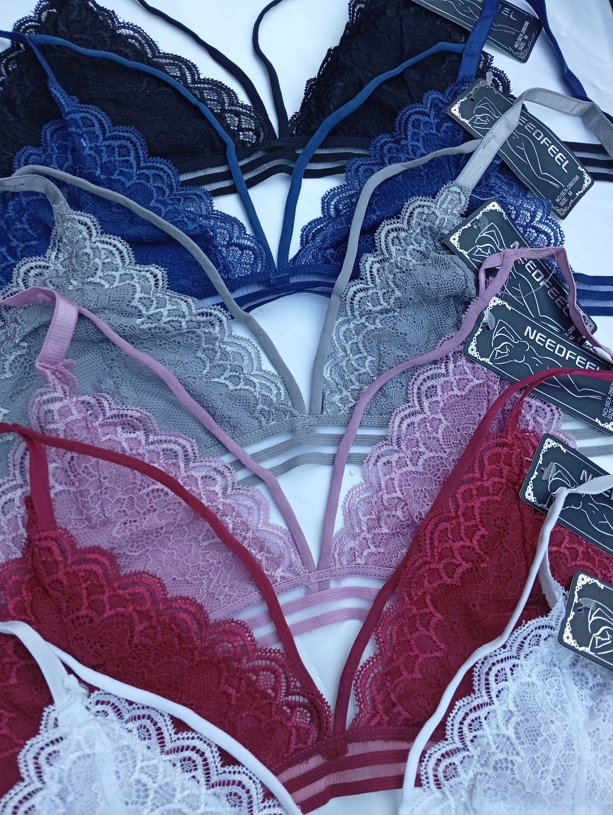 El corpiño tiene doble tira, es de encaje sin armar (no tiene arco ni relleno).
