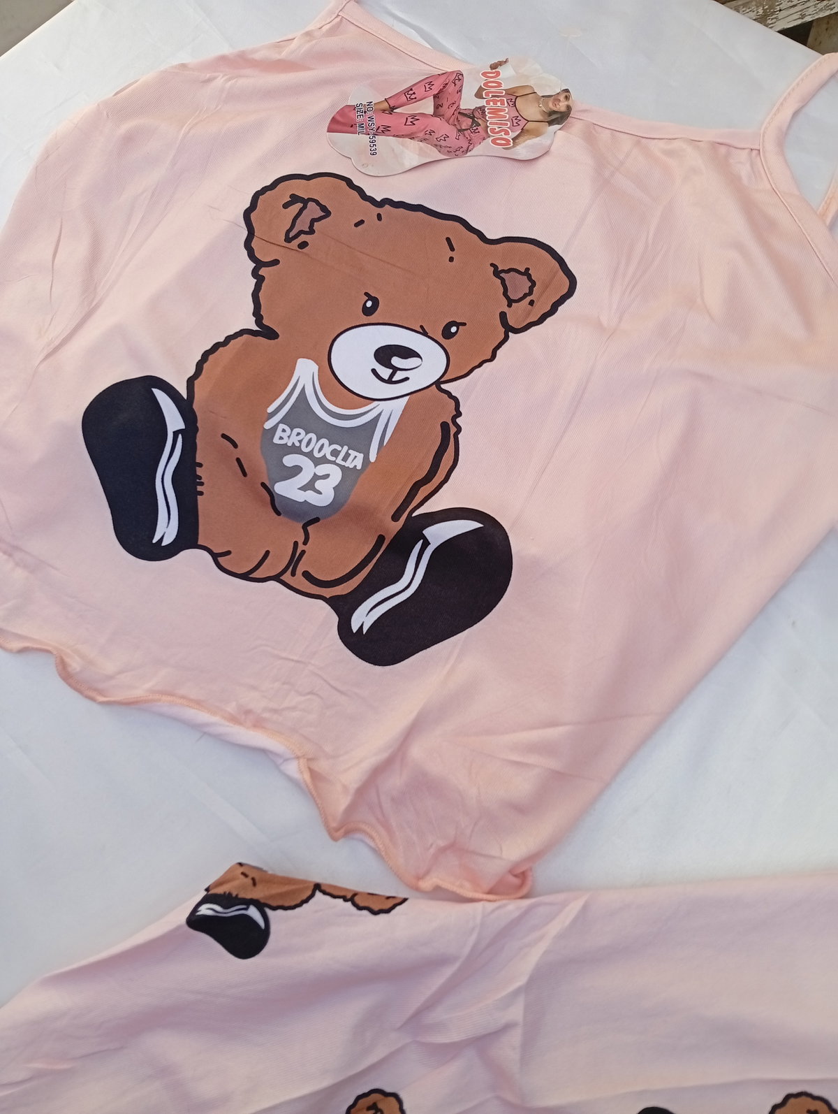 Pijama de 2 piezas, Remerita tipo top + pantalón. Media estación, fresquitos.