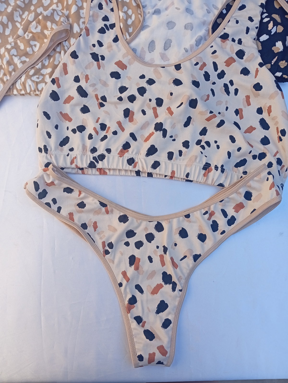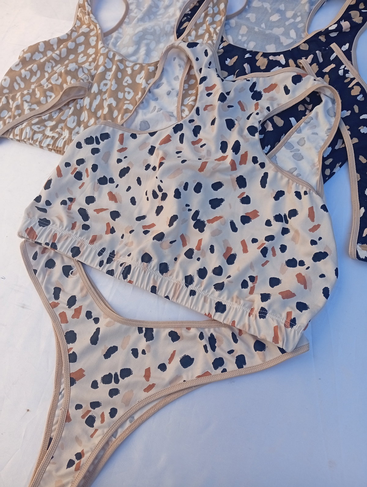 El top es talle único, abarca mejor 90-95. Puede ir para el 85 pero puede quedar flojo. Y para el 100 pero puede ajustar el elástico bajo busto.
