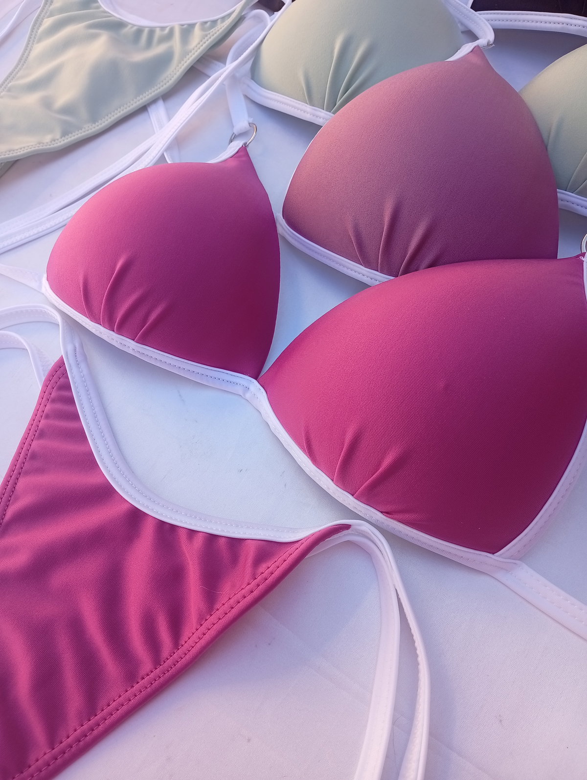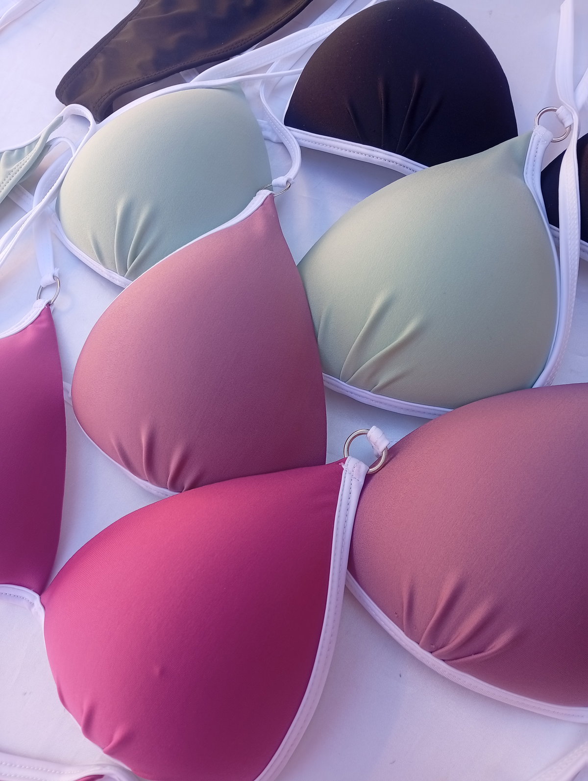 Bikini triangulito armado (sin aro). Viene por talles del 85 al 100.
