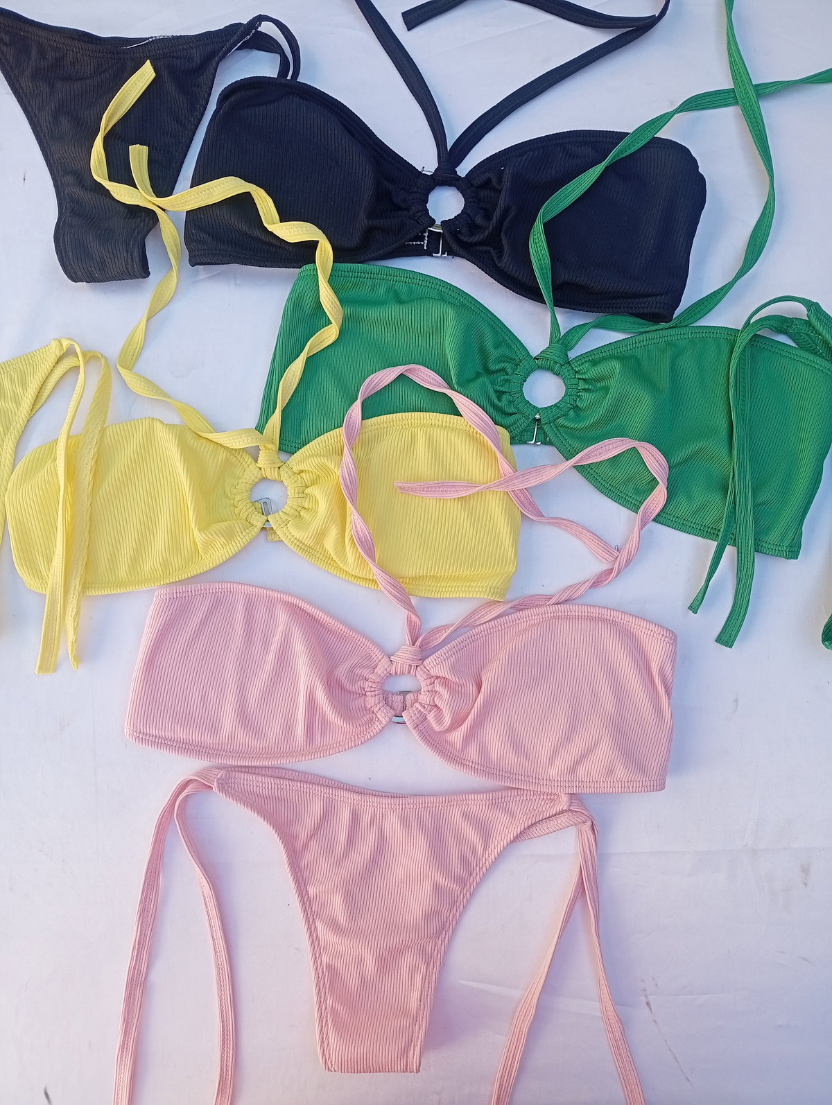 Bikini top con argolla y tiras + less para atar NS (1/2 Docena)