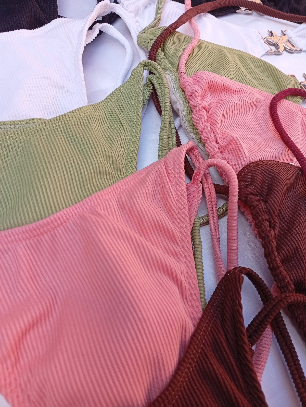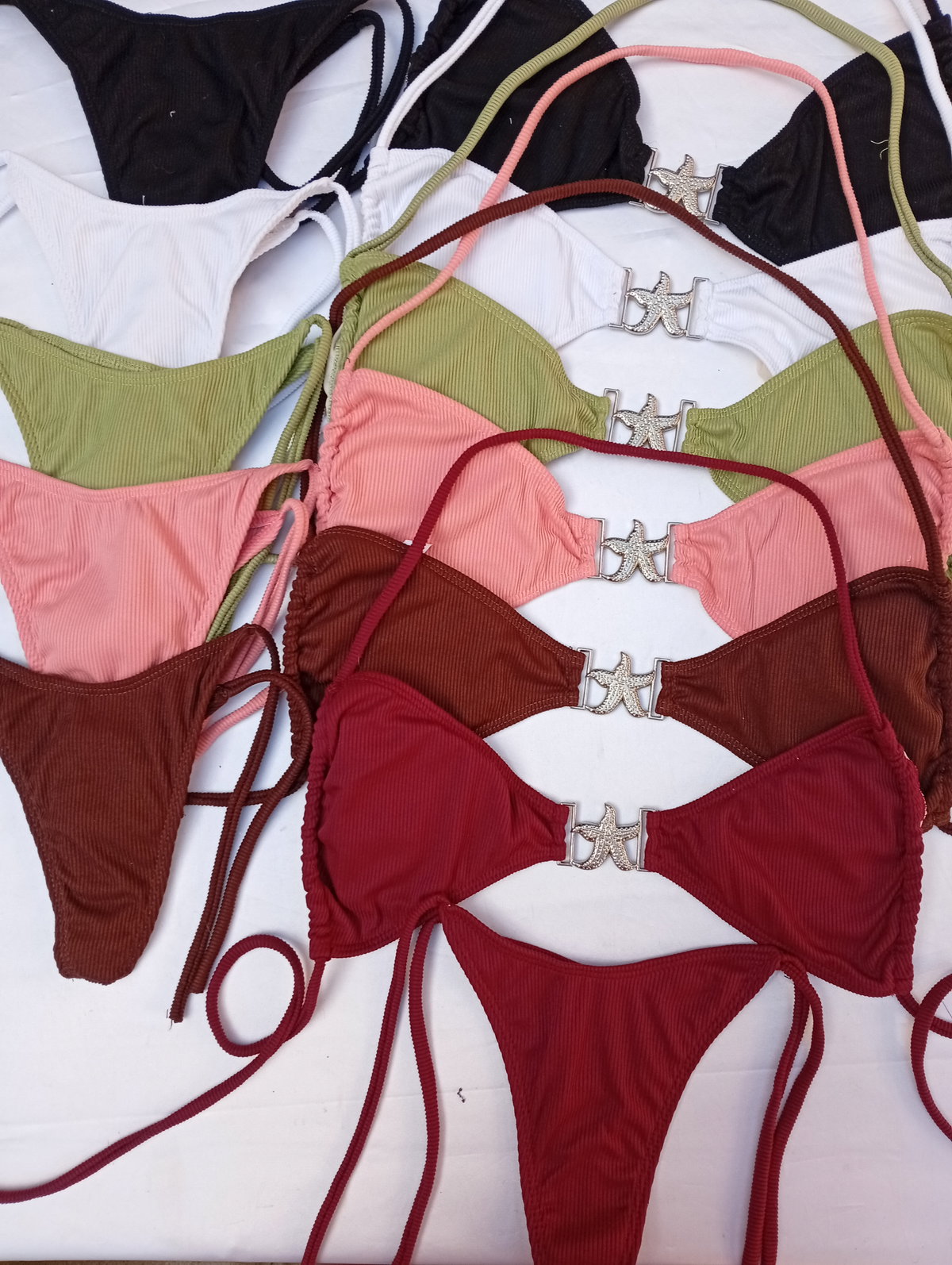 Bikini triangulito Lycra acanalada ESTRELLA + less para atar NS