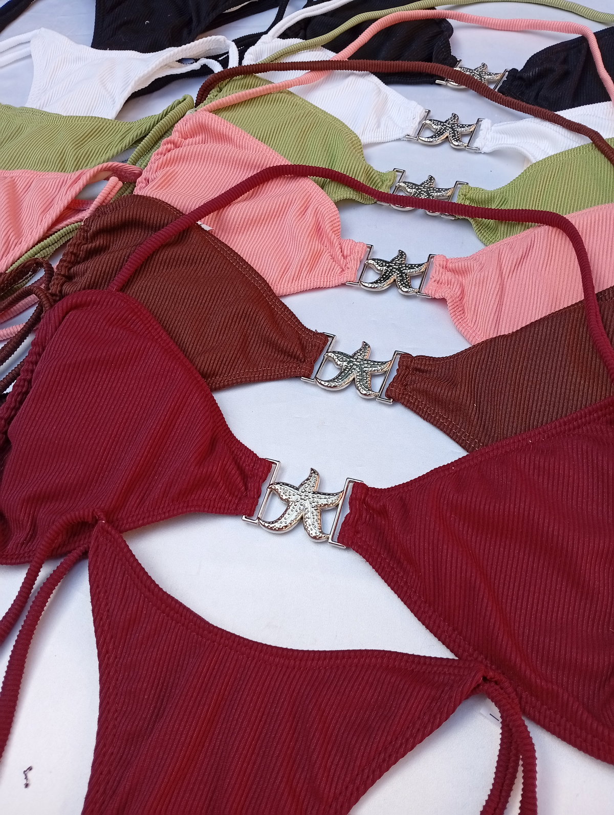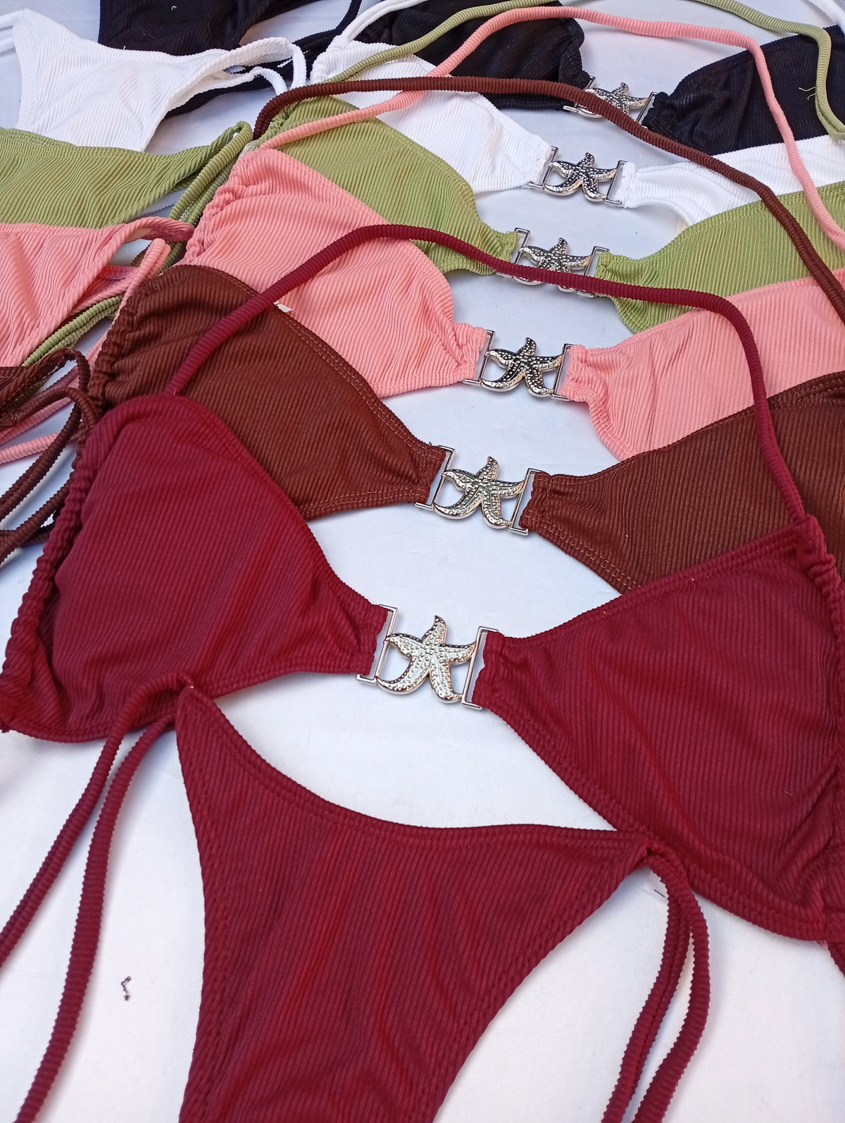 Bikini Triangulito Lycra acanalada con dije estrella.