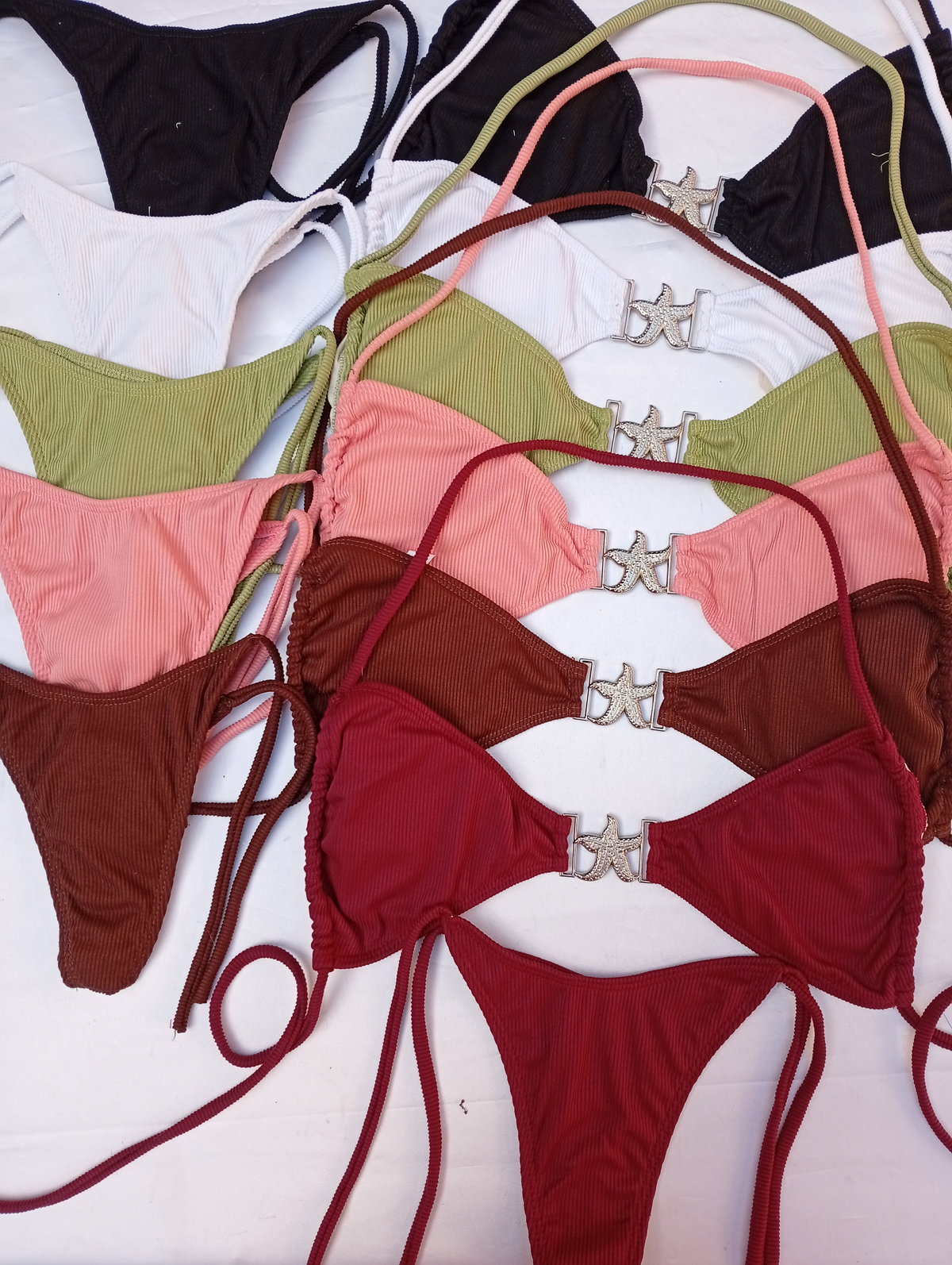 Bikini triangulito Lycra acanalada ESTRELLA + less para atar NS (1/2 Docena)