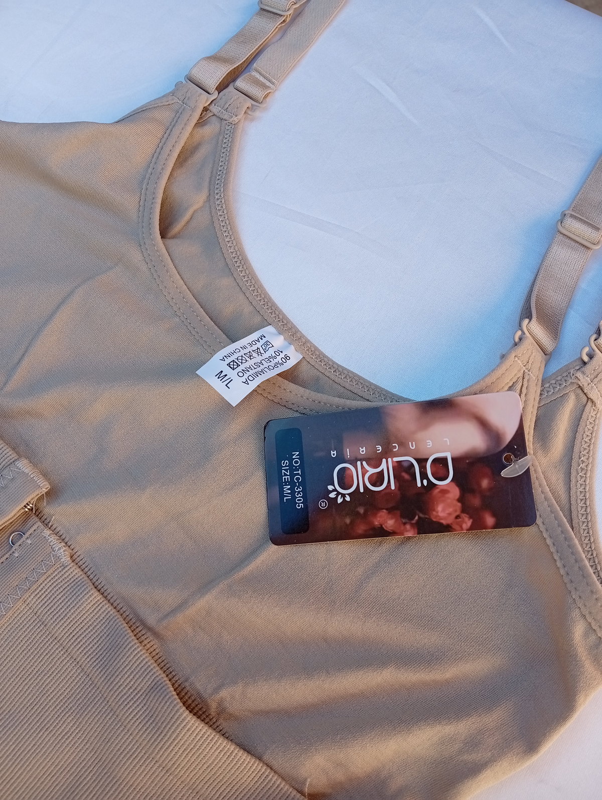El corpiño NO tiene taza, los breteles son totalmente desmontables. Y en la parte de la ingle tiene tela que es respirable.