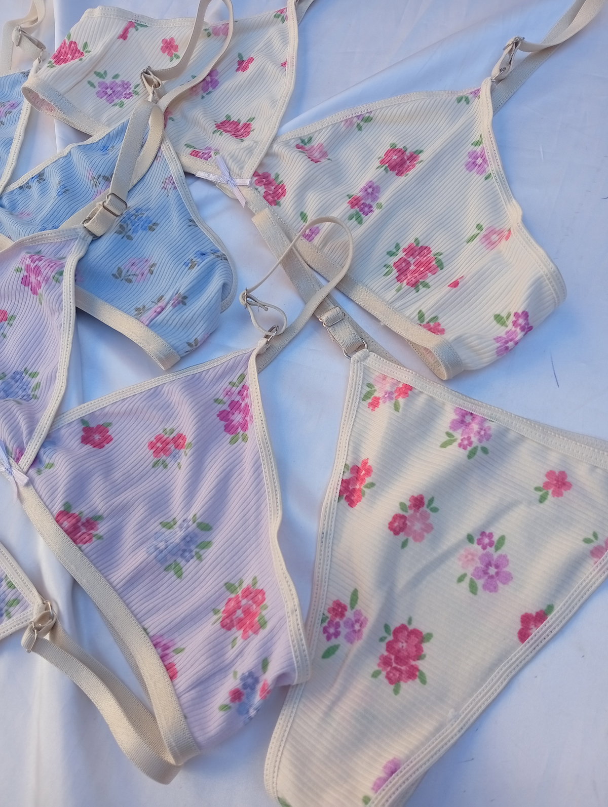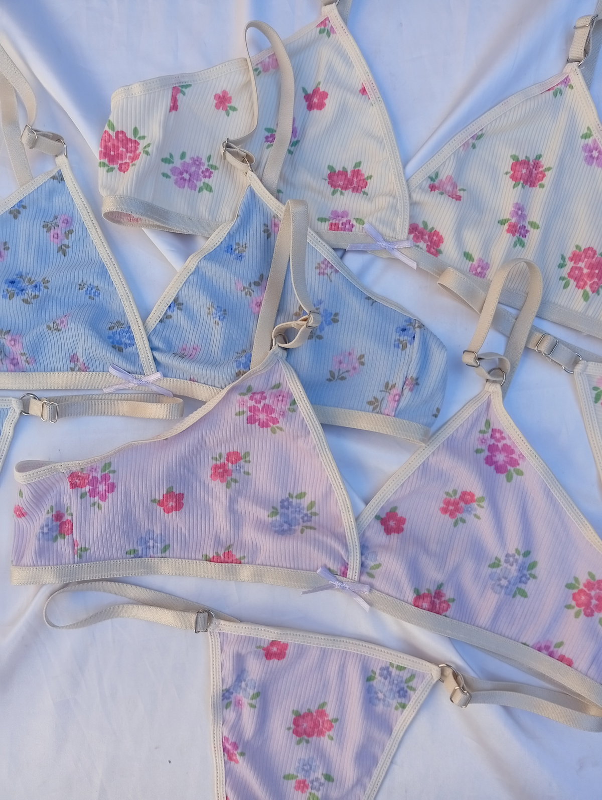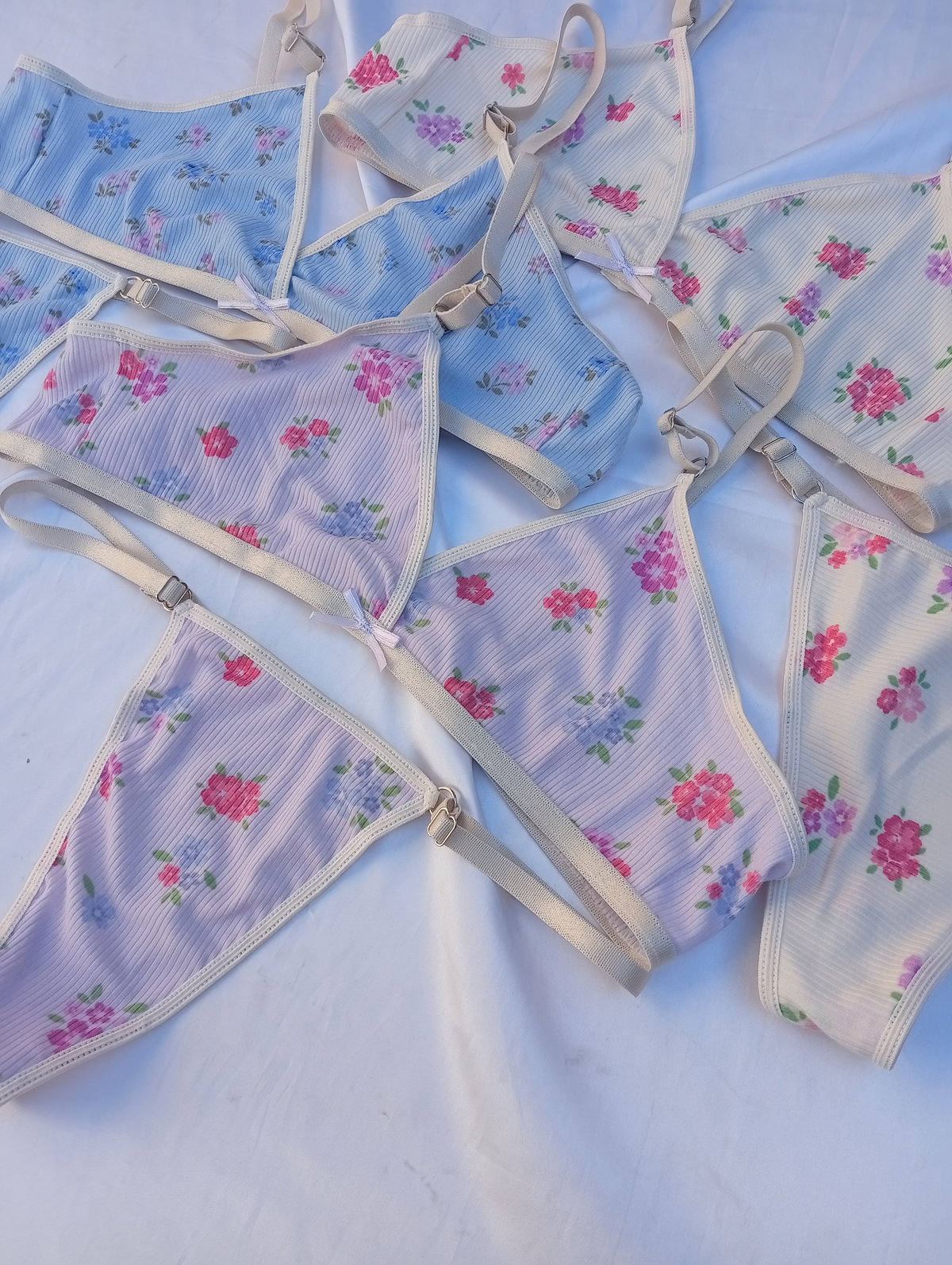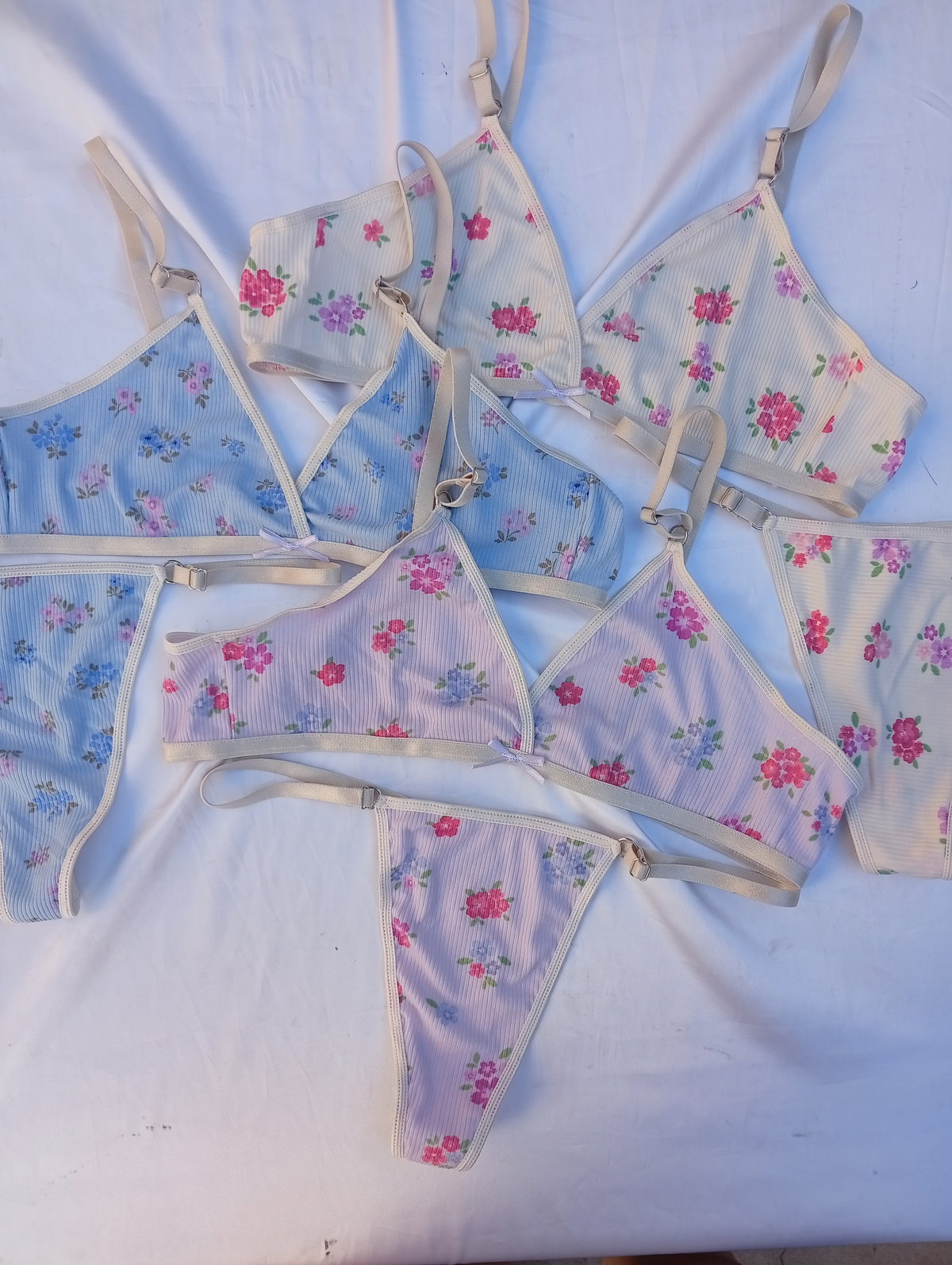 Conjunto Brallet cruzado con florcitas, + less regulable con encaje.