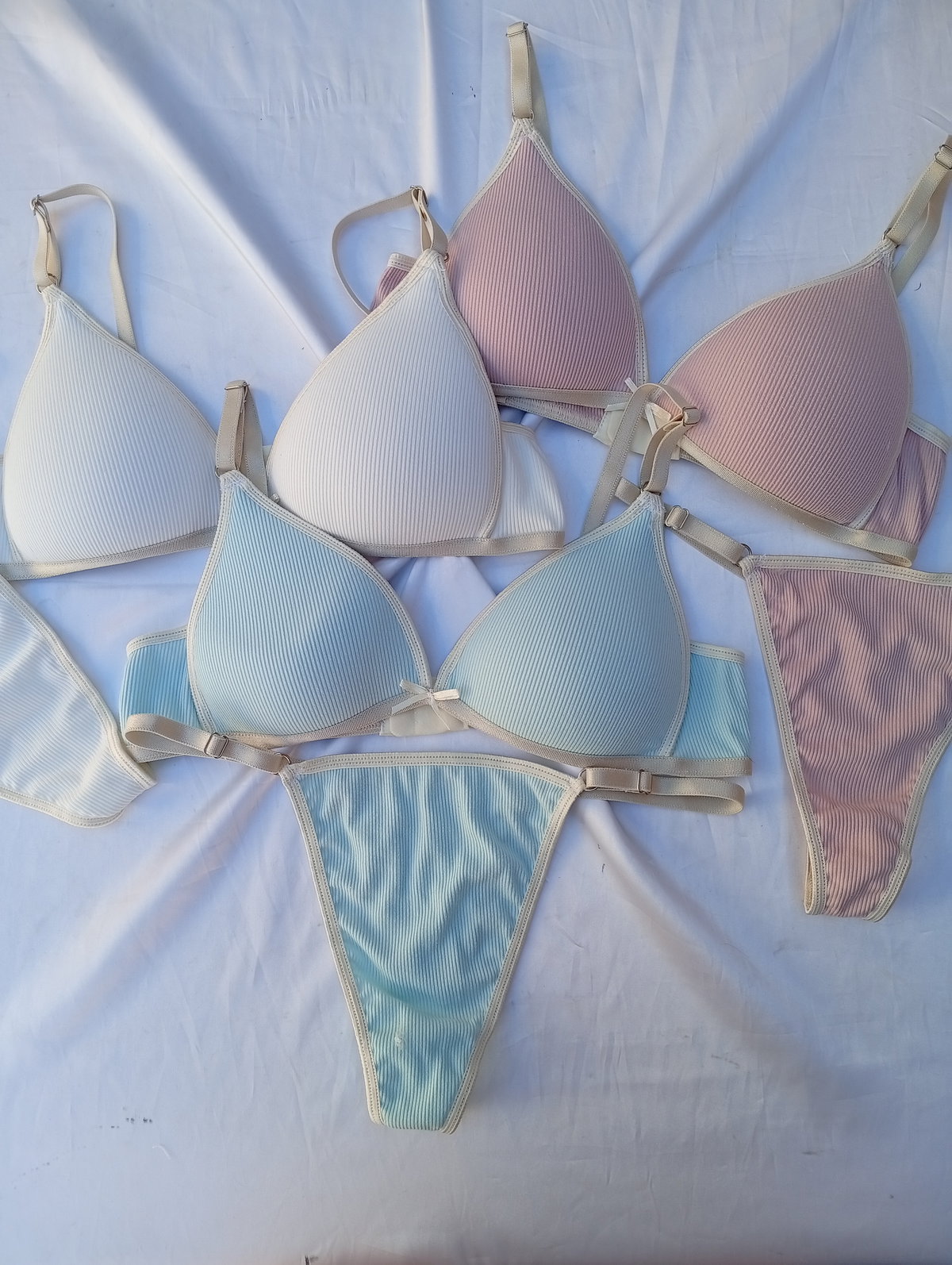 Conjunto triangulito armado pastel + less. EXOTICA (1/2 Docena)