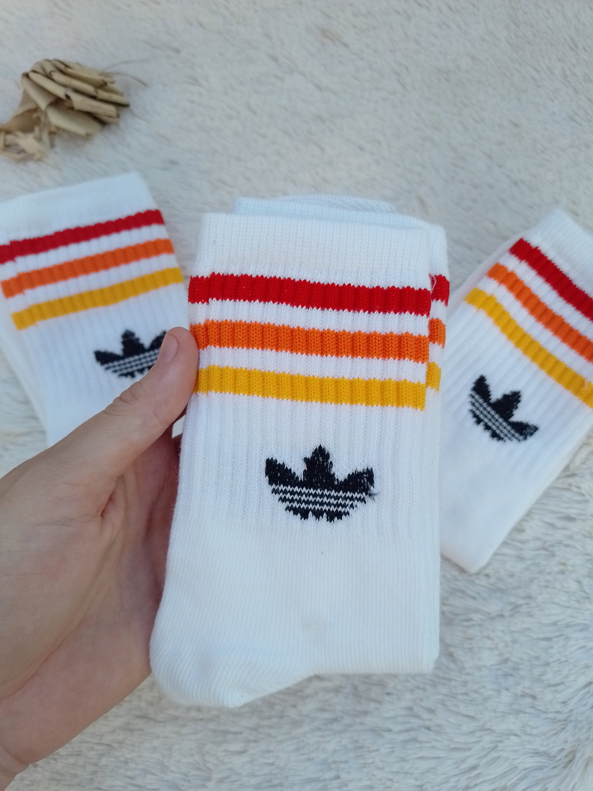 Medias Adidas blancas rayas tricolor L.C